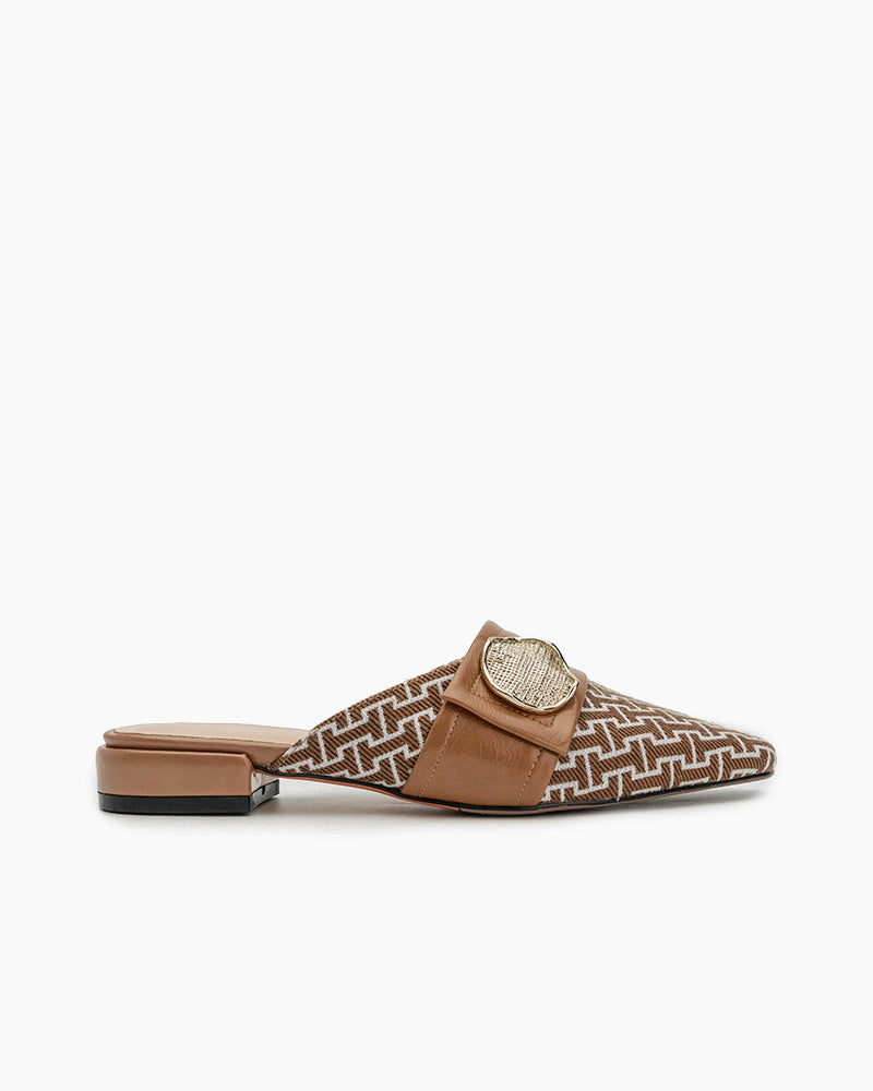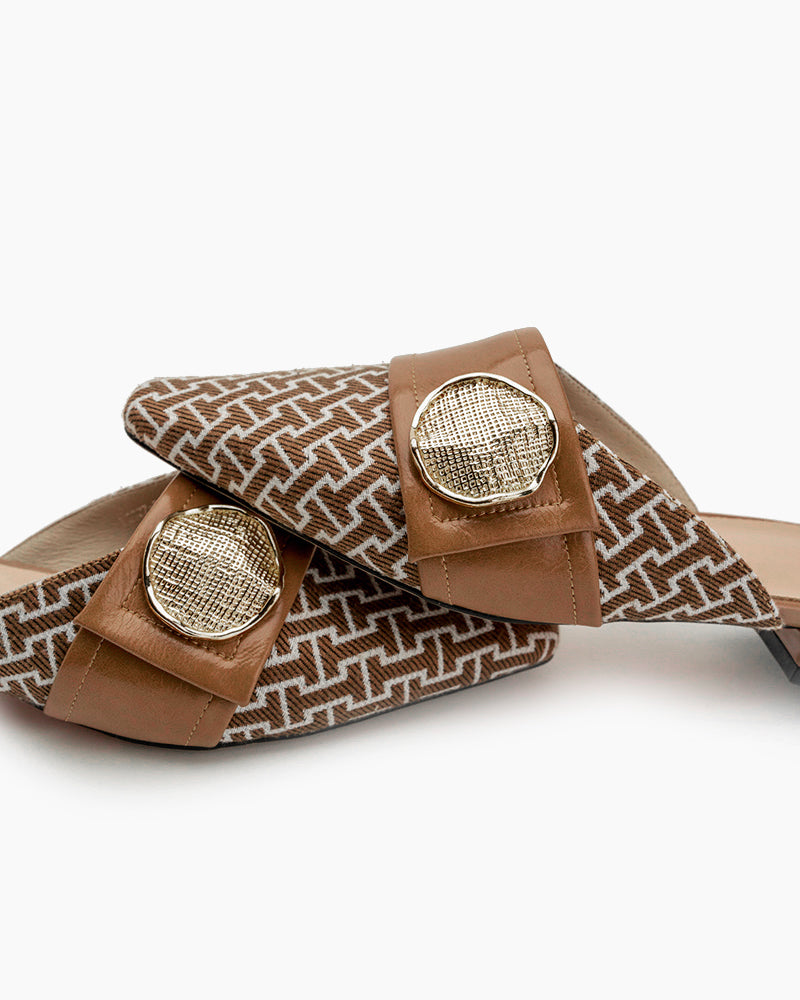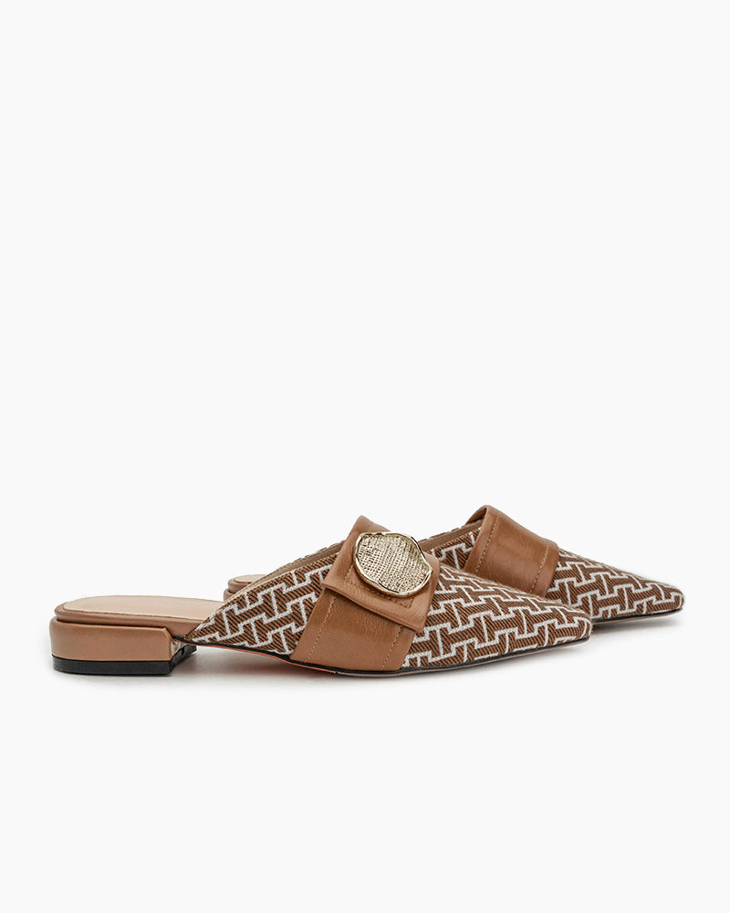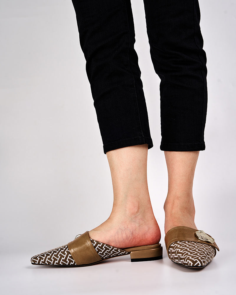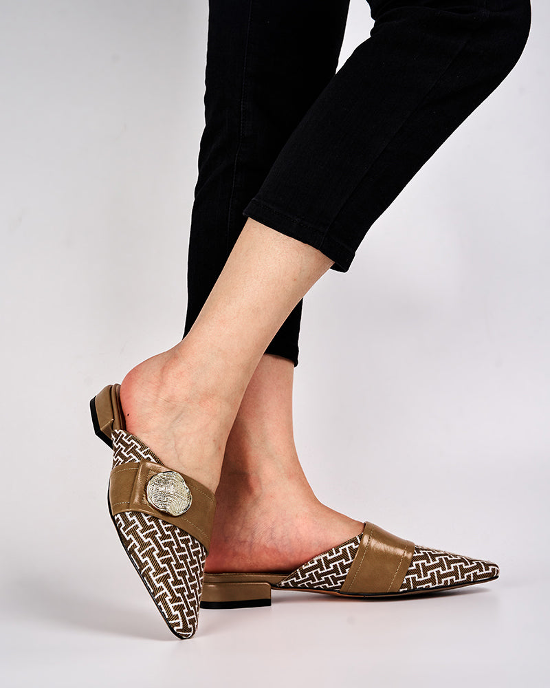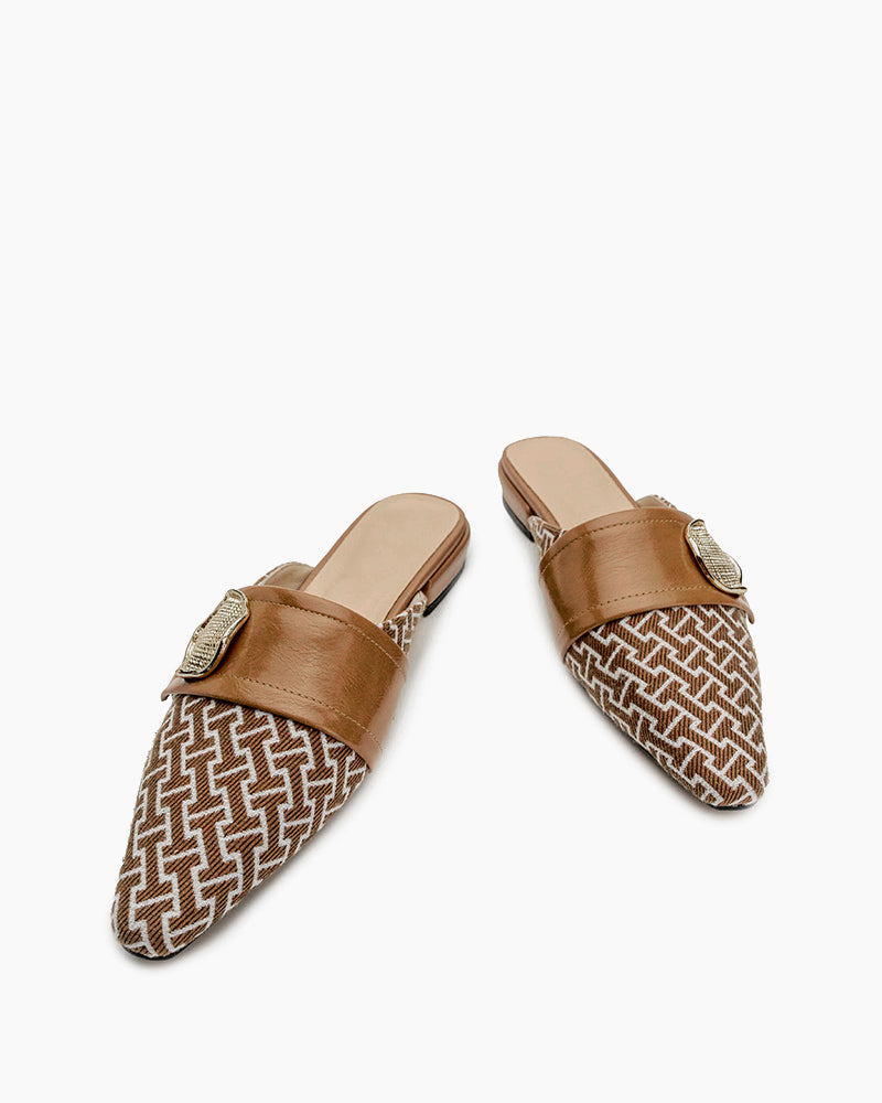 Unique Round Metal Decor Houndstooth Pattern Mules