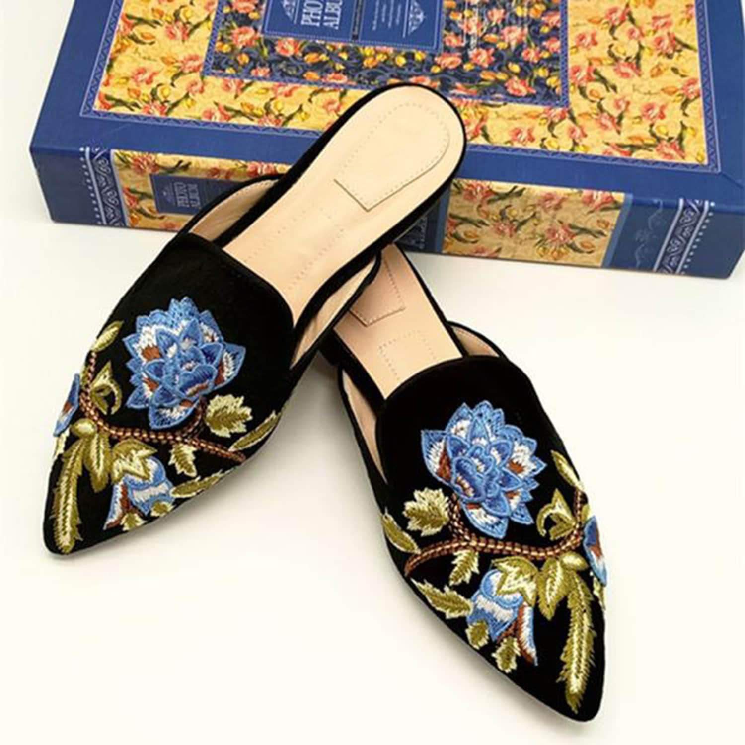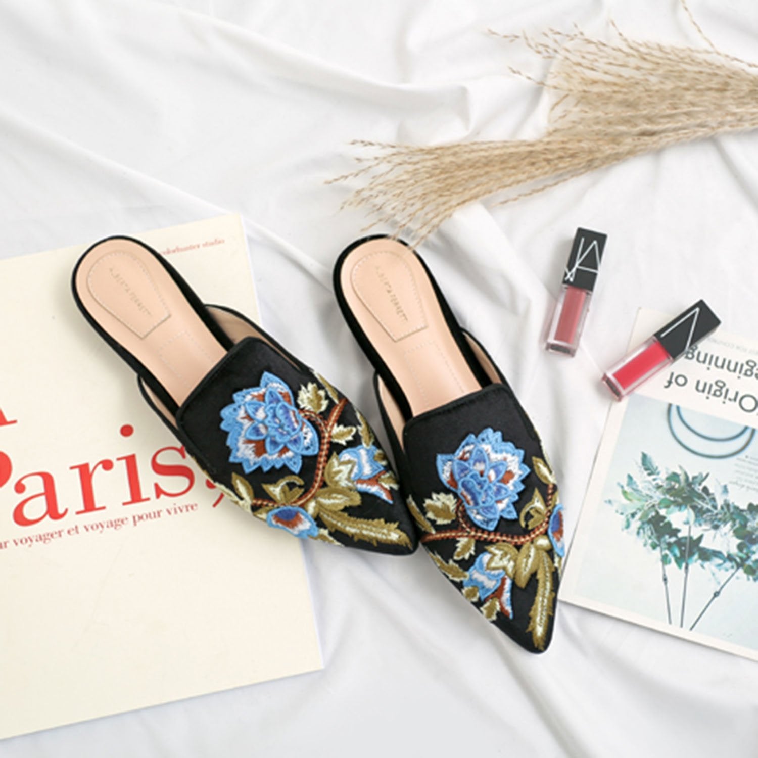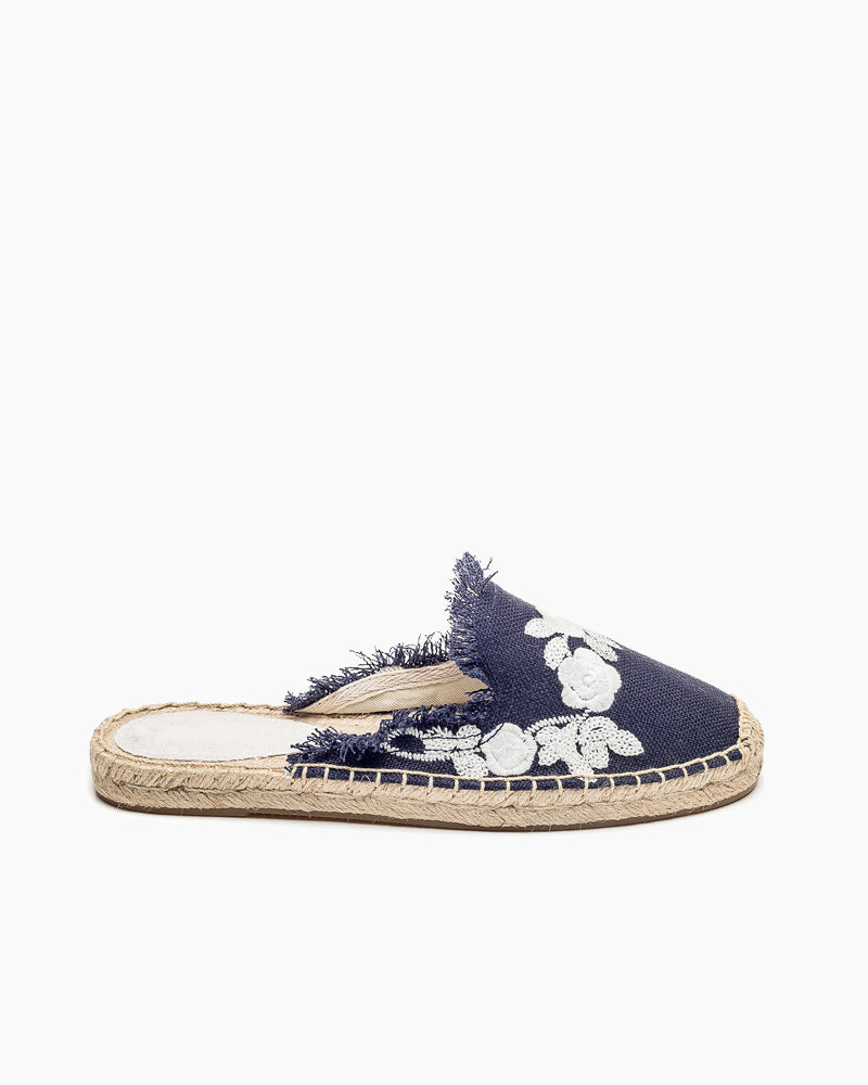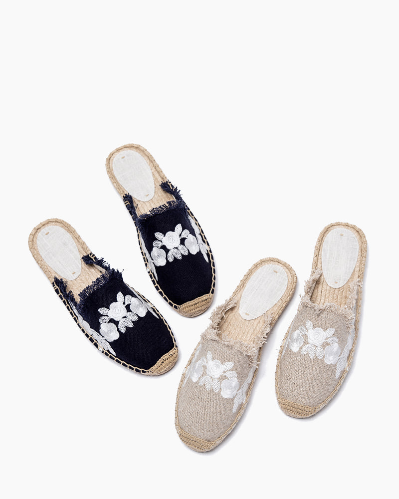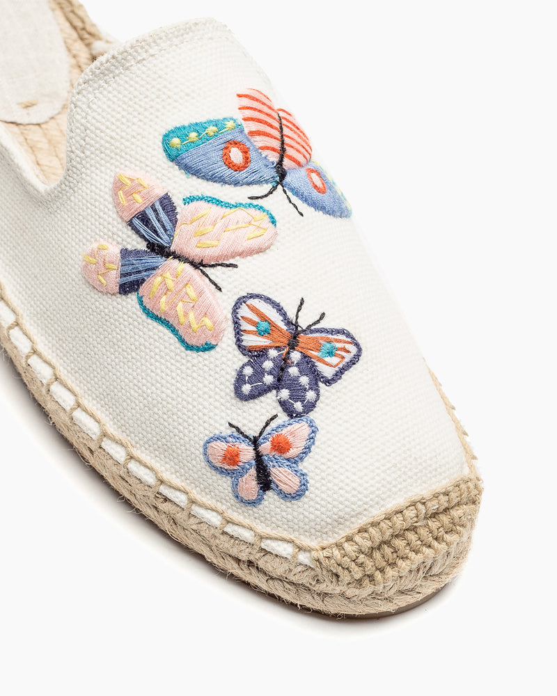 Butterfly Pattern Embroidered Espadrille Flat Mules