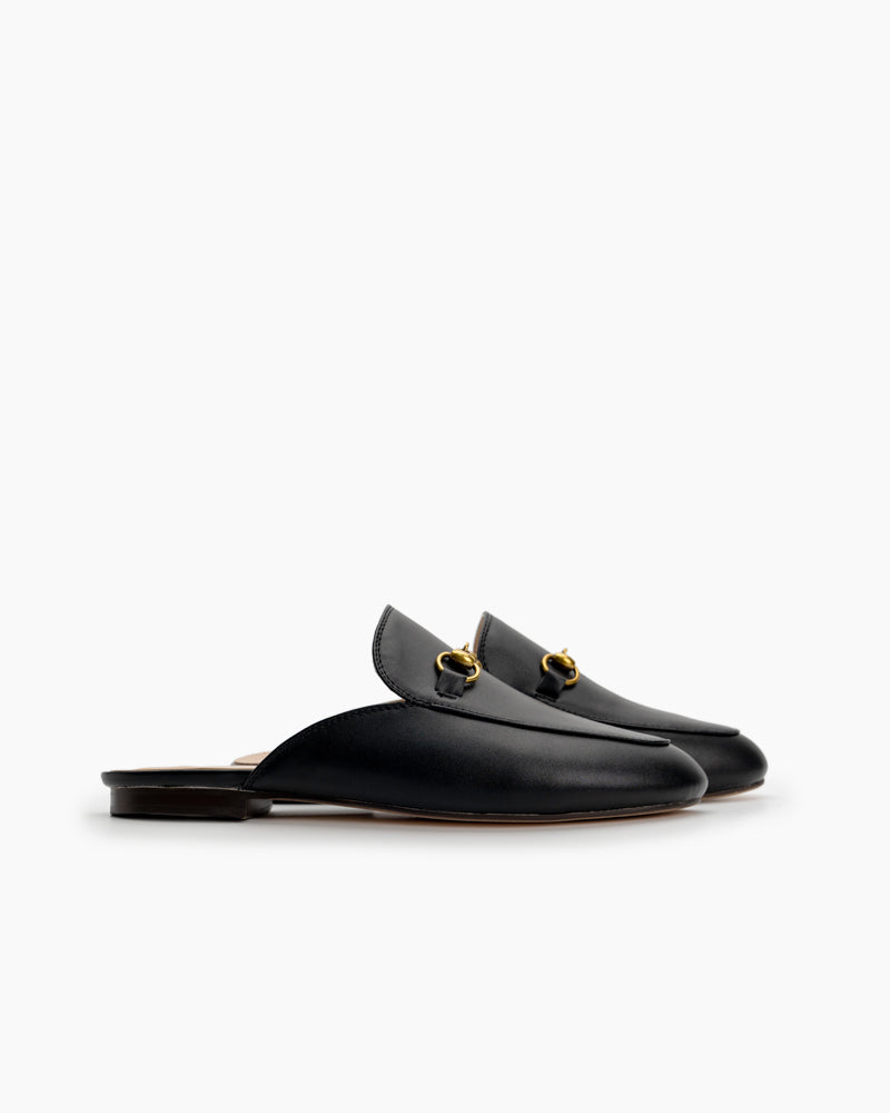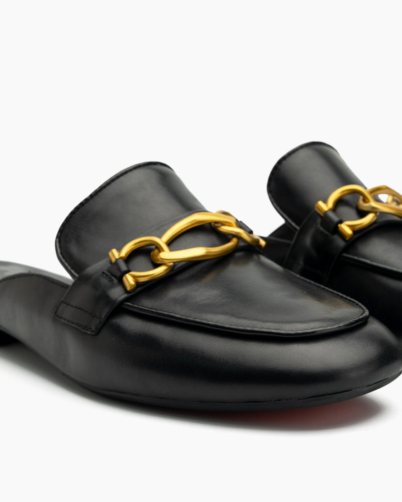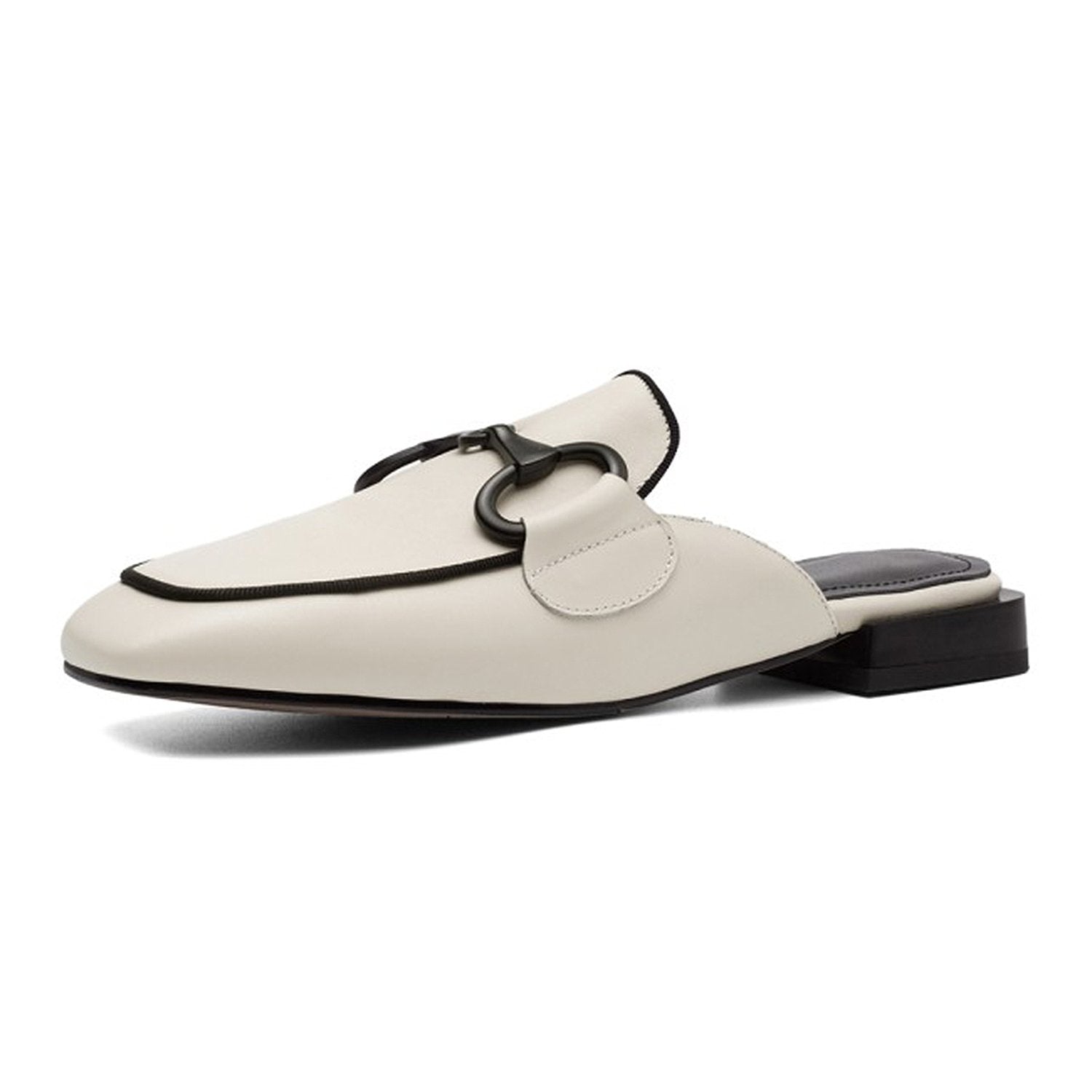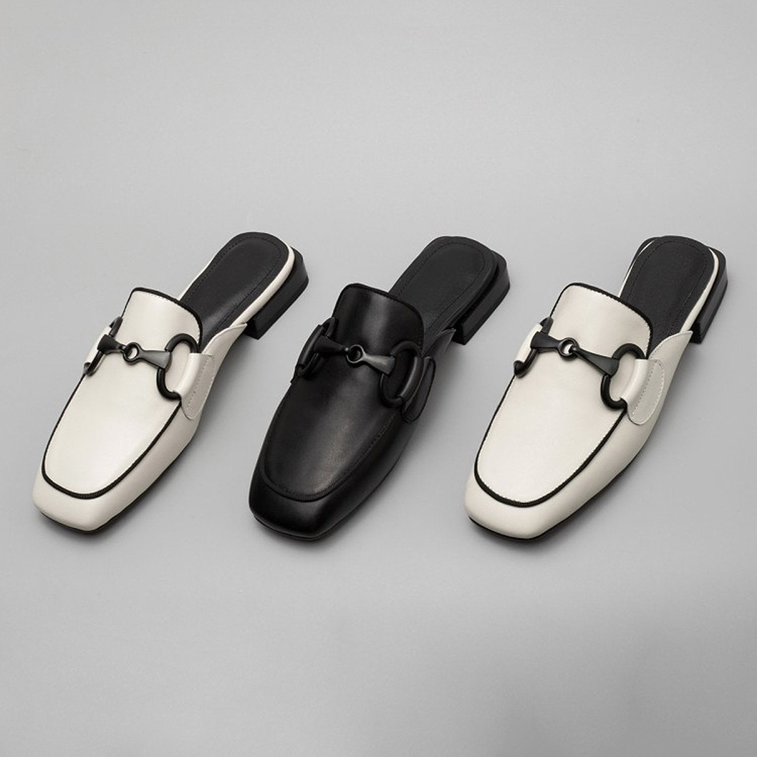 Classic Metal Buckle Leather Slide Slip On Flat Mules