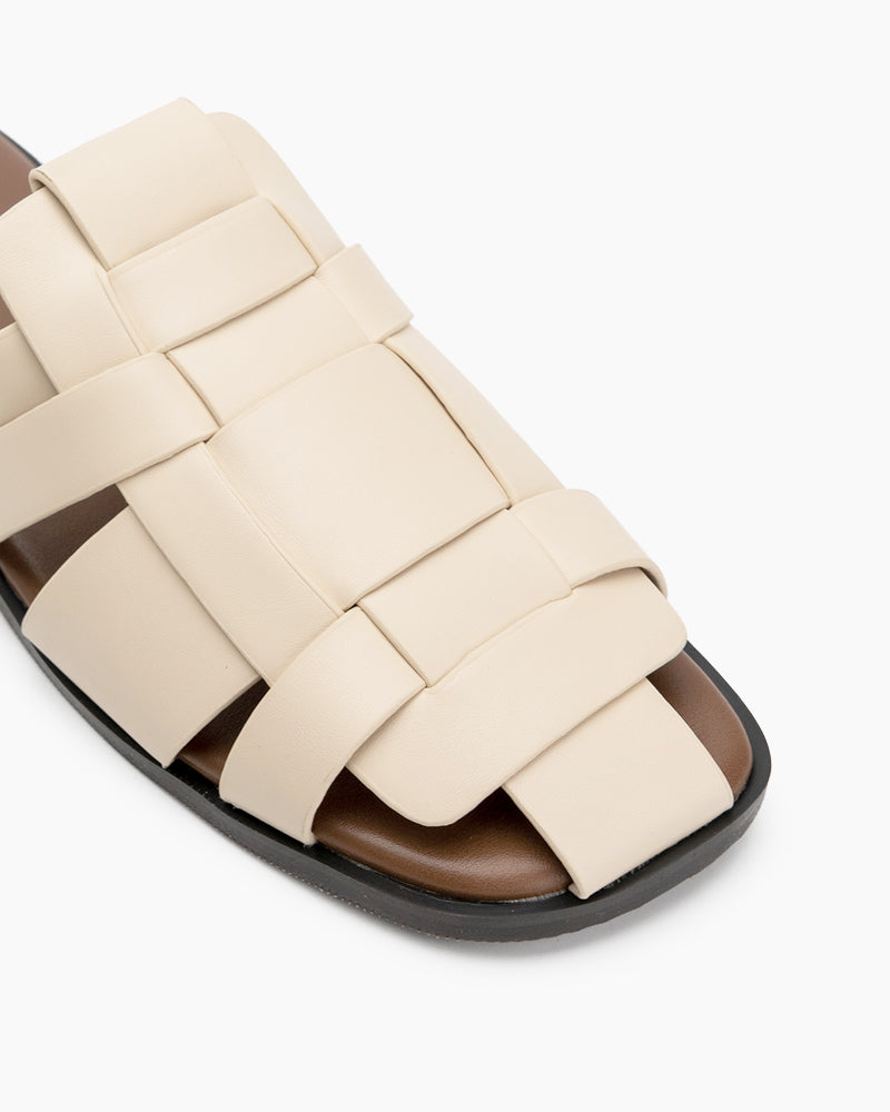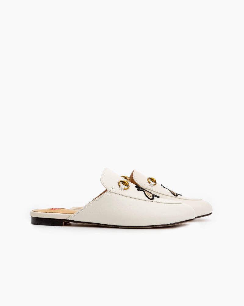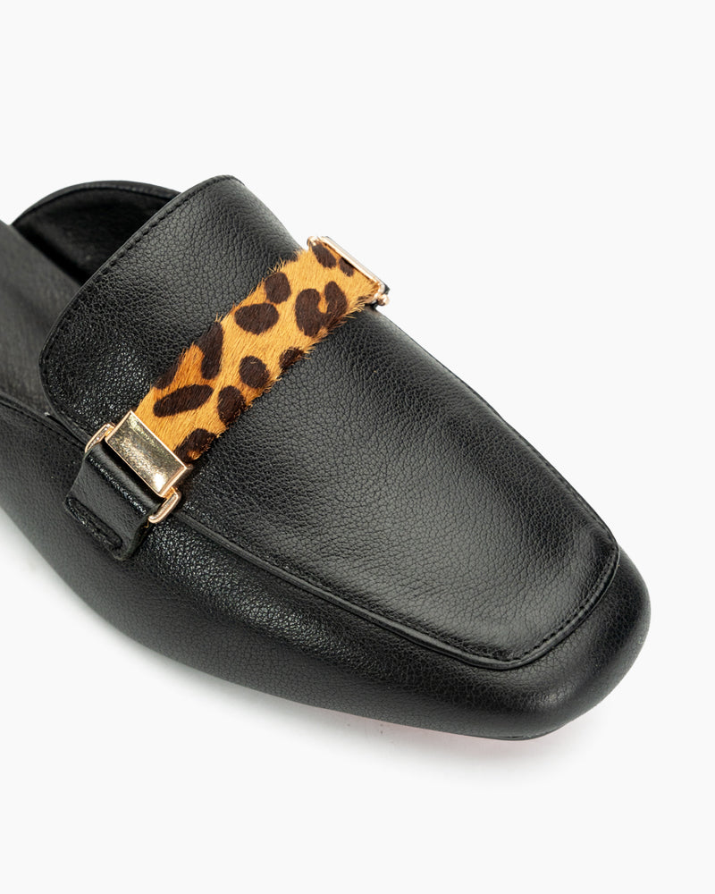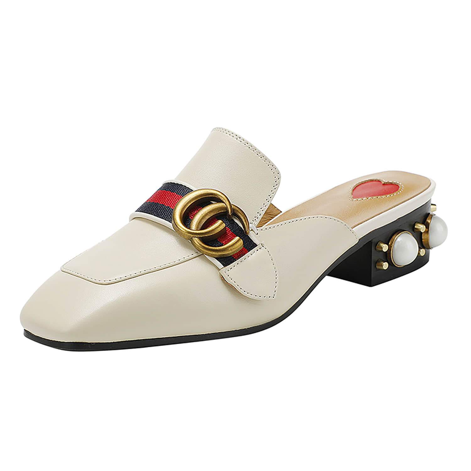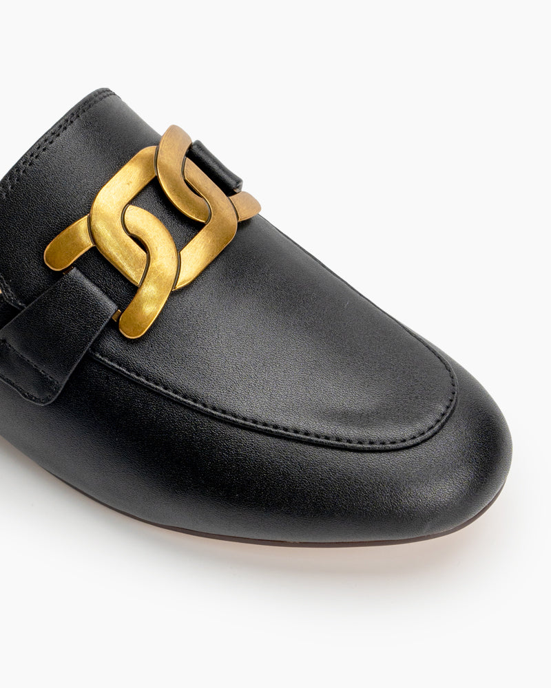 Classic Metal Buckle Leather Slide Slip On Flat Mules