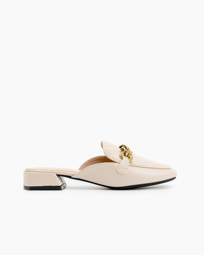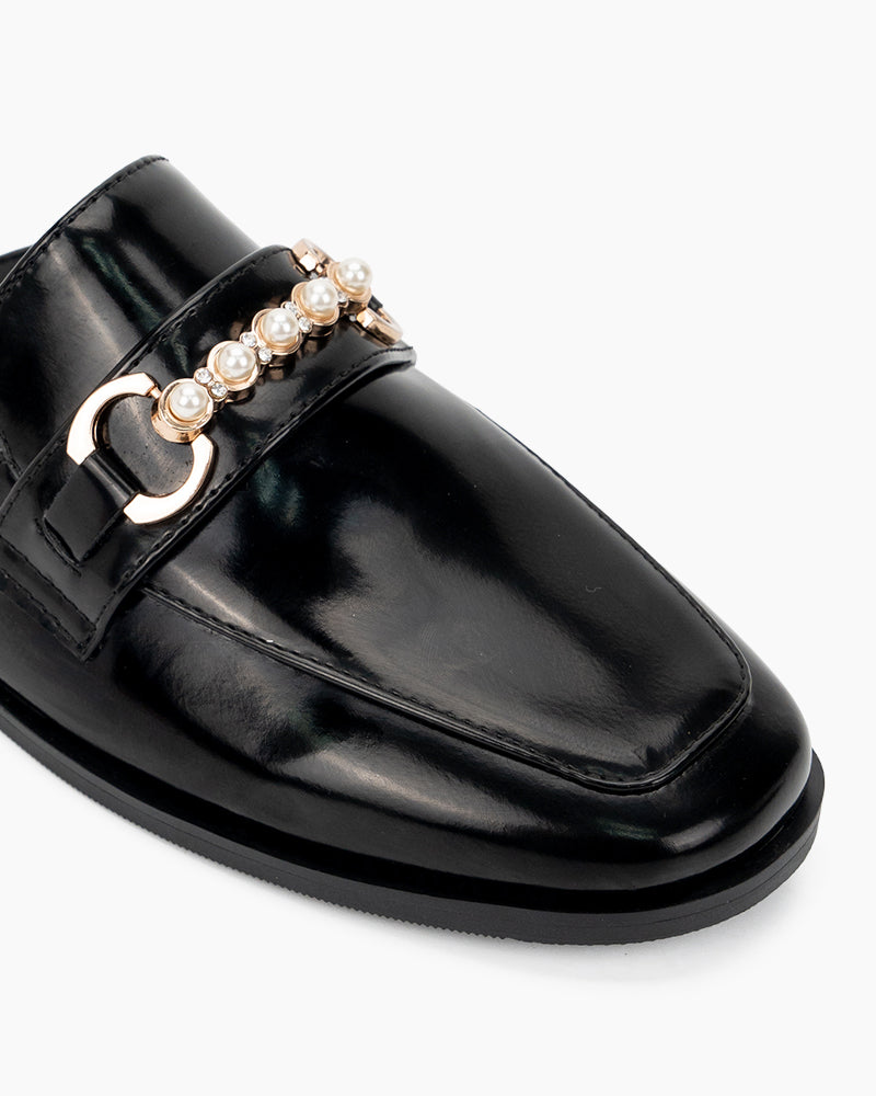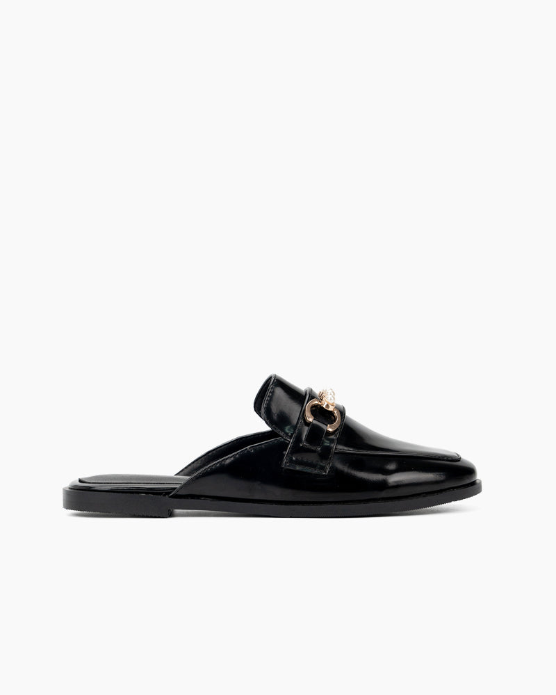 Metal Buckle Square Toe Slip On Backless Flat Mules