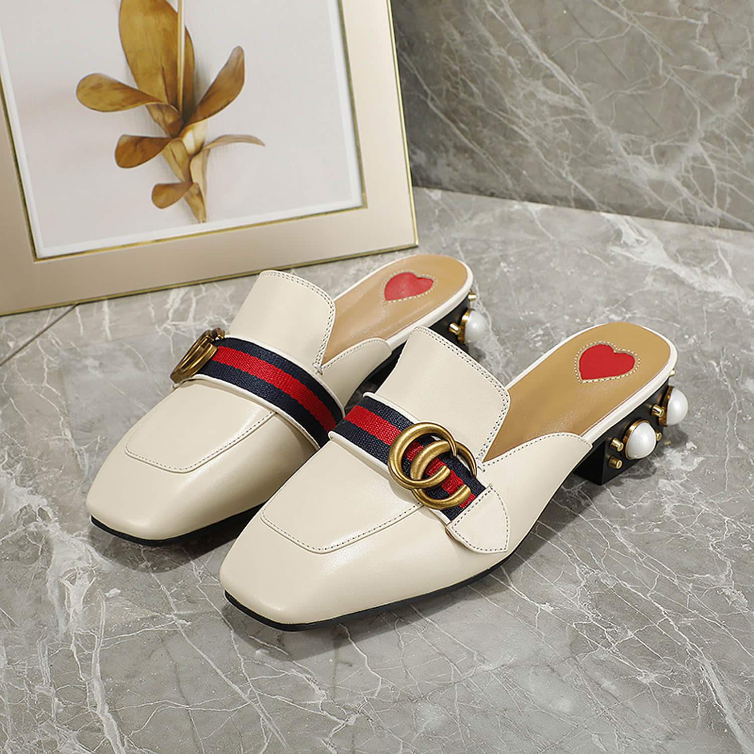 Classic Metal Buckle Strawberry Pattern Leather Slip On Backless Mules