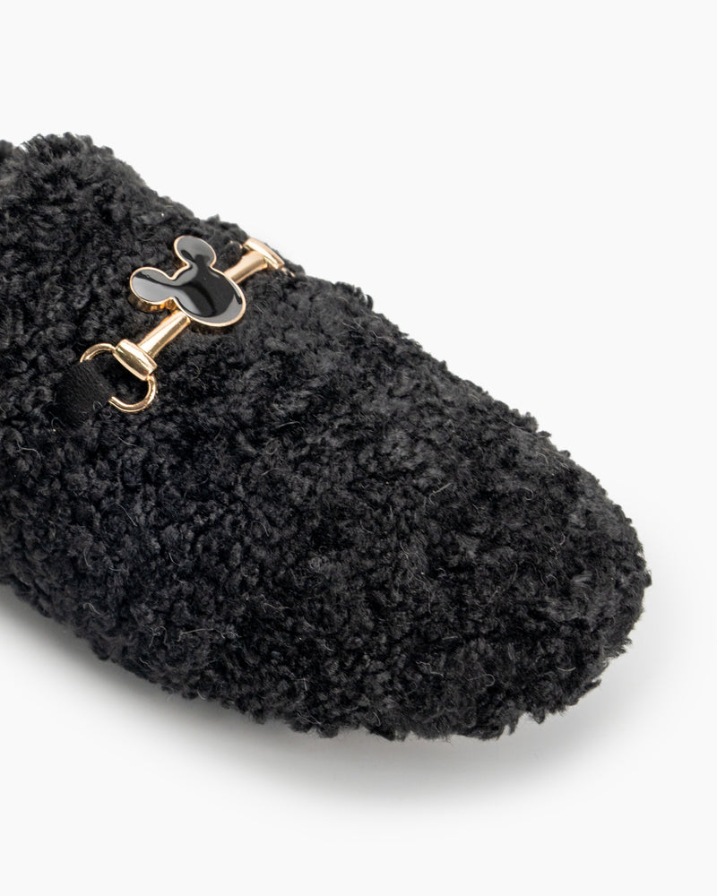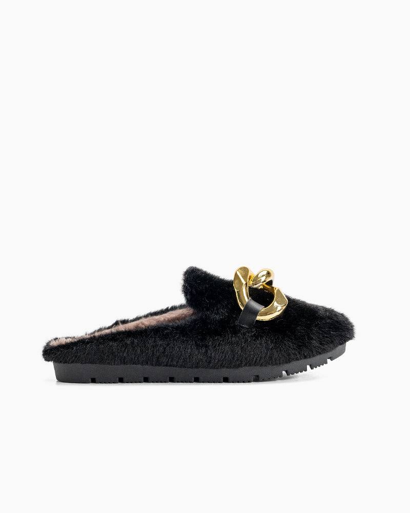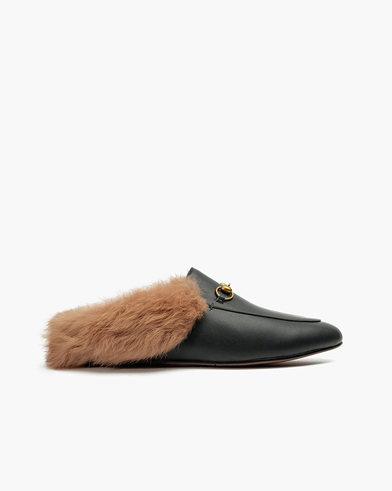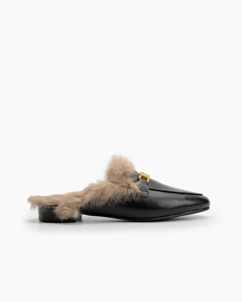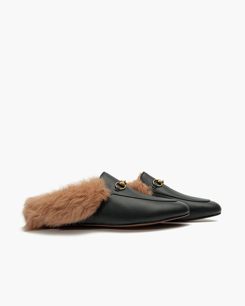 Velvet Backless Fur Horsebit Metal Slip-on Mules