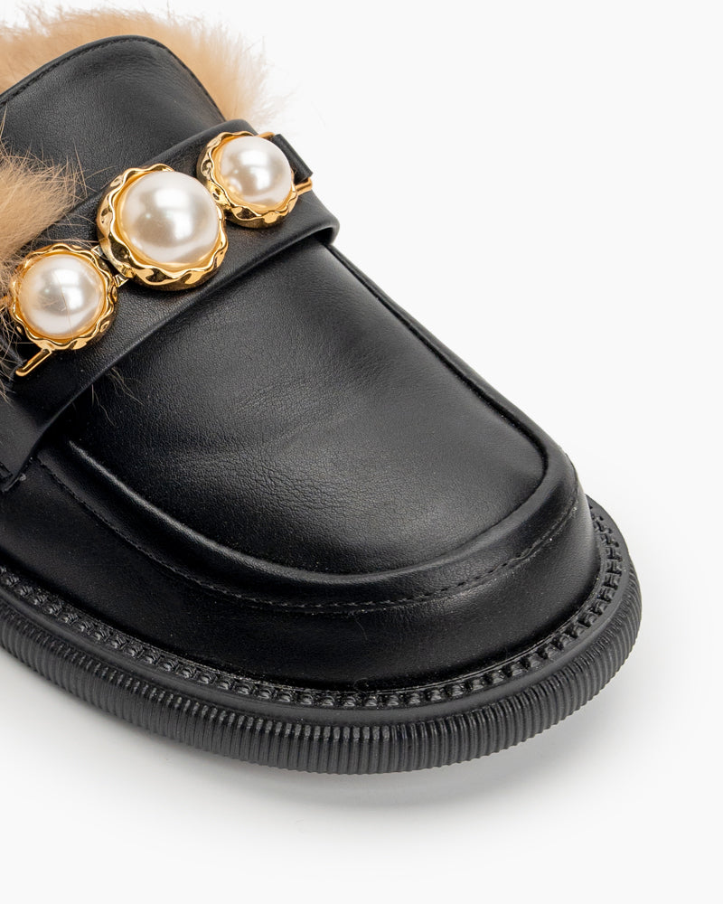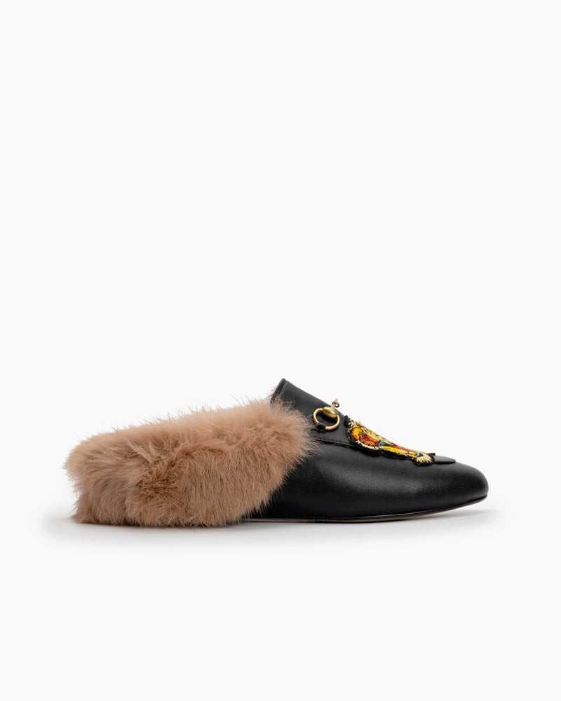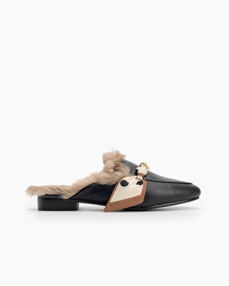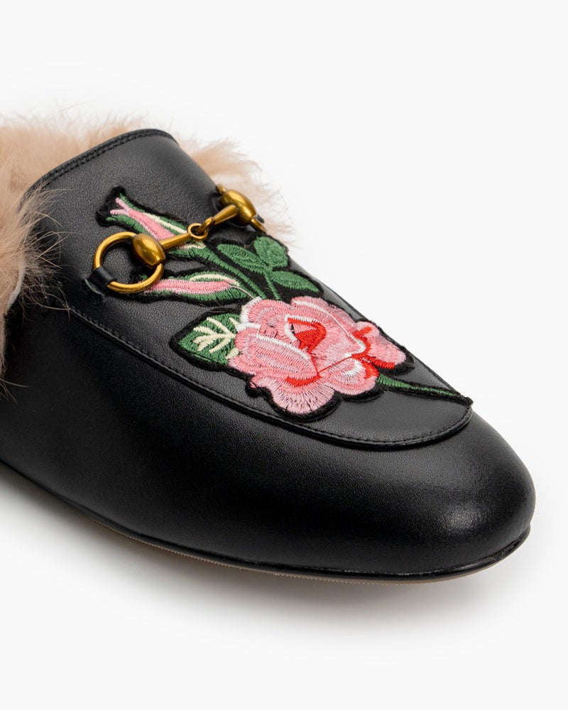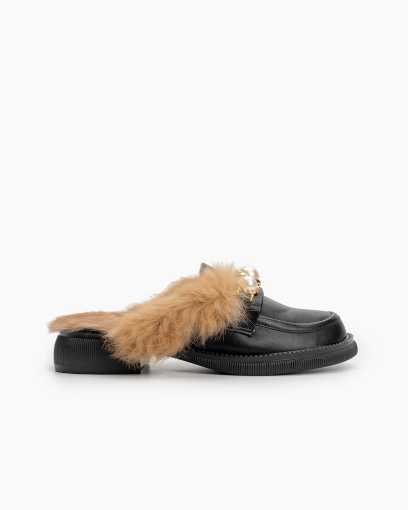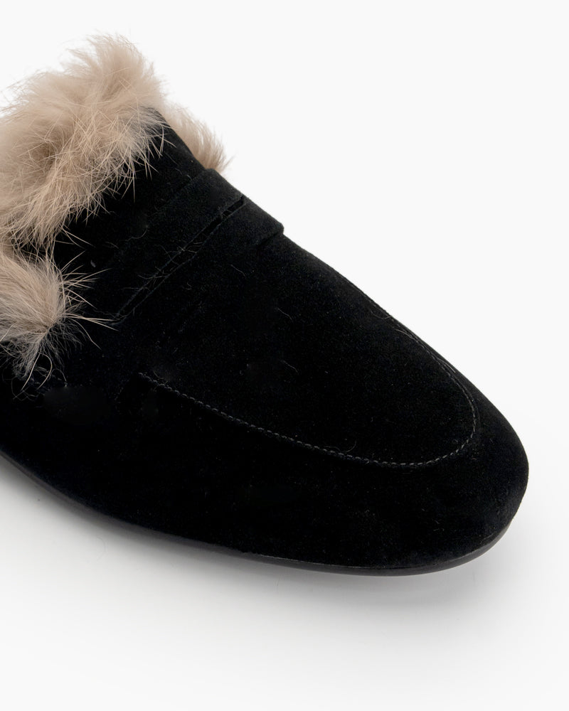 Velvet Backless Fur Horsebit Metal Slip-on Mules
