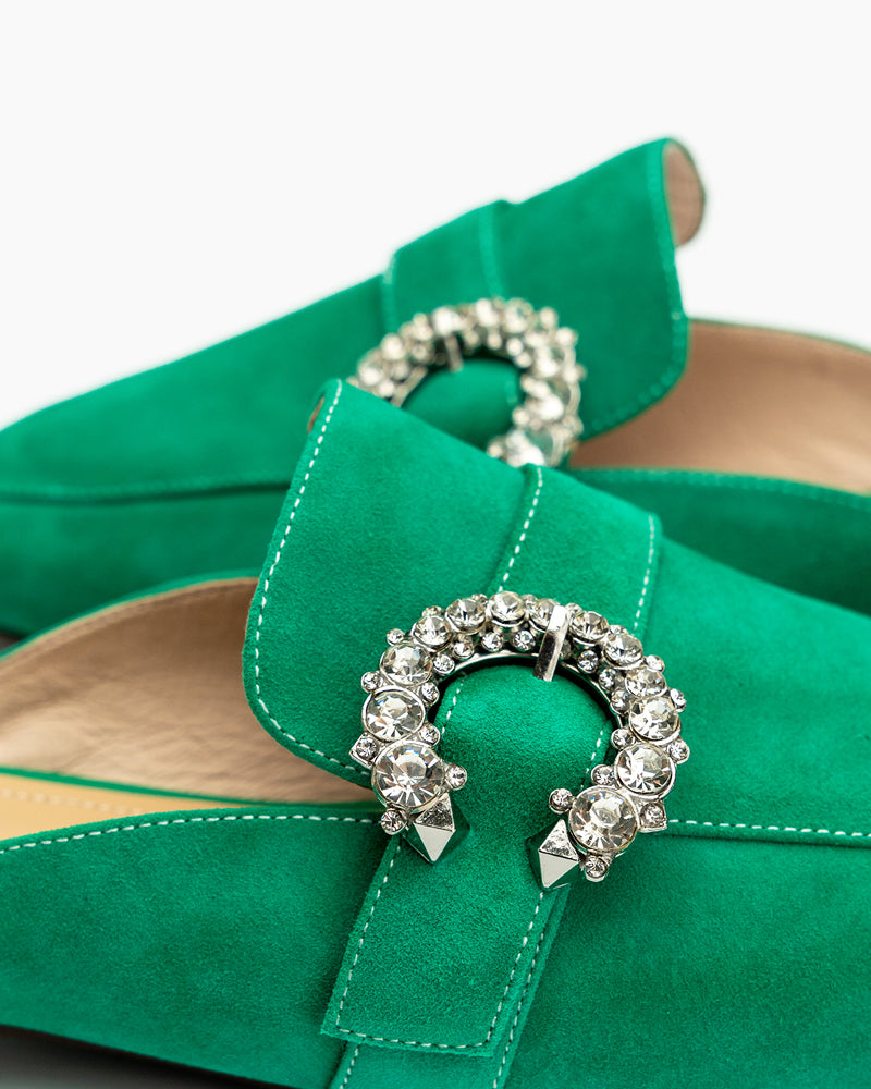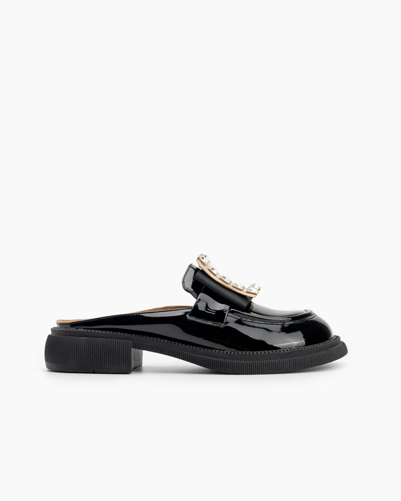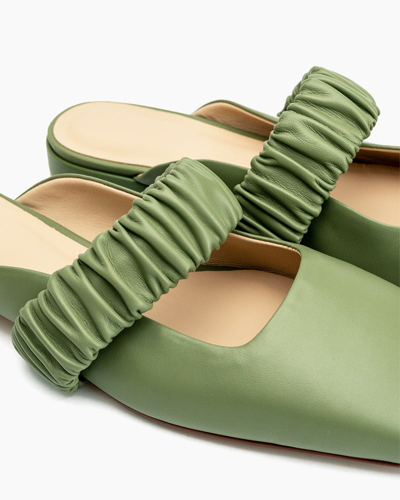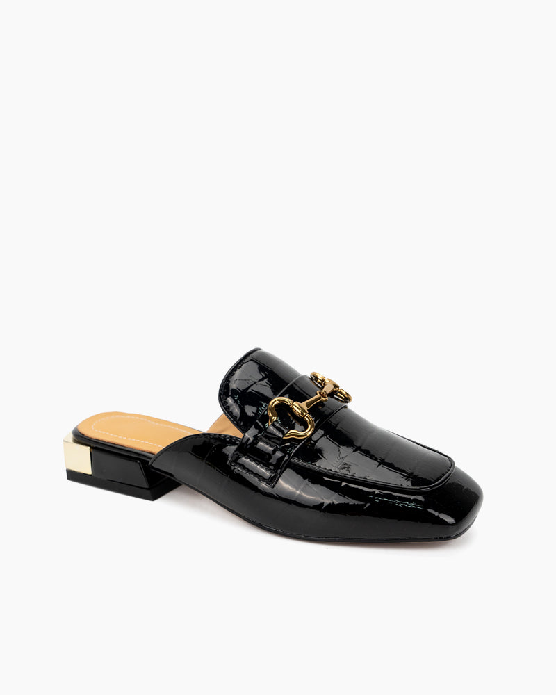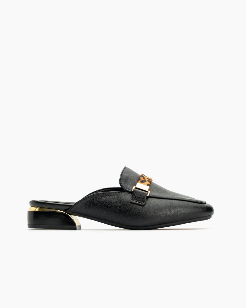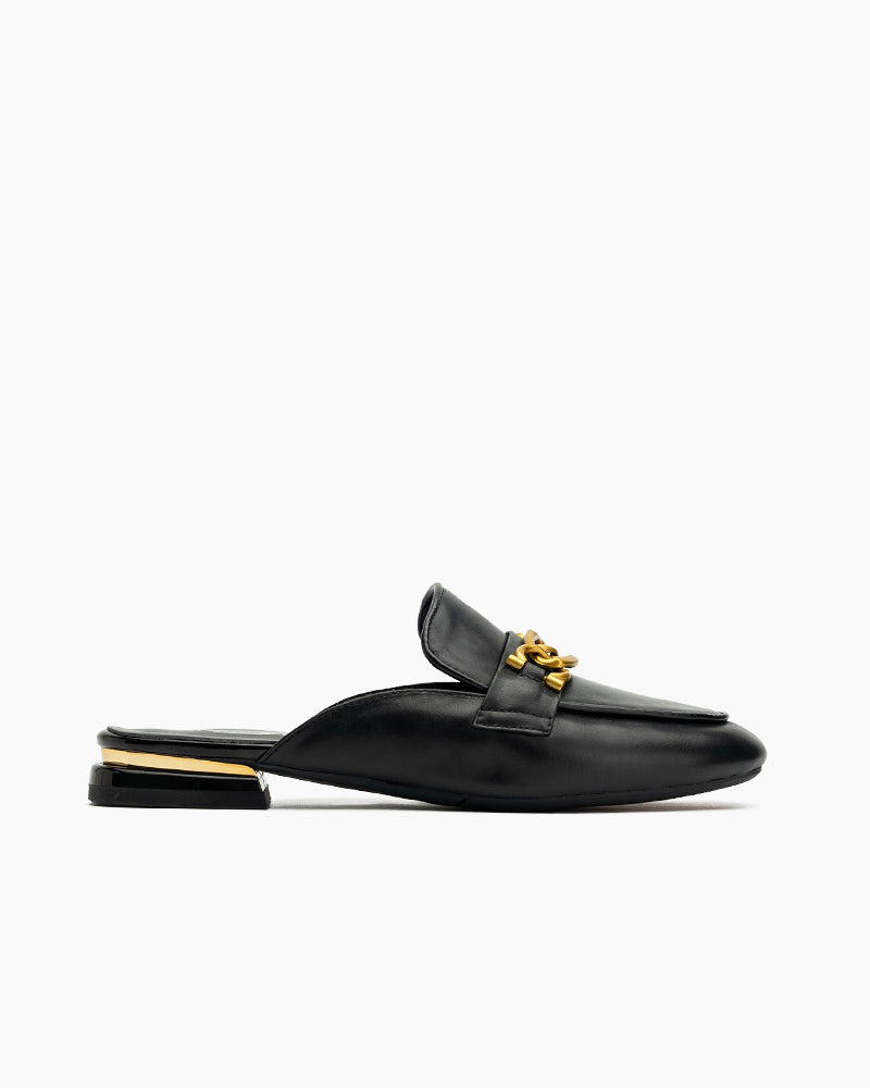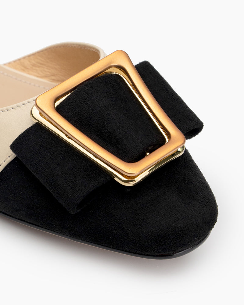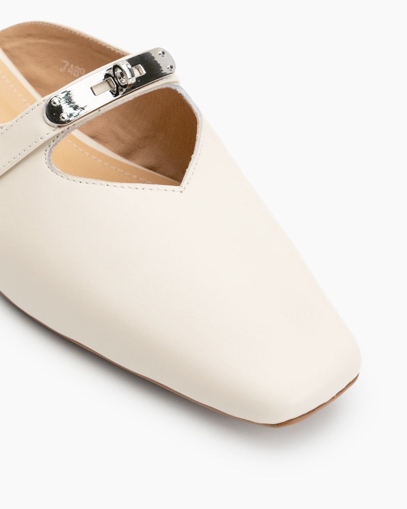Metal Rectangle Buckle Backless Flats Slingback Mules