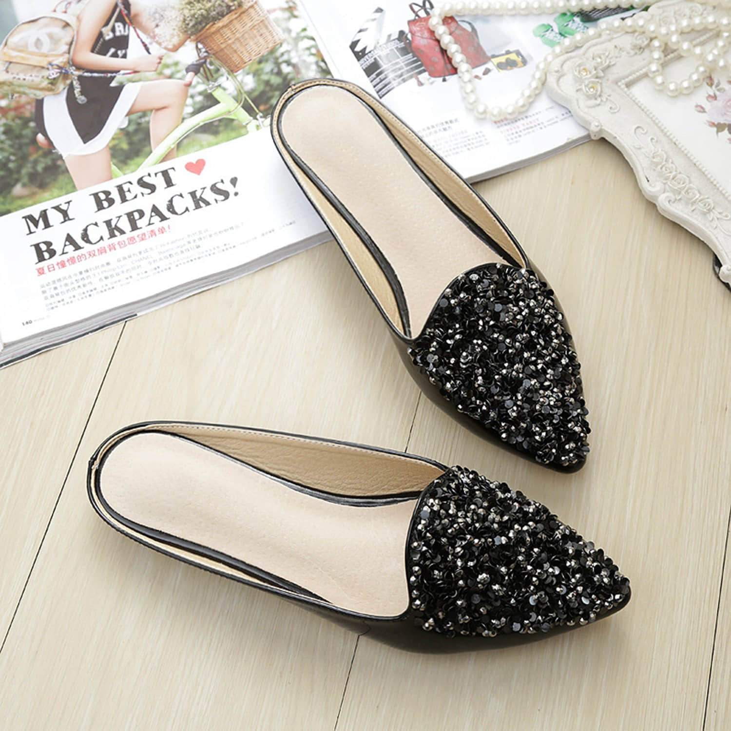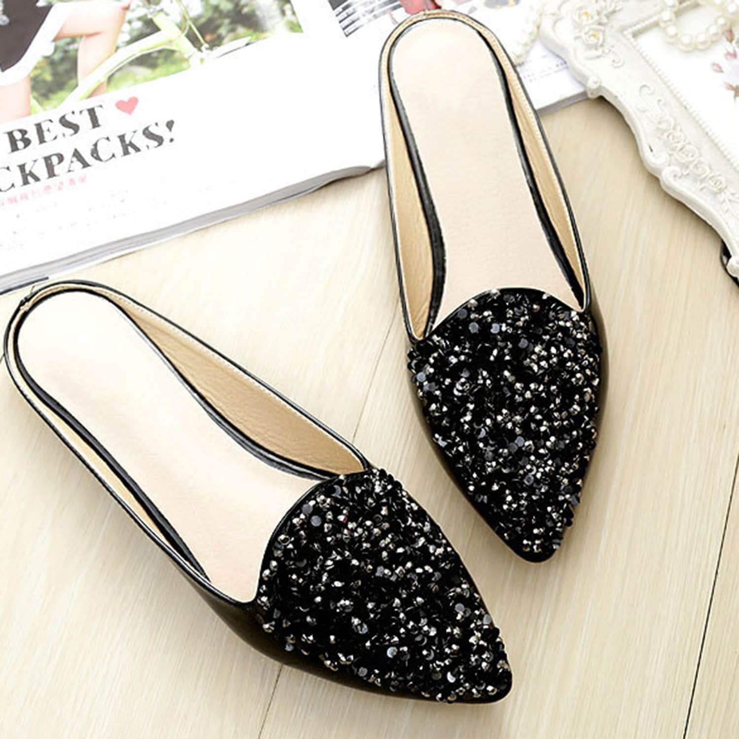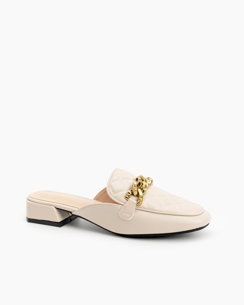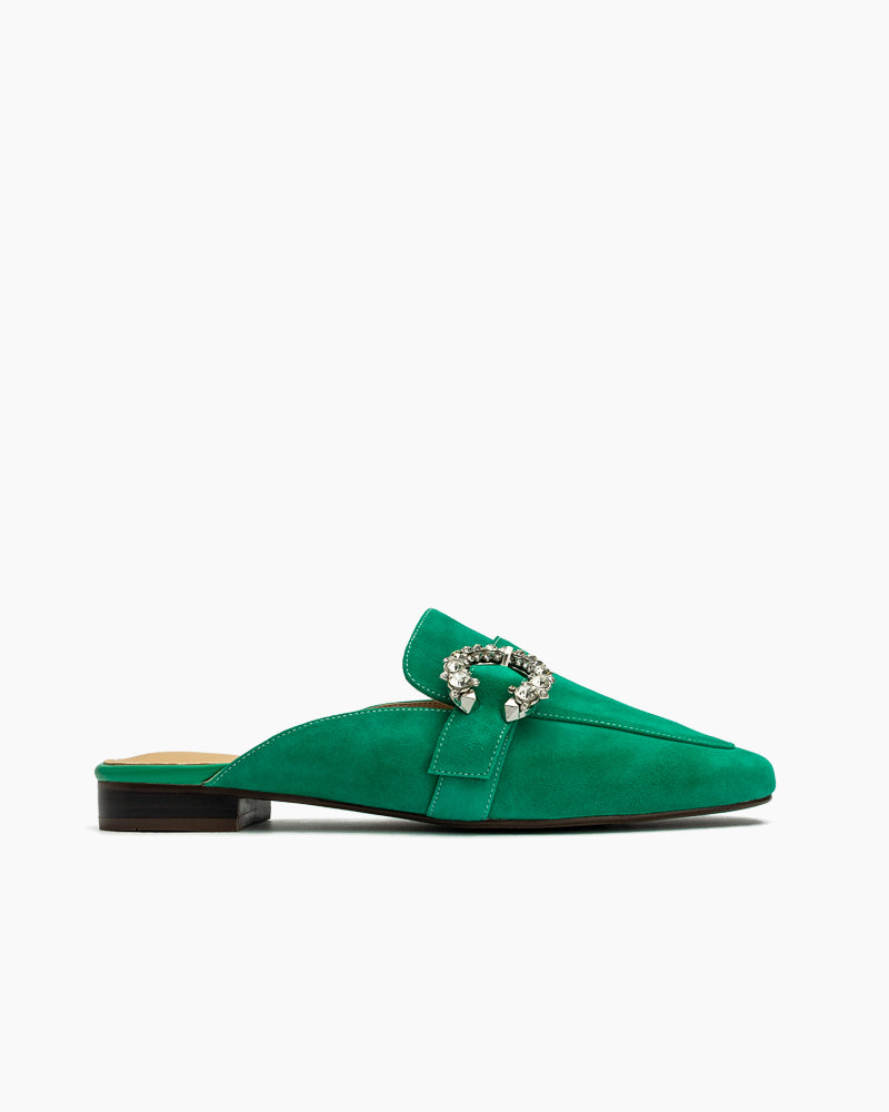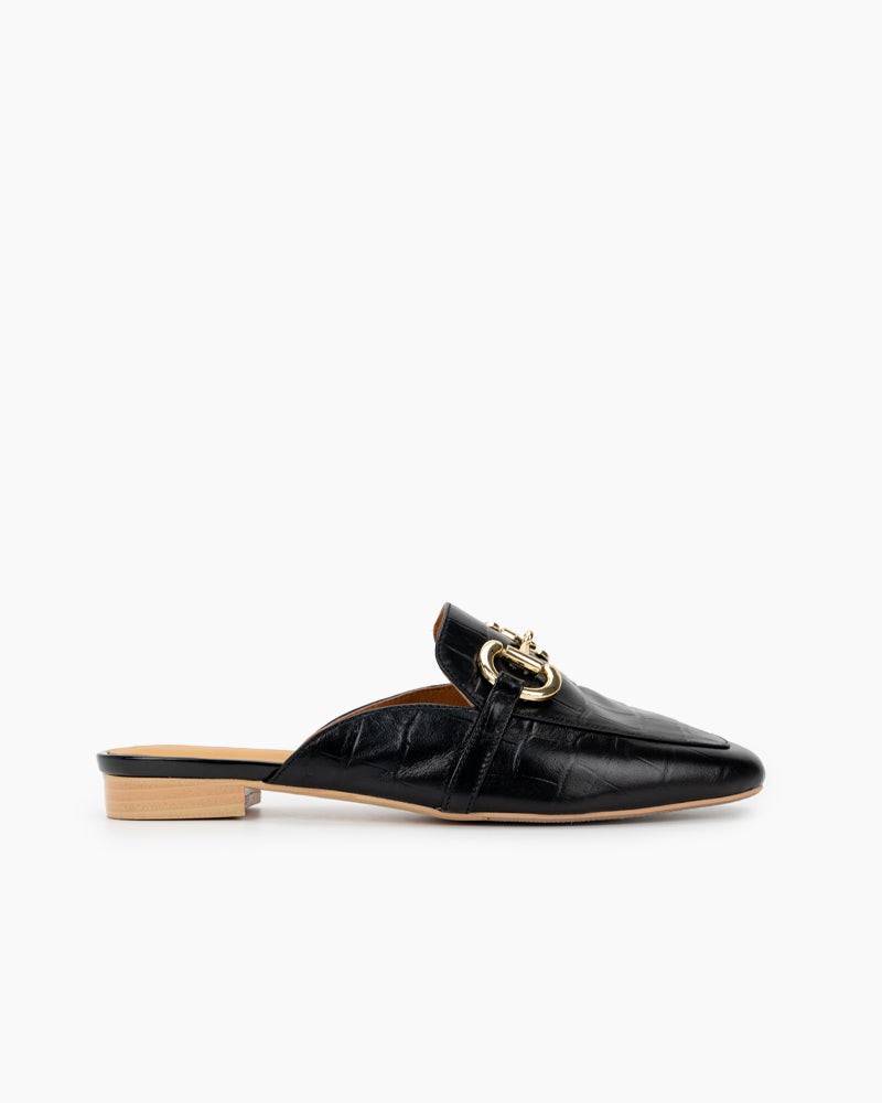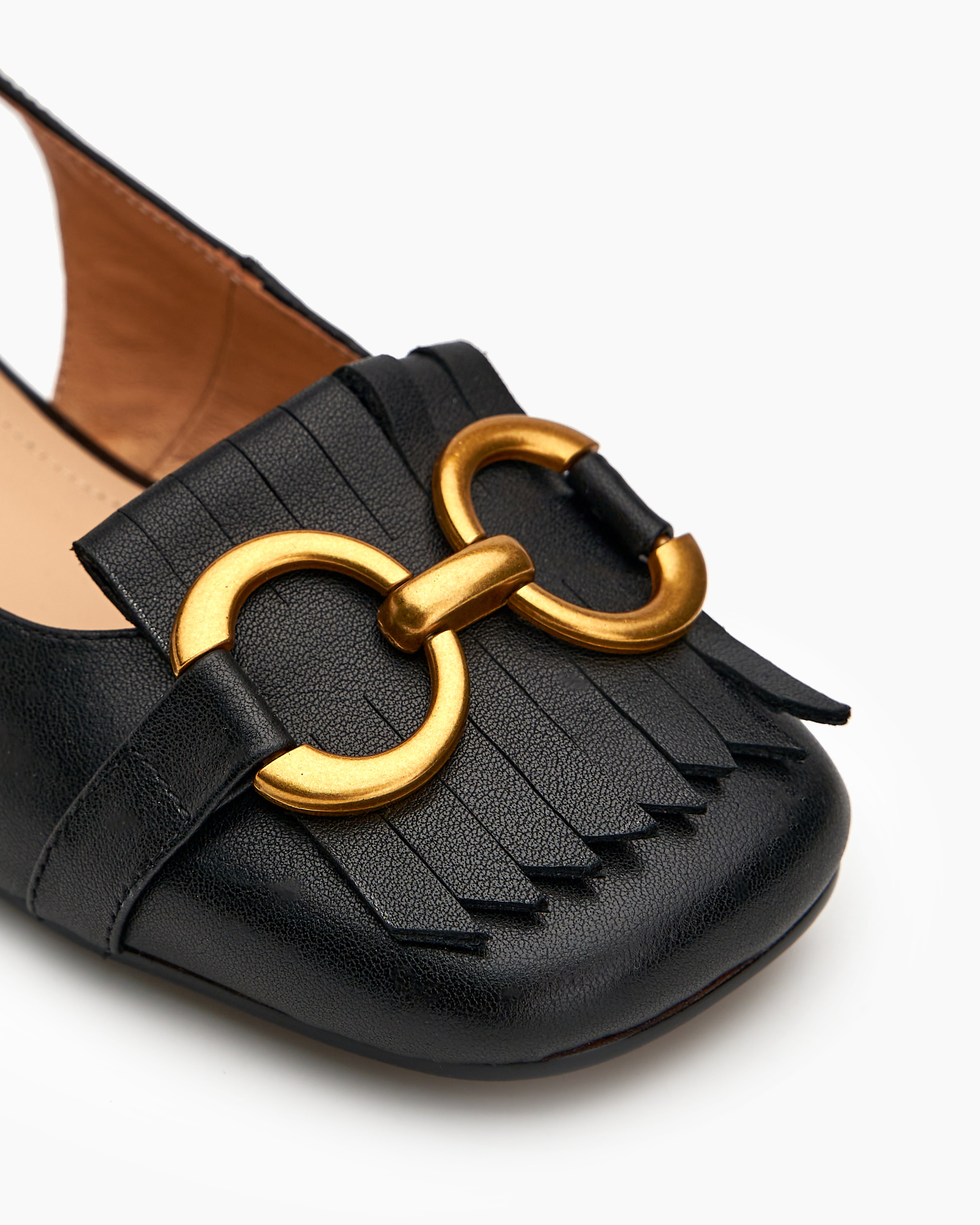 Metal Rectangle Buckle Backless Flats Slingback Mules