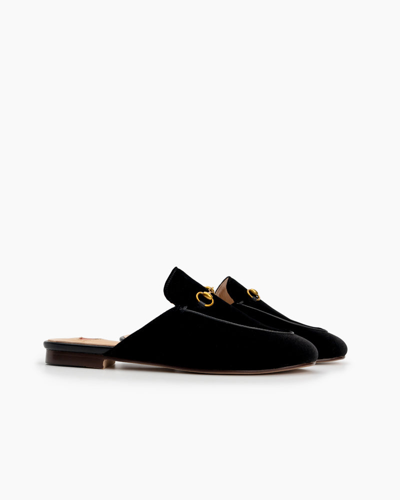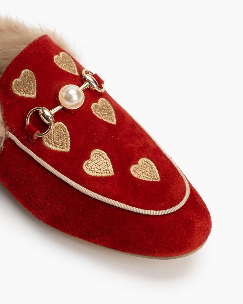 Heart Velvet Oxford Slide Slip On Flat Mules