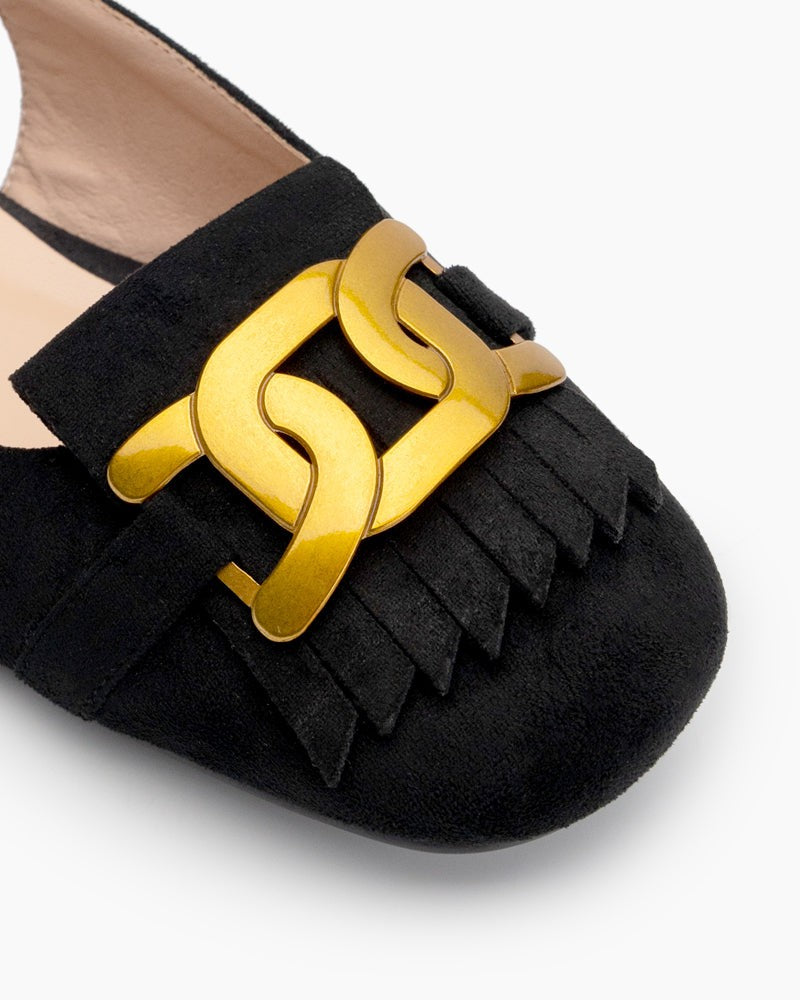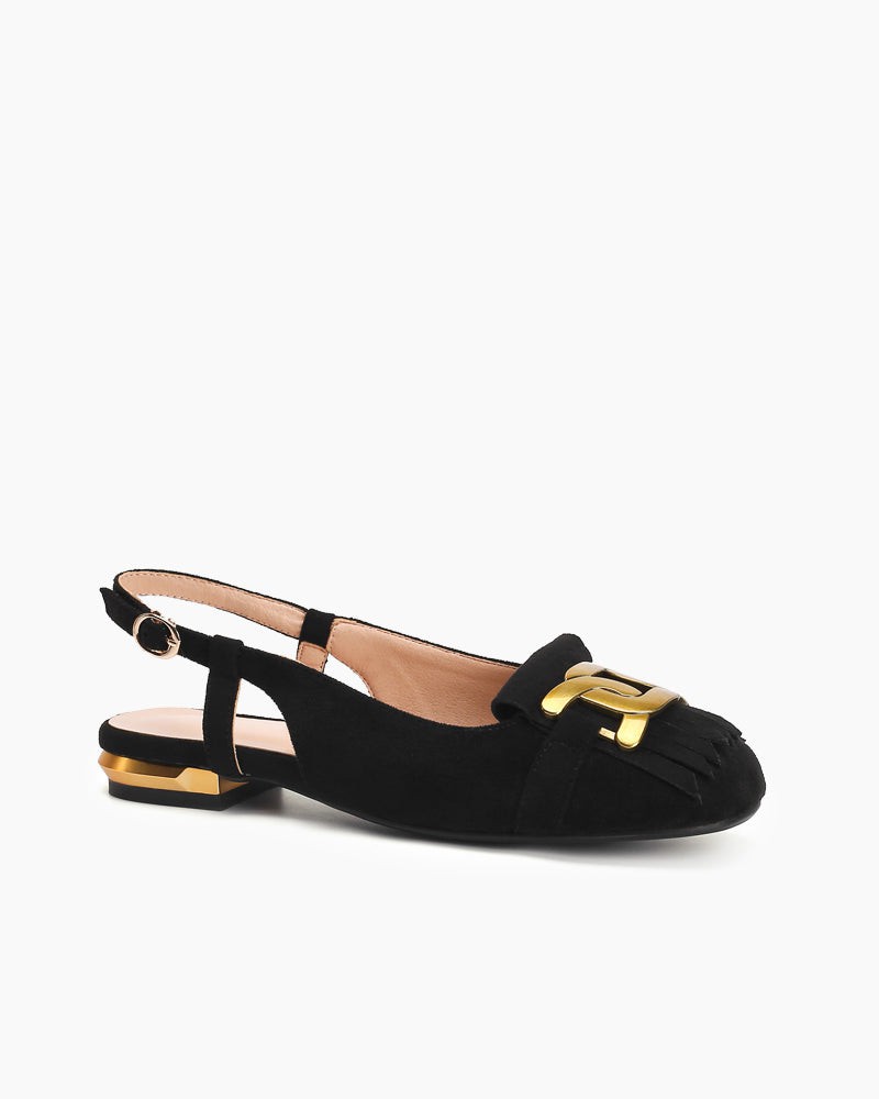 Metal Buckle Slip On Tassels Suede Flat Mules
