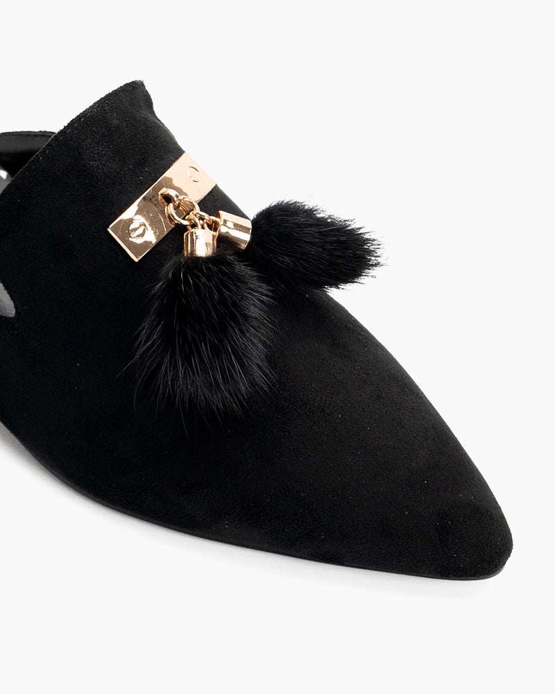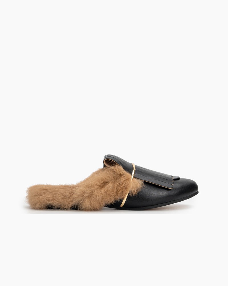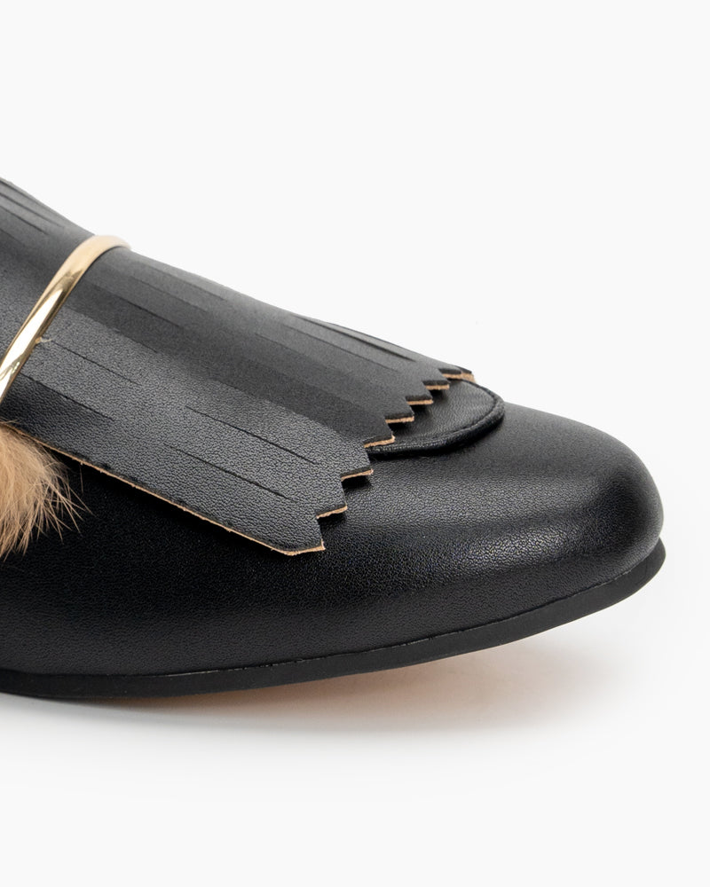 Tassel Fur Backless Slip On Buckle Flat Mules