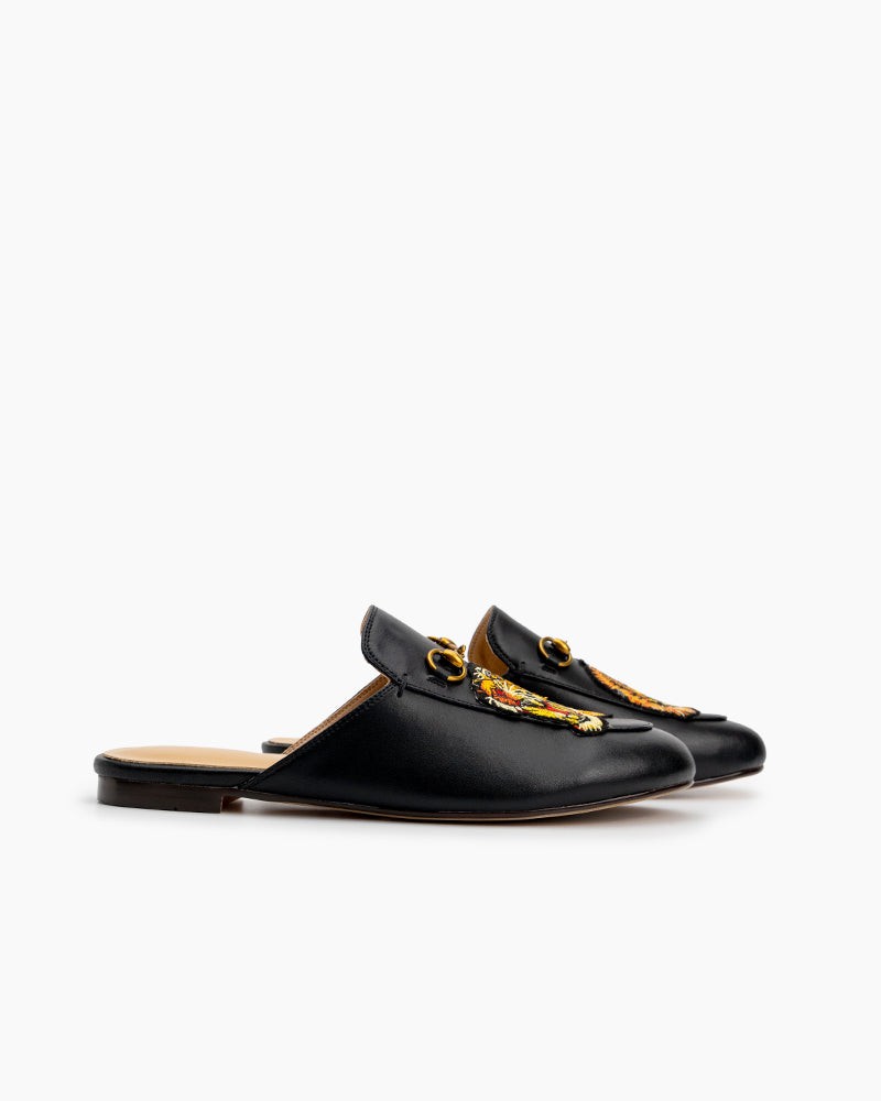 Casual Fashion Leather Tiger Pattern Slippers Mules