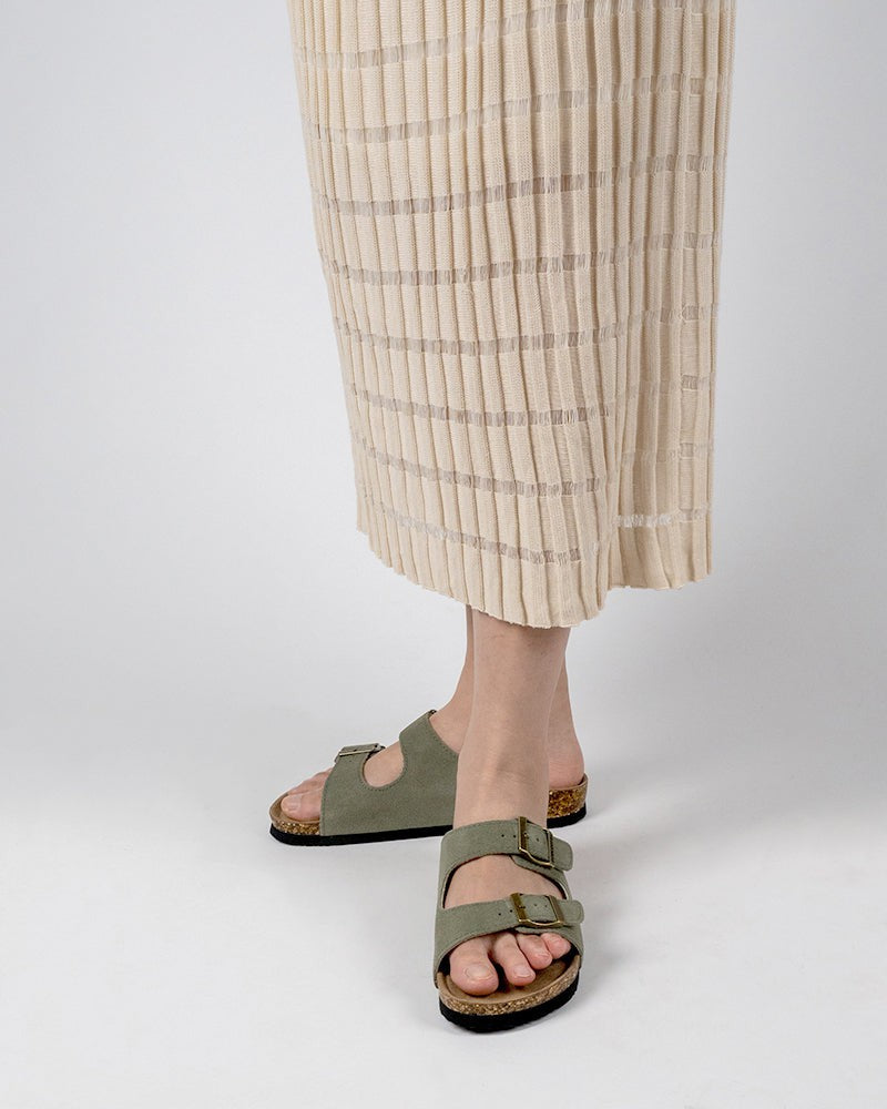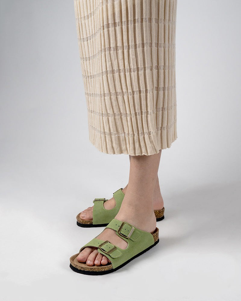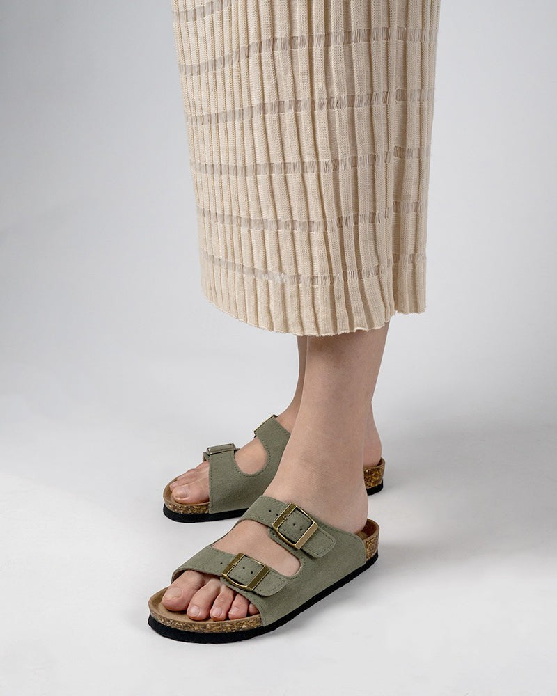 Cork Footbed Open Toe Slides Adjustable Slip On Slippers Sandals