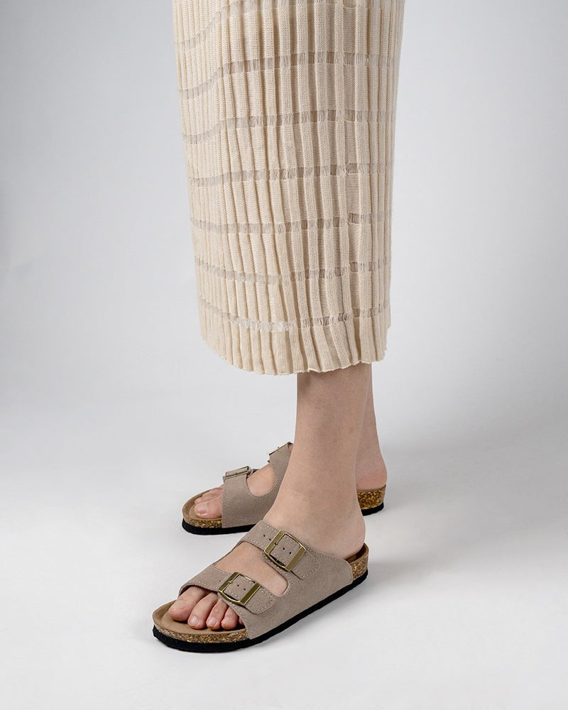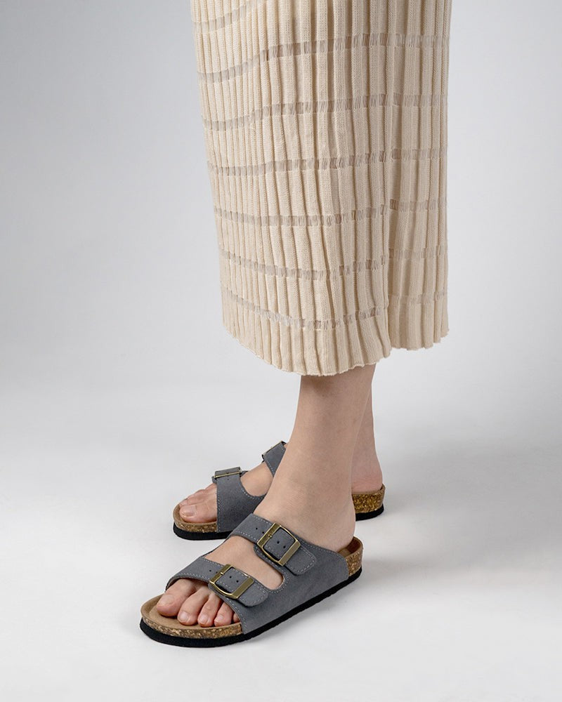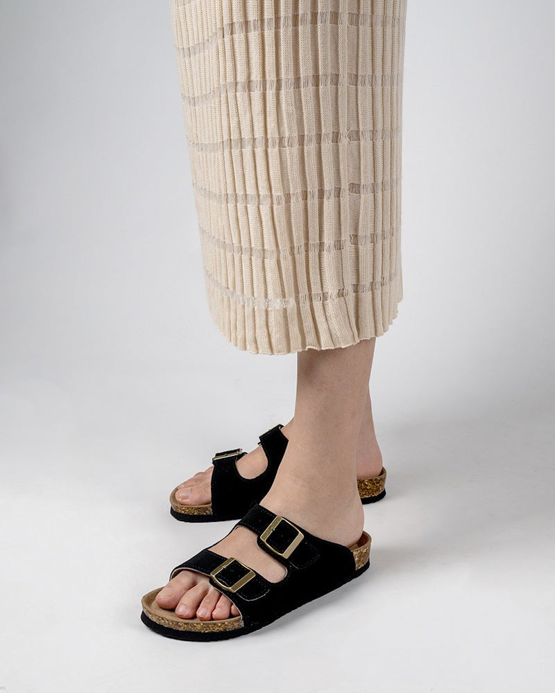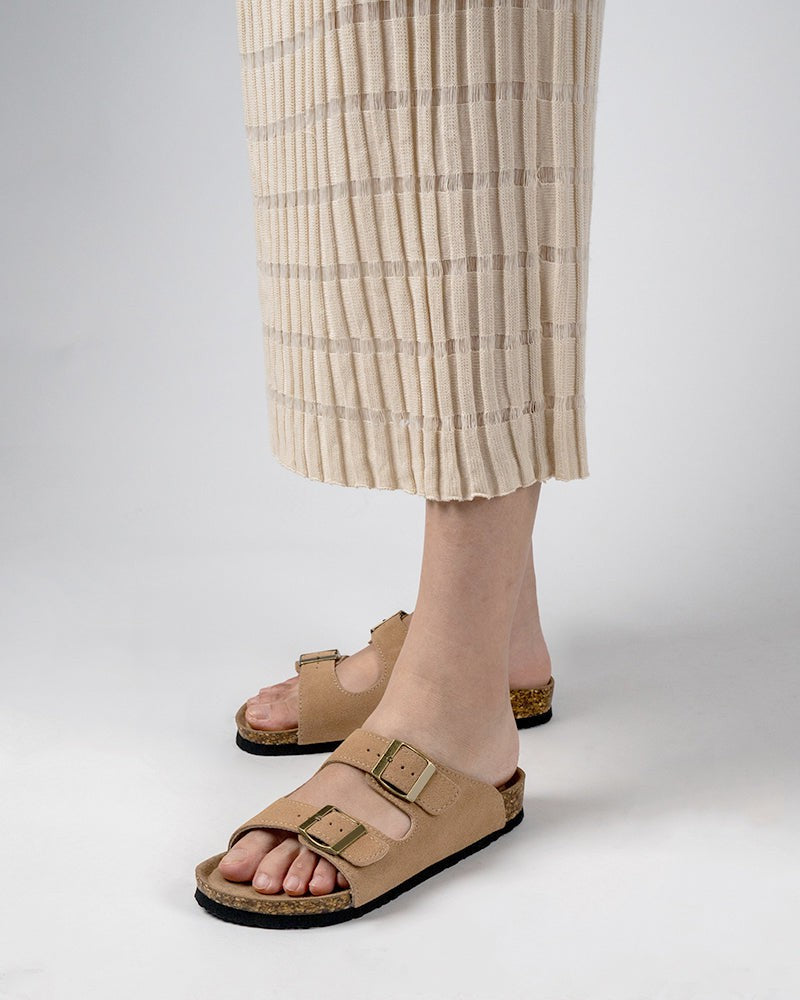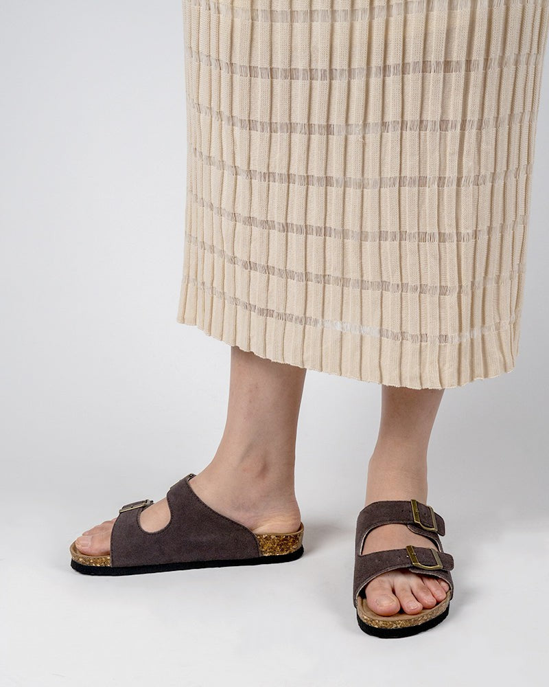 Cork Footbed Open Toe Slides Adjustable Slip On Slippers Sandals