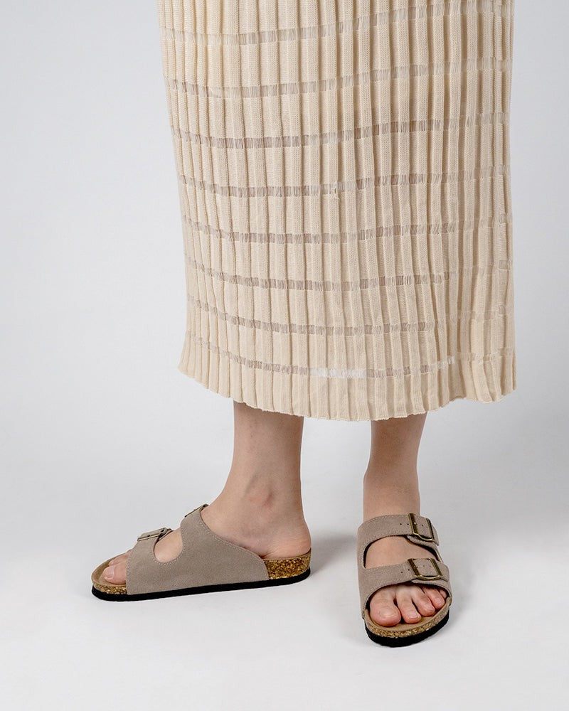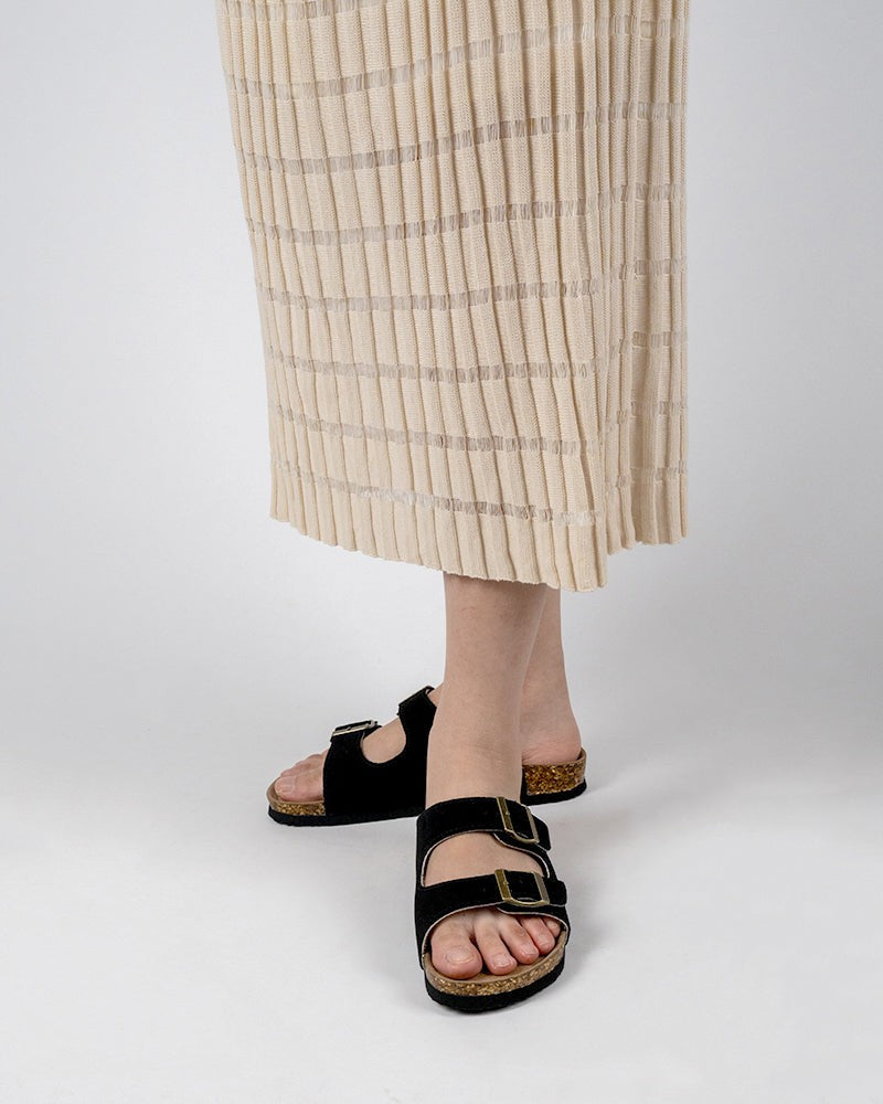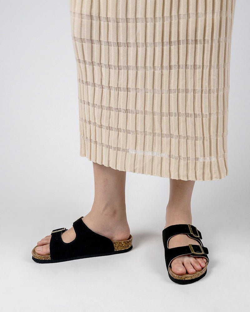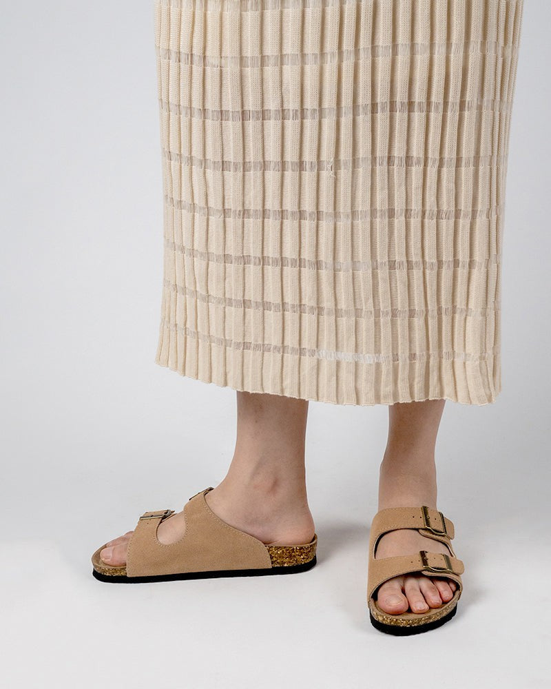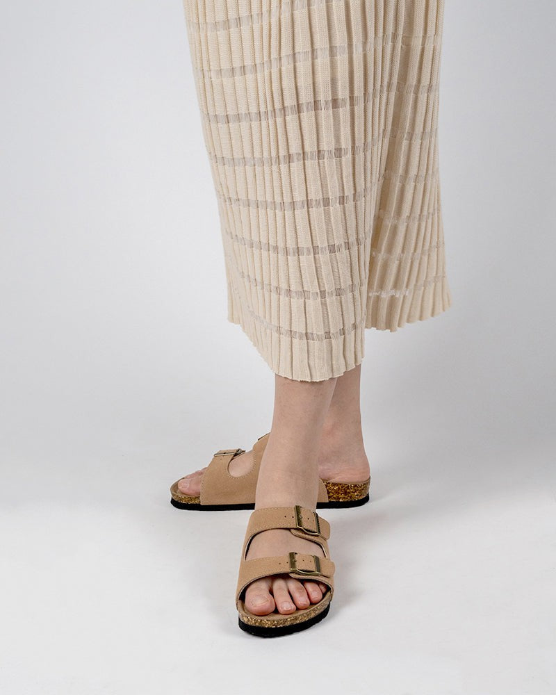 Cork Footbed Open Toe Slides Adjustable Slip On Slippers Sandals