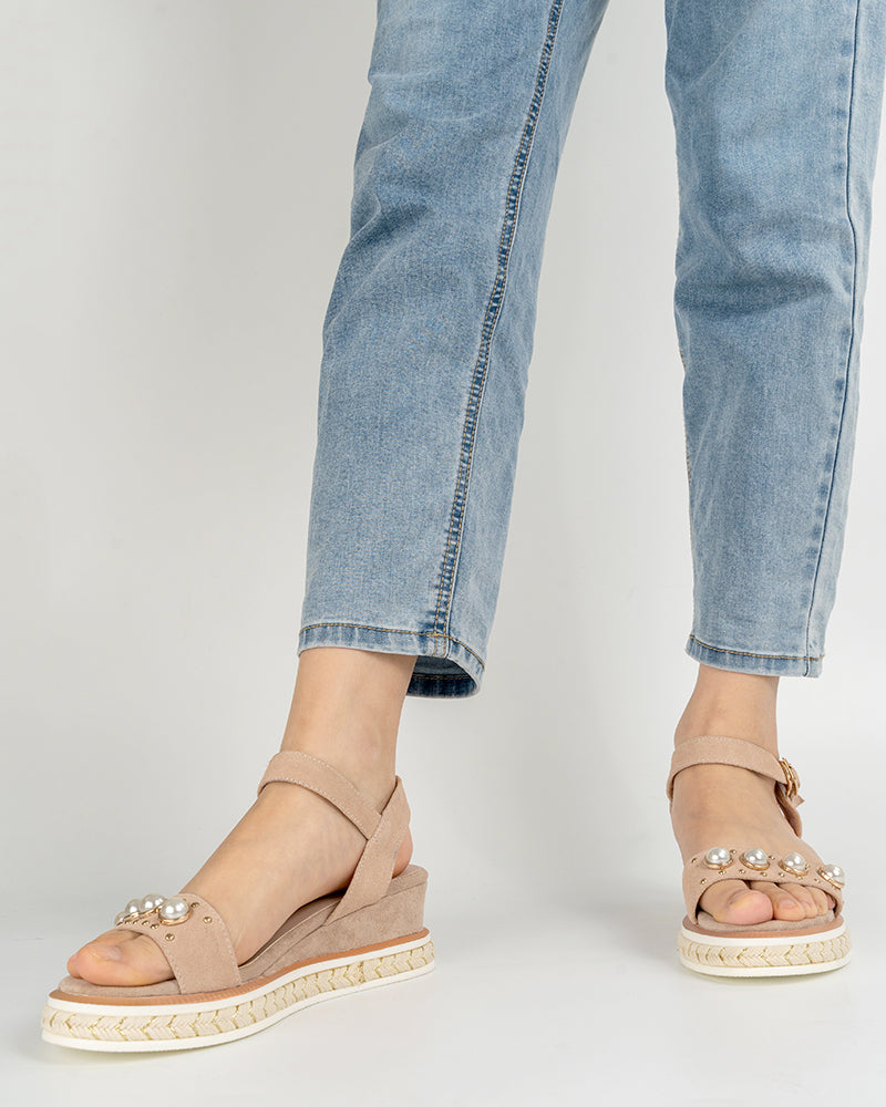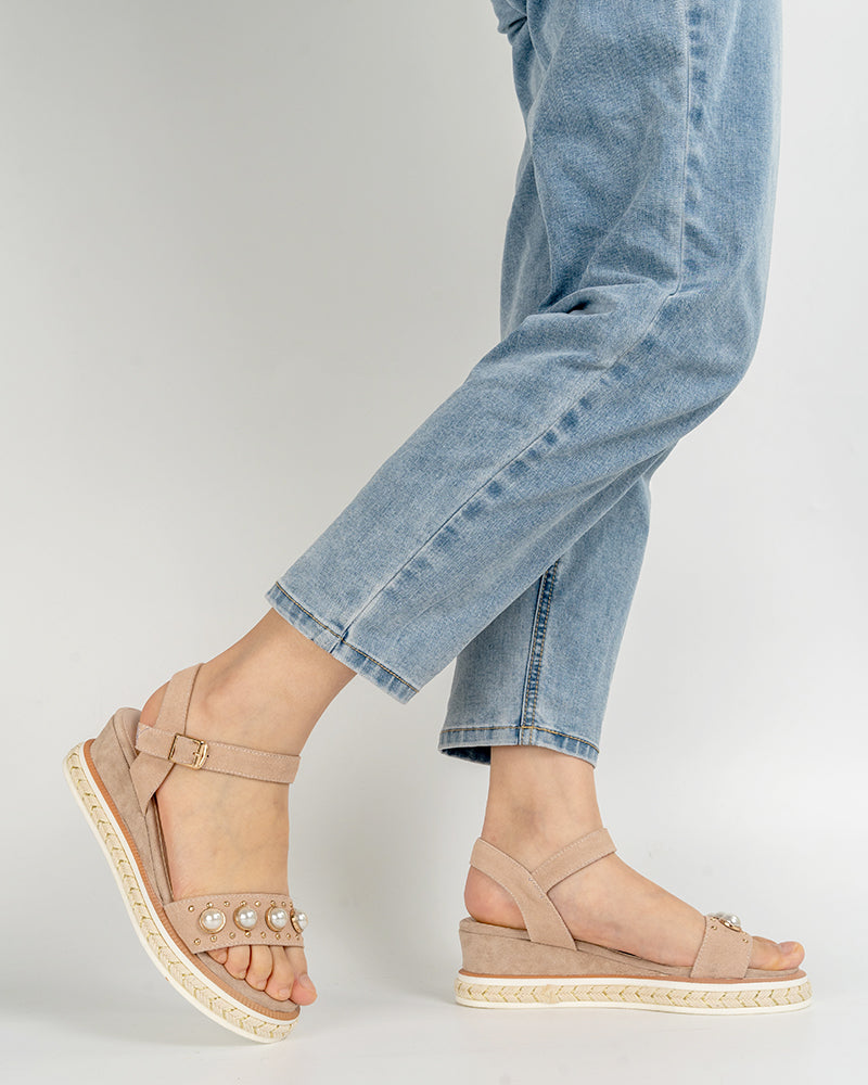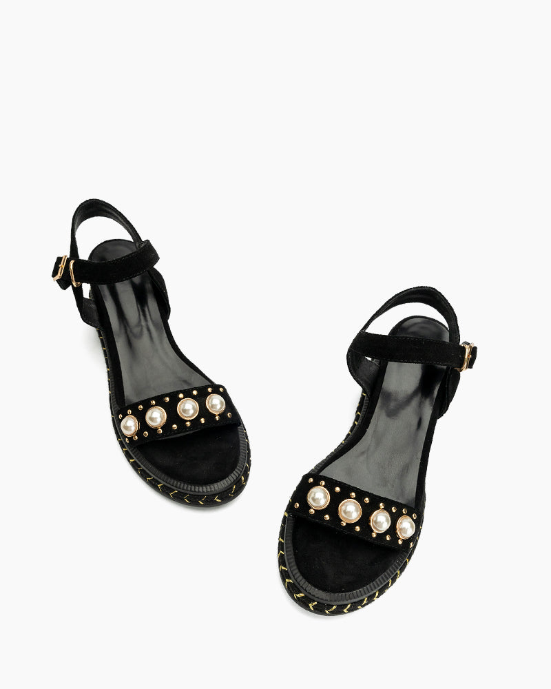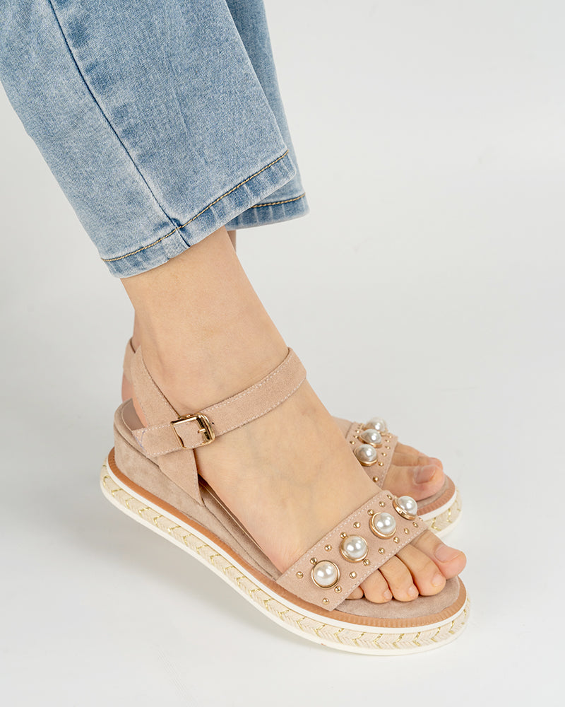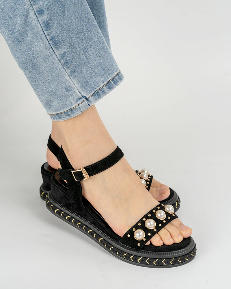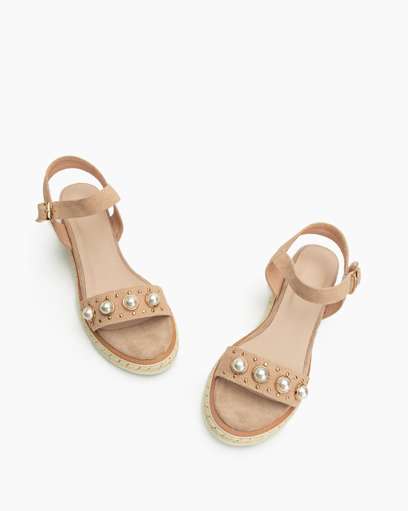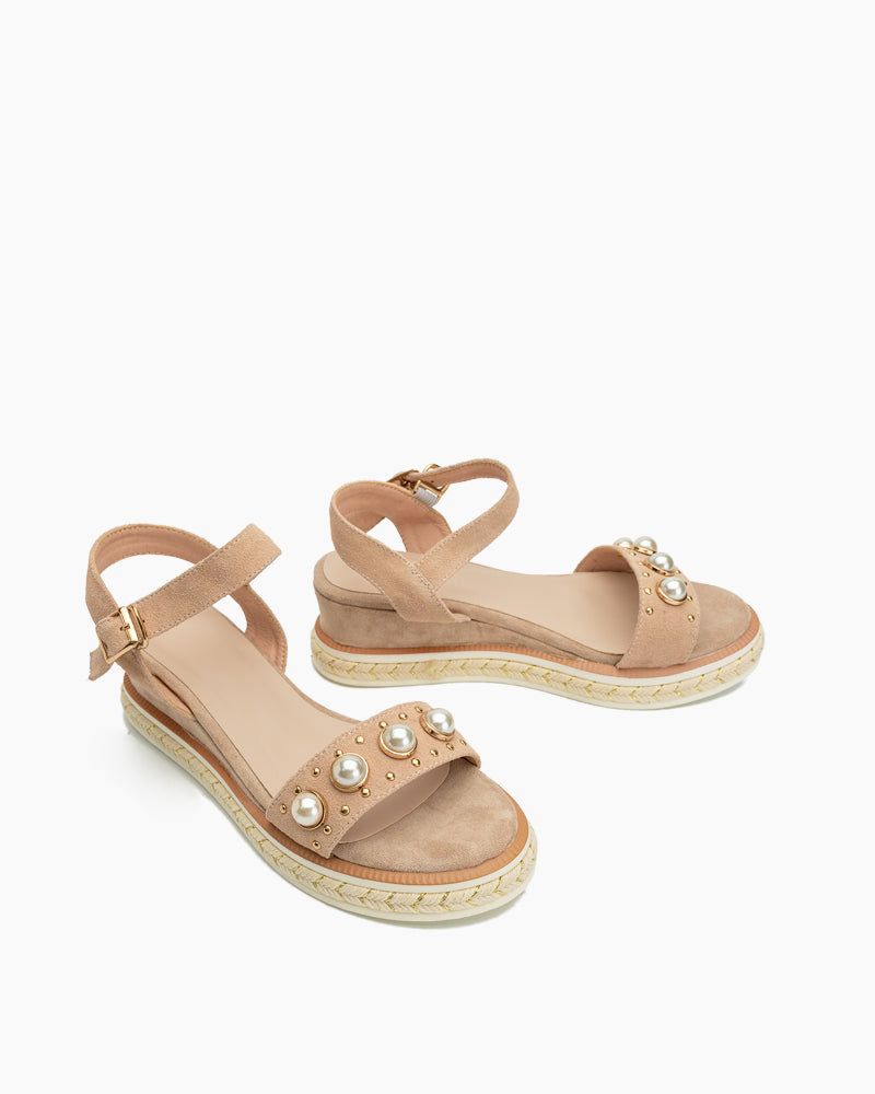Faux Pearl Decor Ankle Strap Wedge Sandals