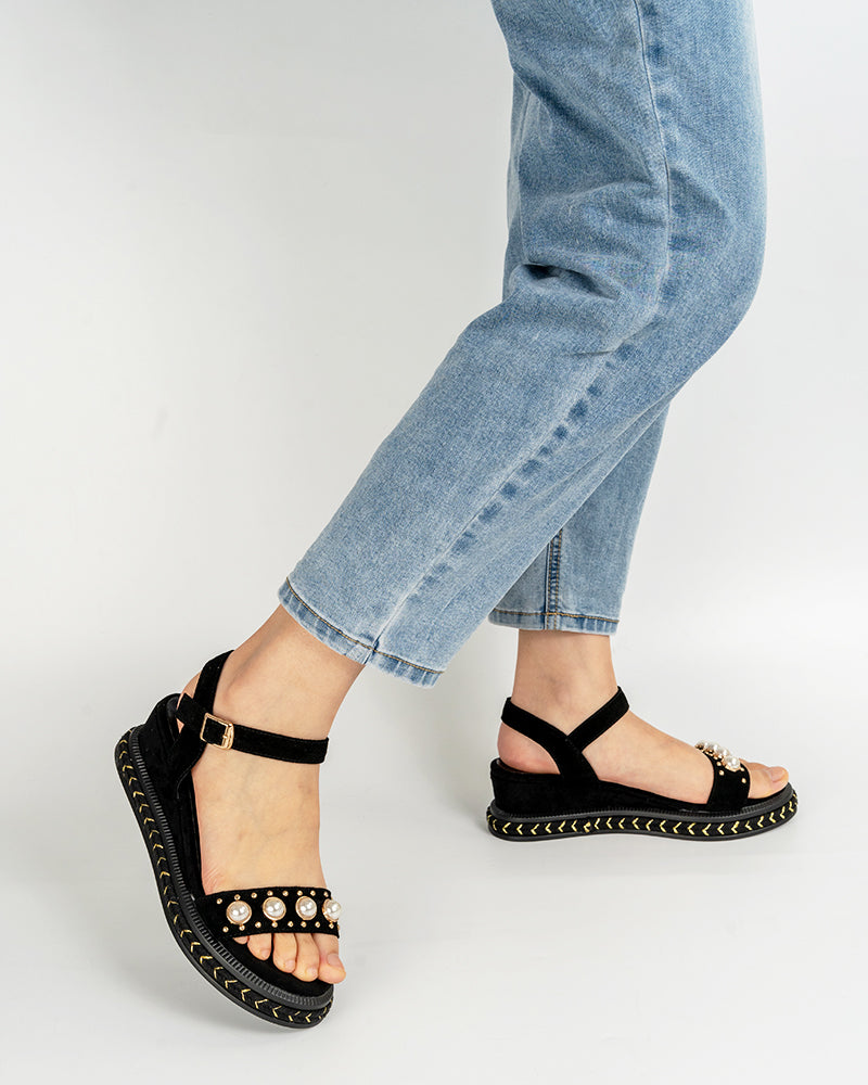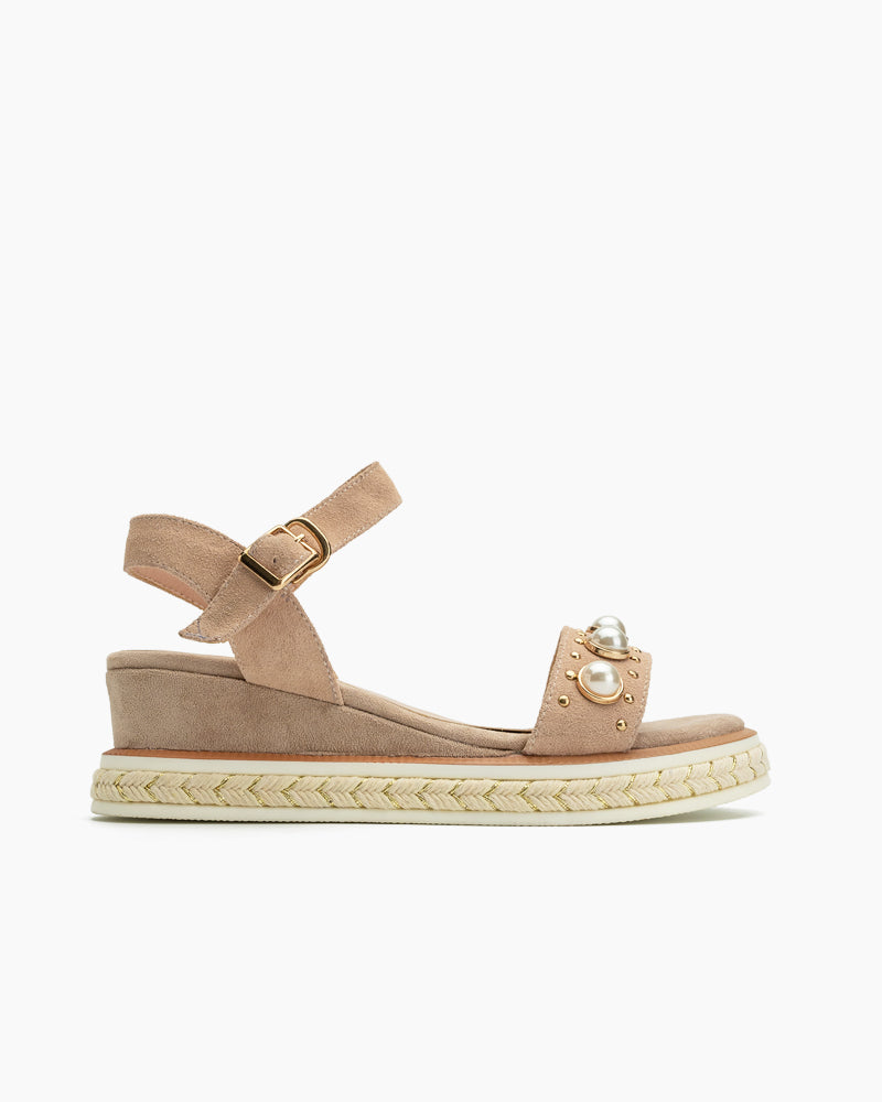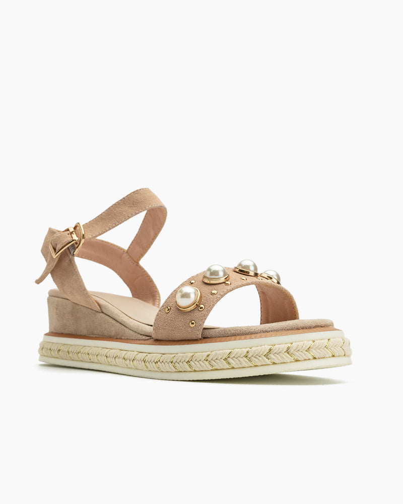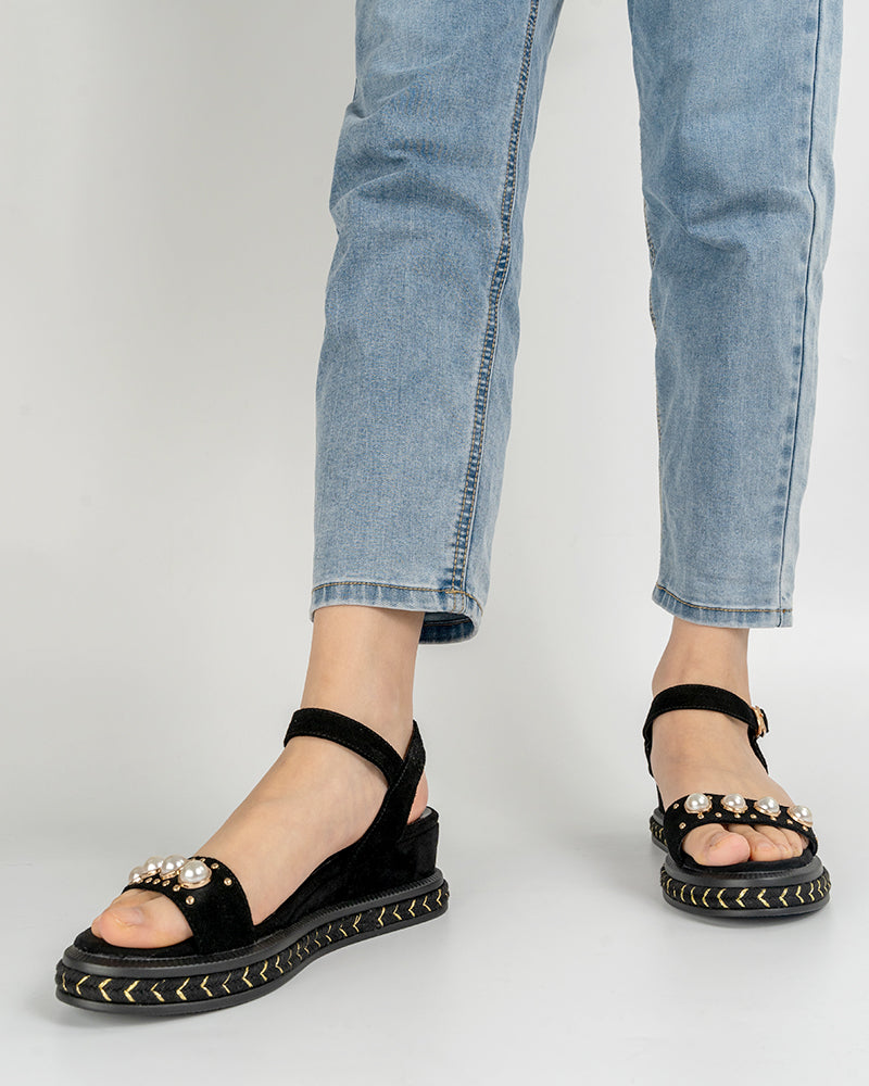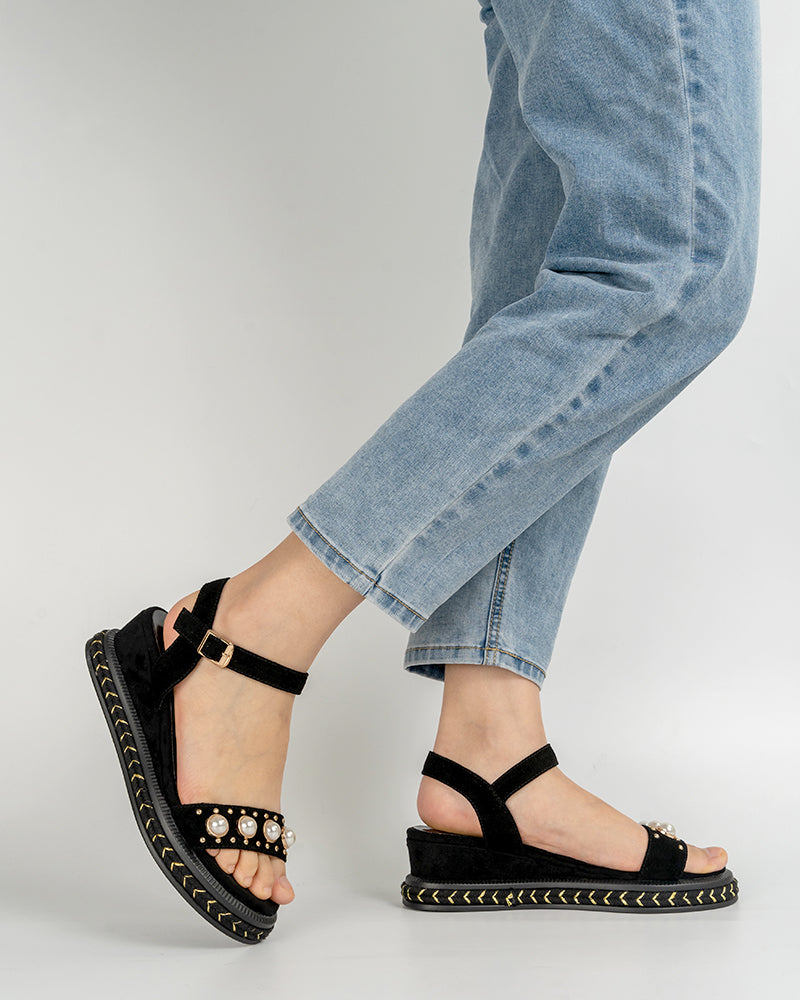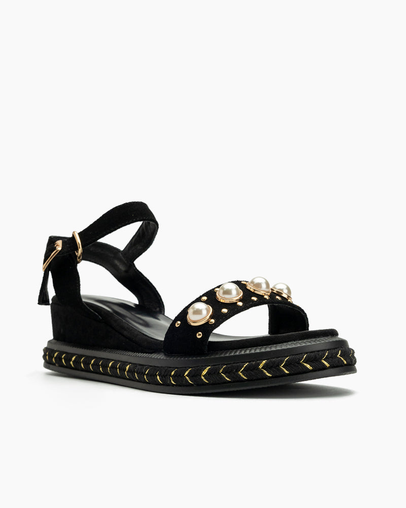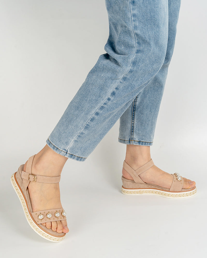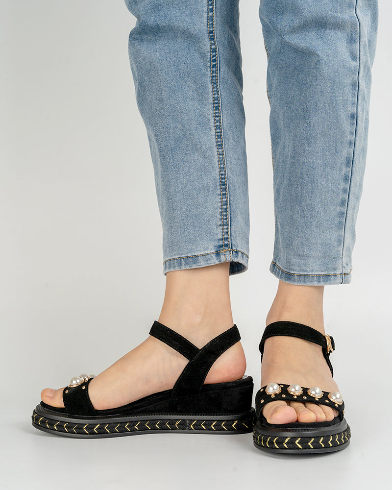 Faux Pearl Decor Ankle Strap Wedge Sandals