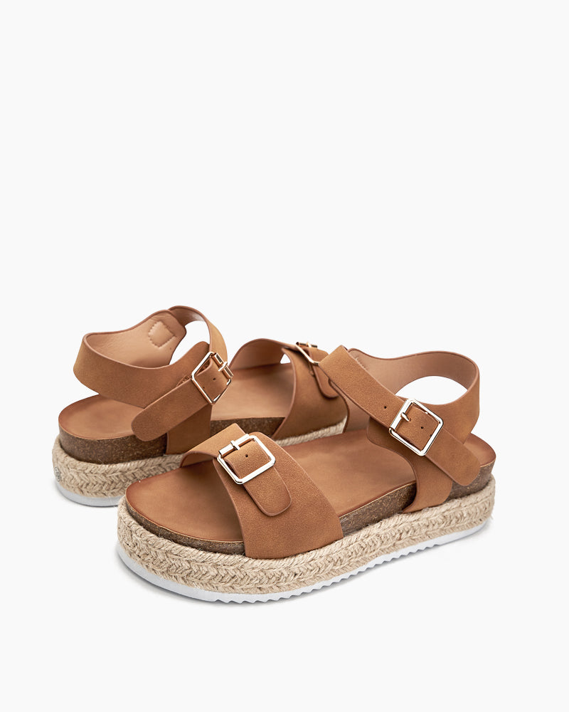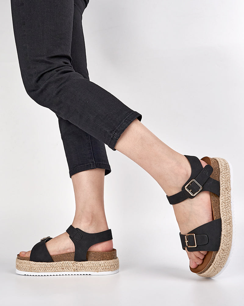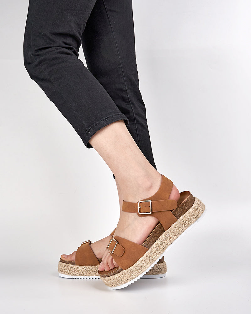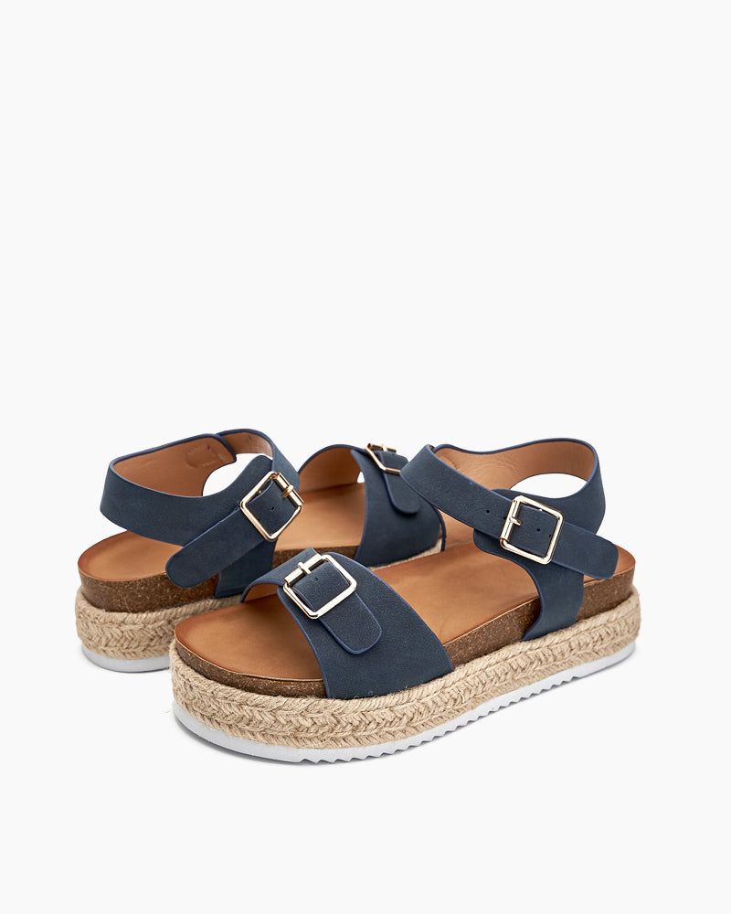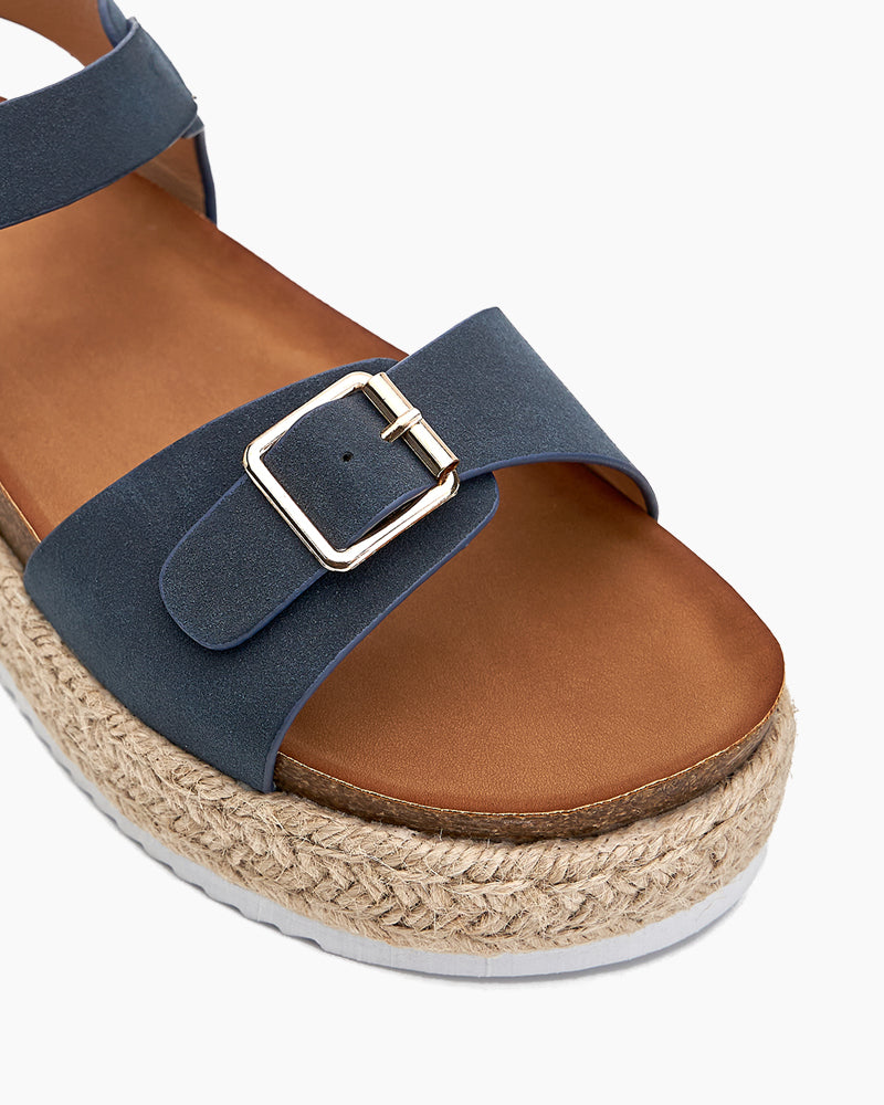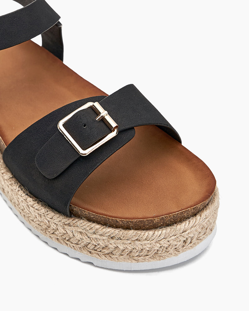 Open Toe Buckled Ankle Flatform Espadrille Sandals