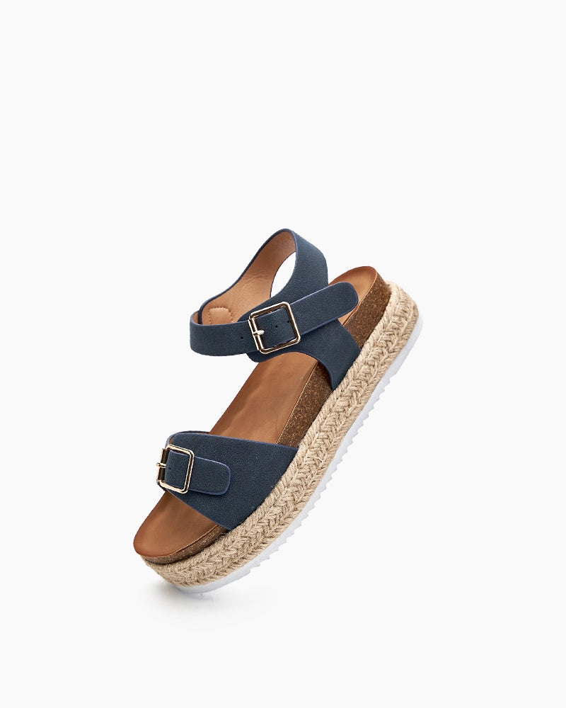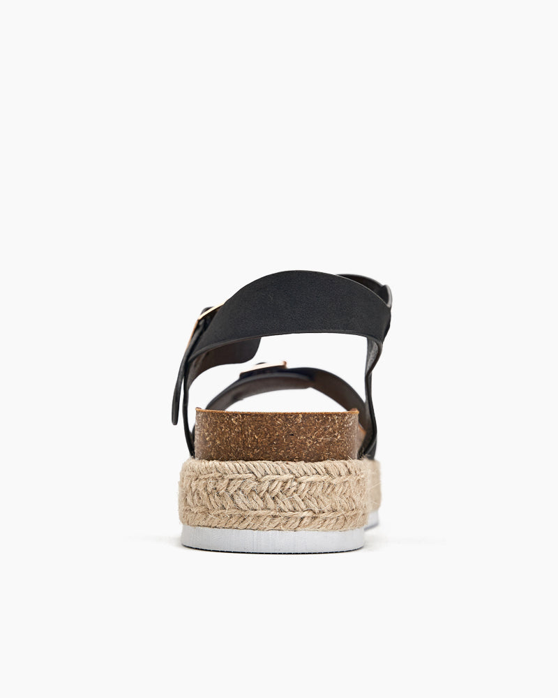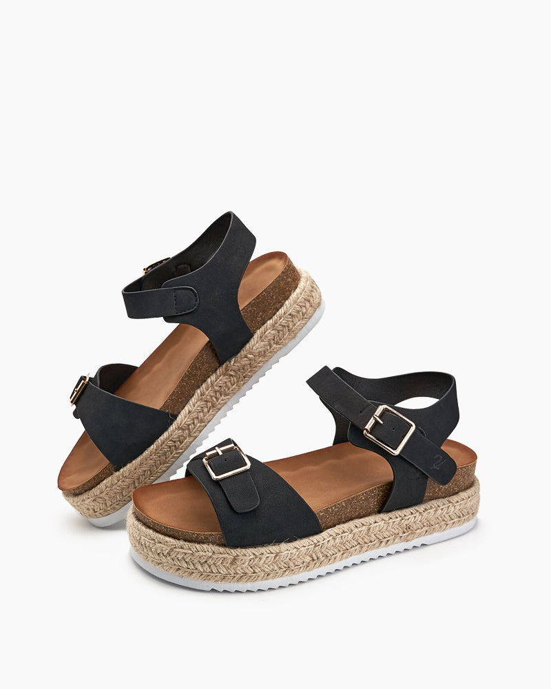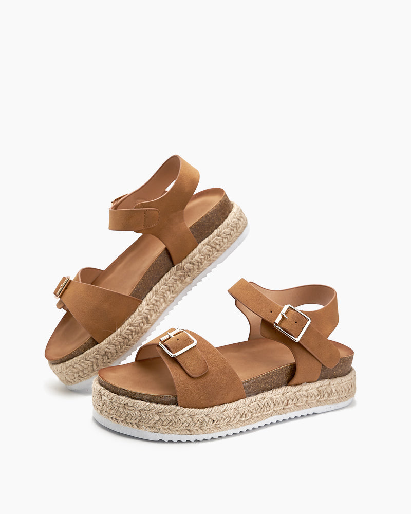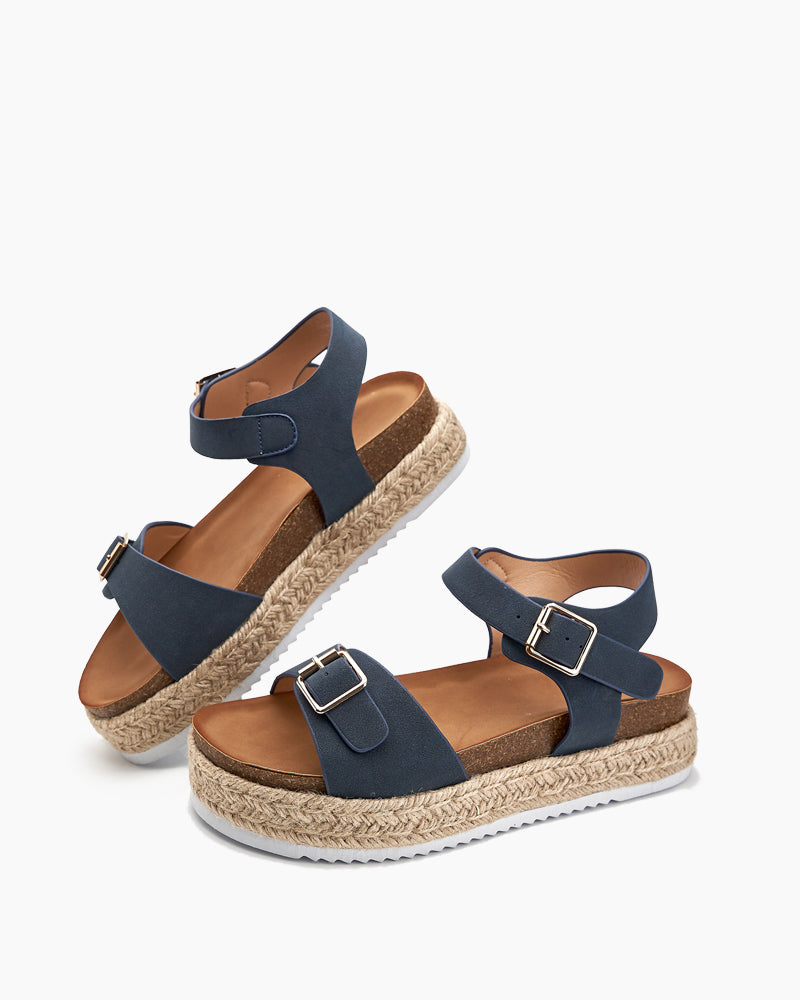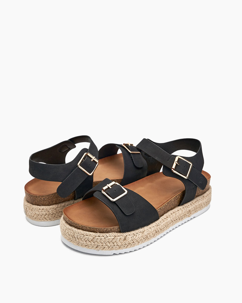 Open Toe Buckled Ankle Flatform Espadrille Sandals