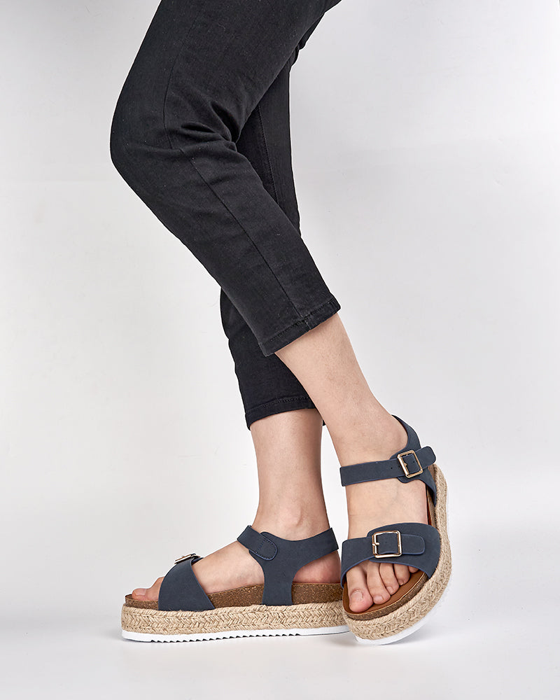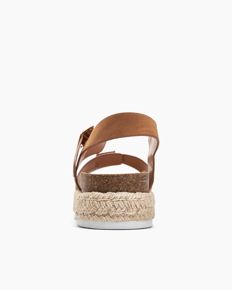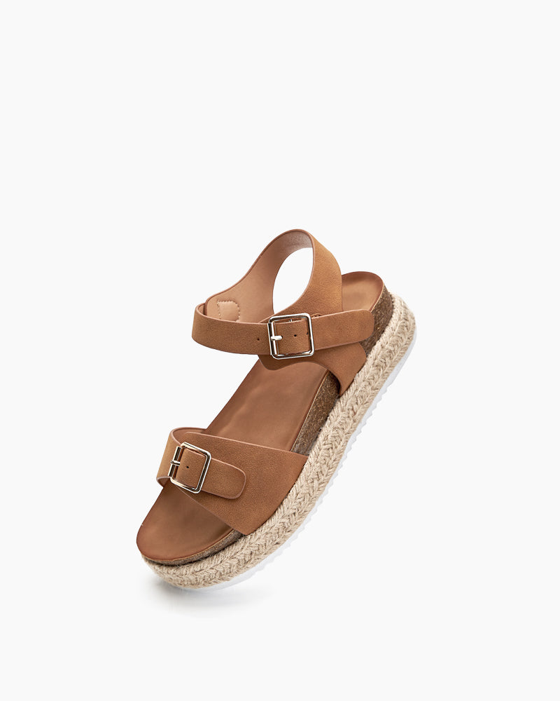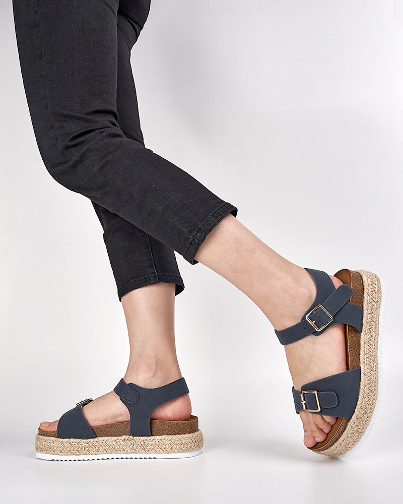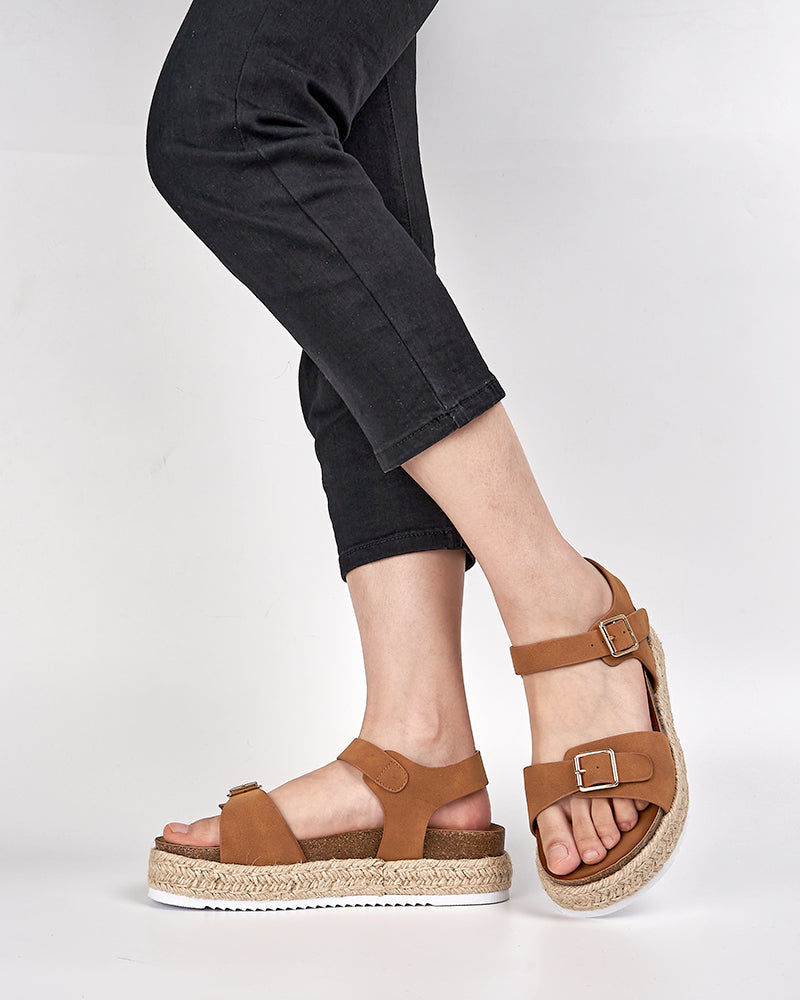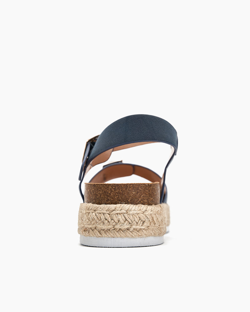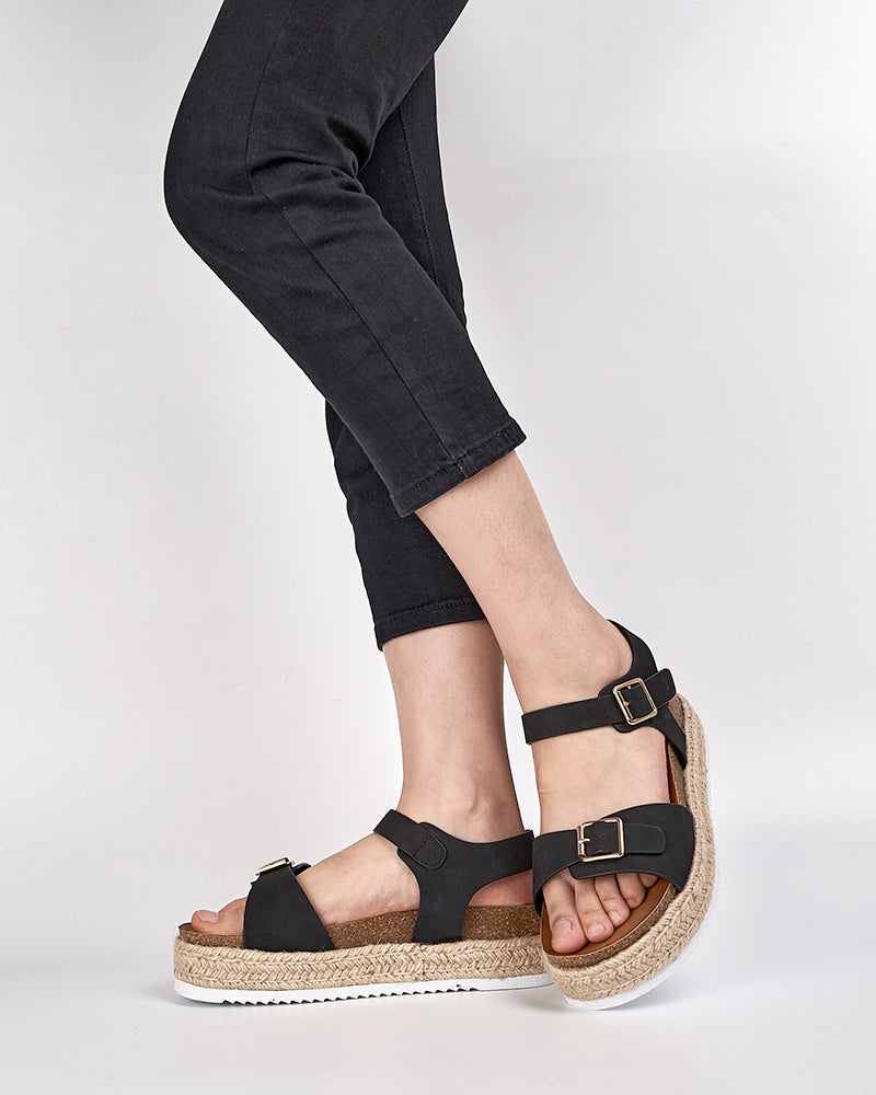Open Toe Buckled Ankle Flatform Espadrille Sandals