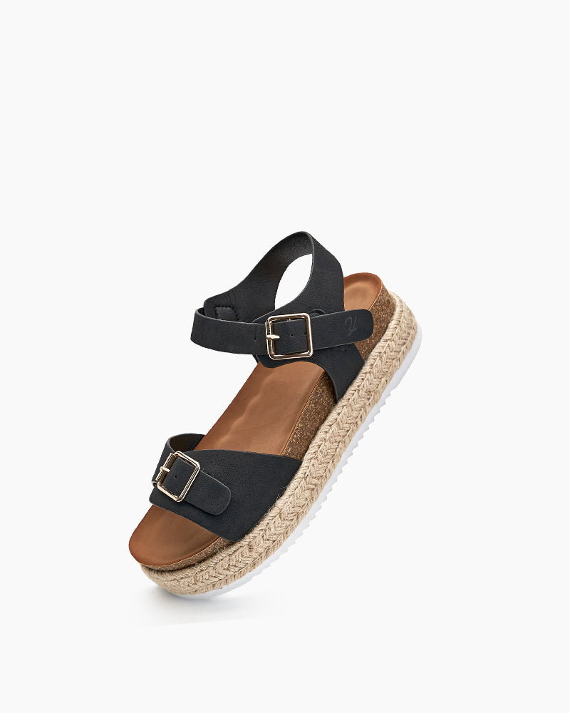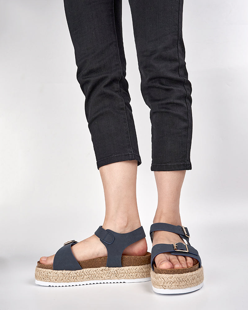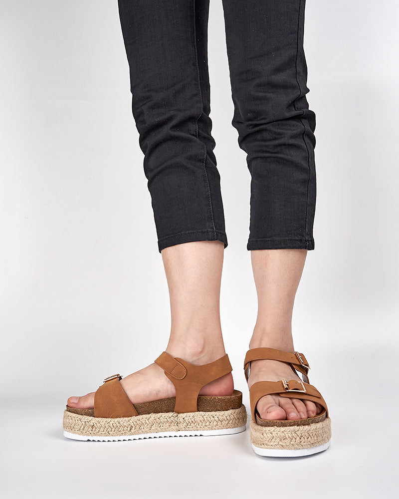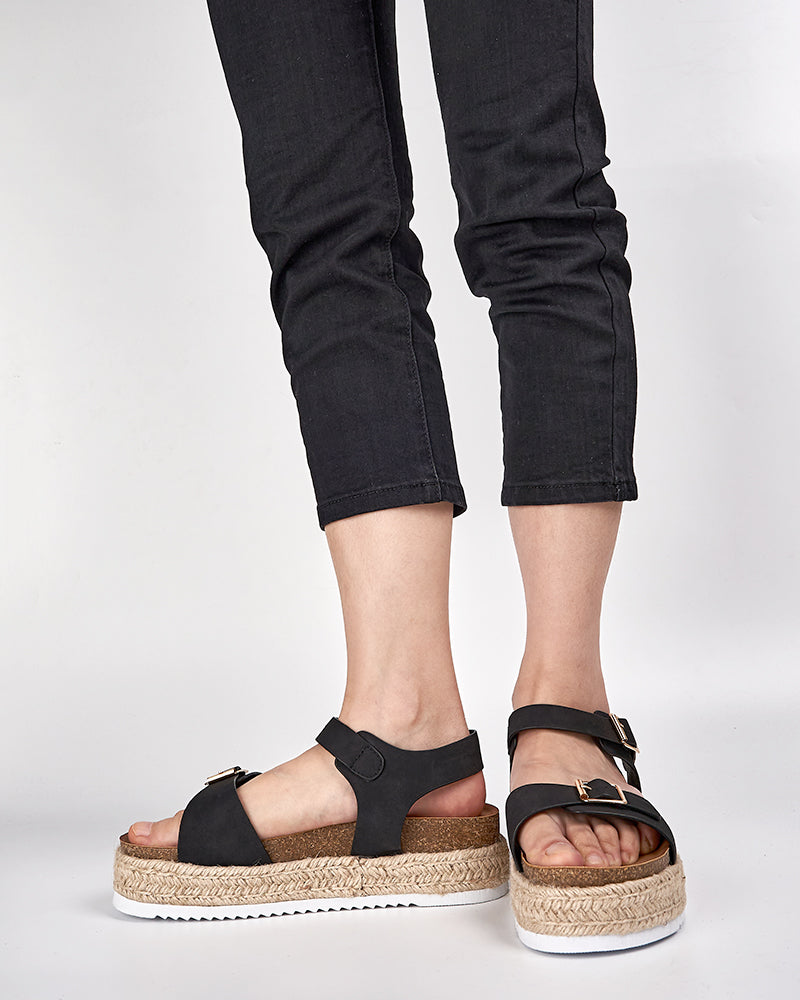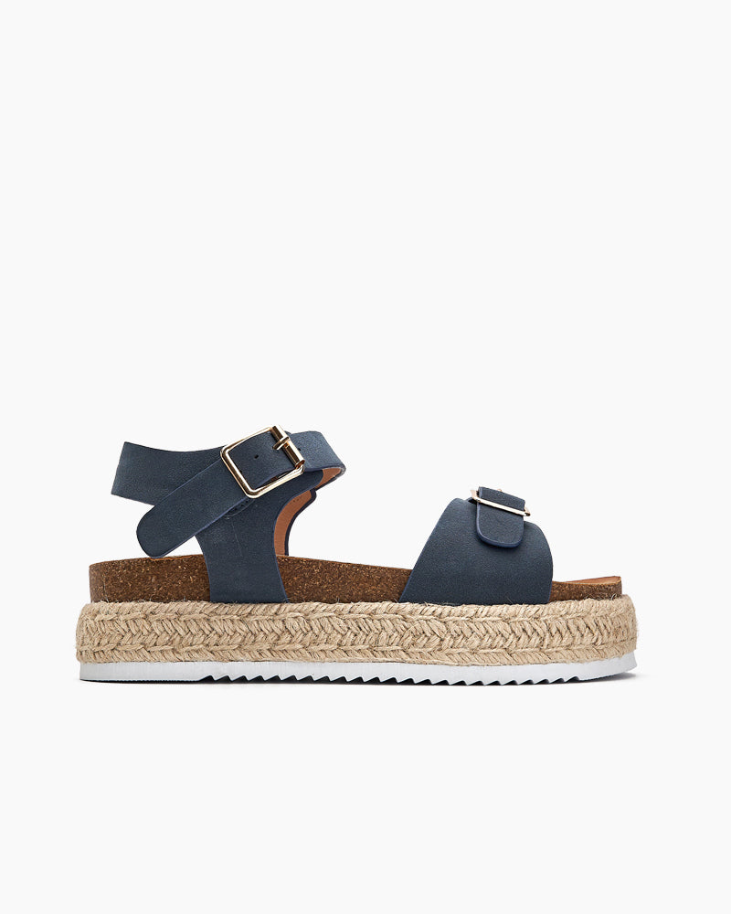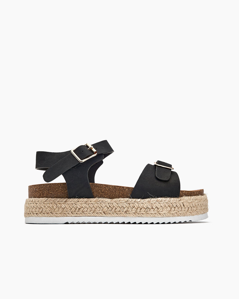 Open Toe Buckled Ankle Flatform Espadrille Sandals