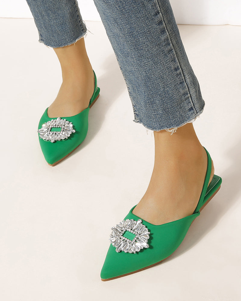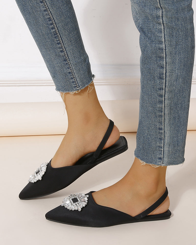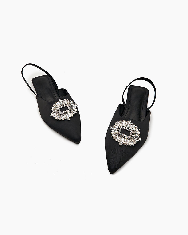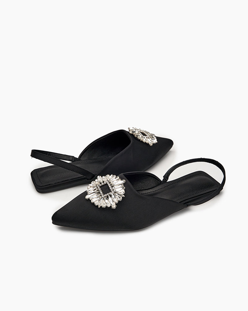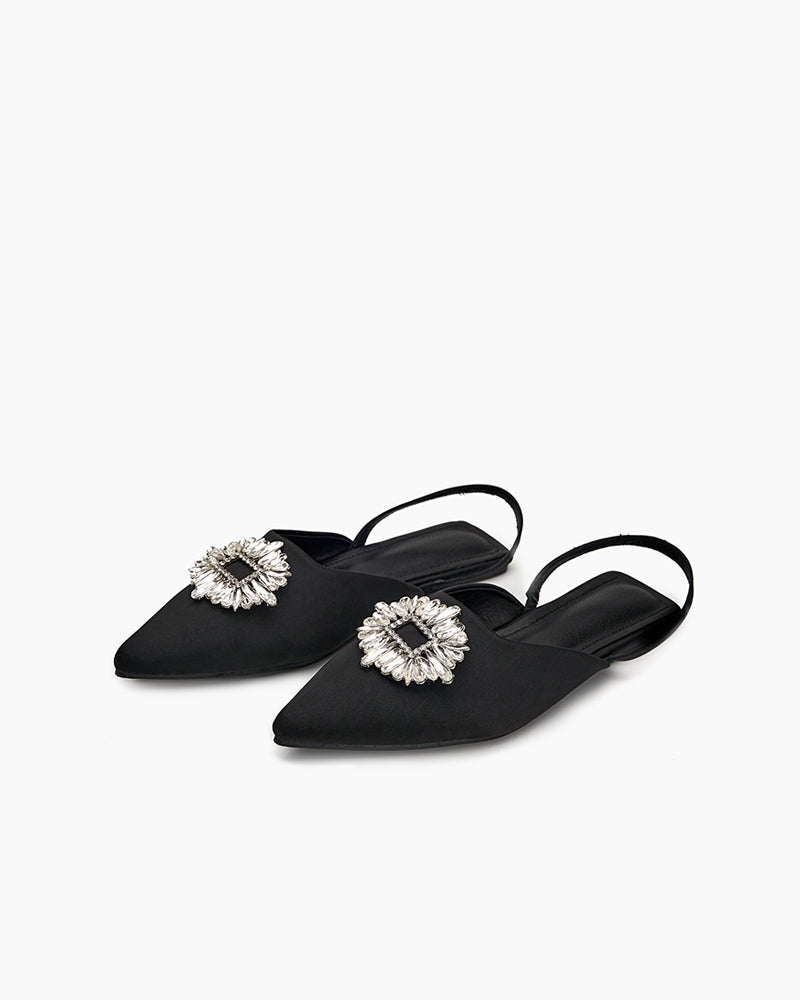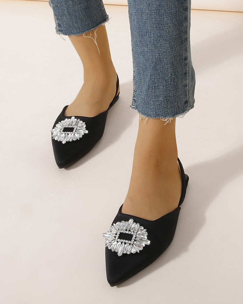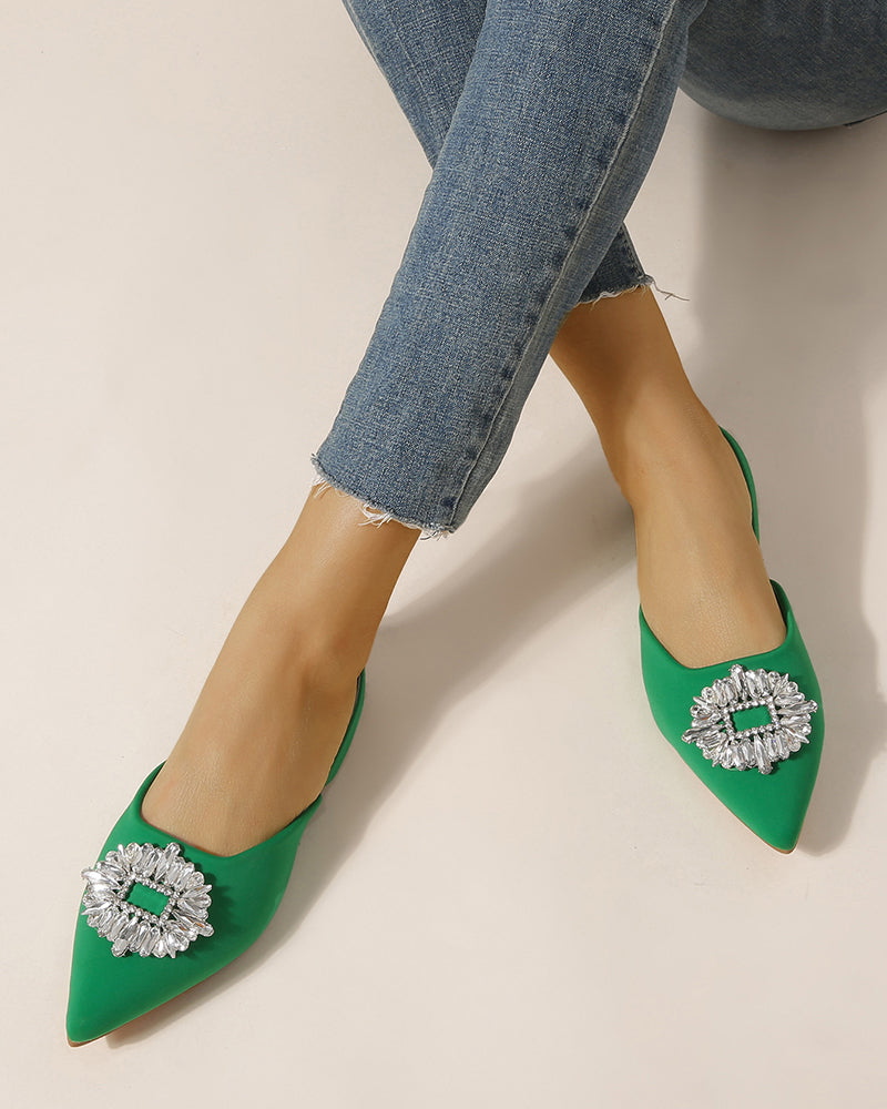 Rhinestone Temperament Pointed Toe Flat Mule Sandals