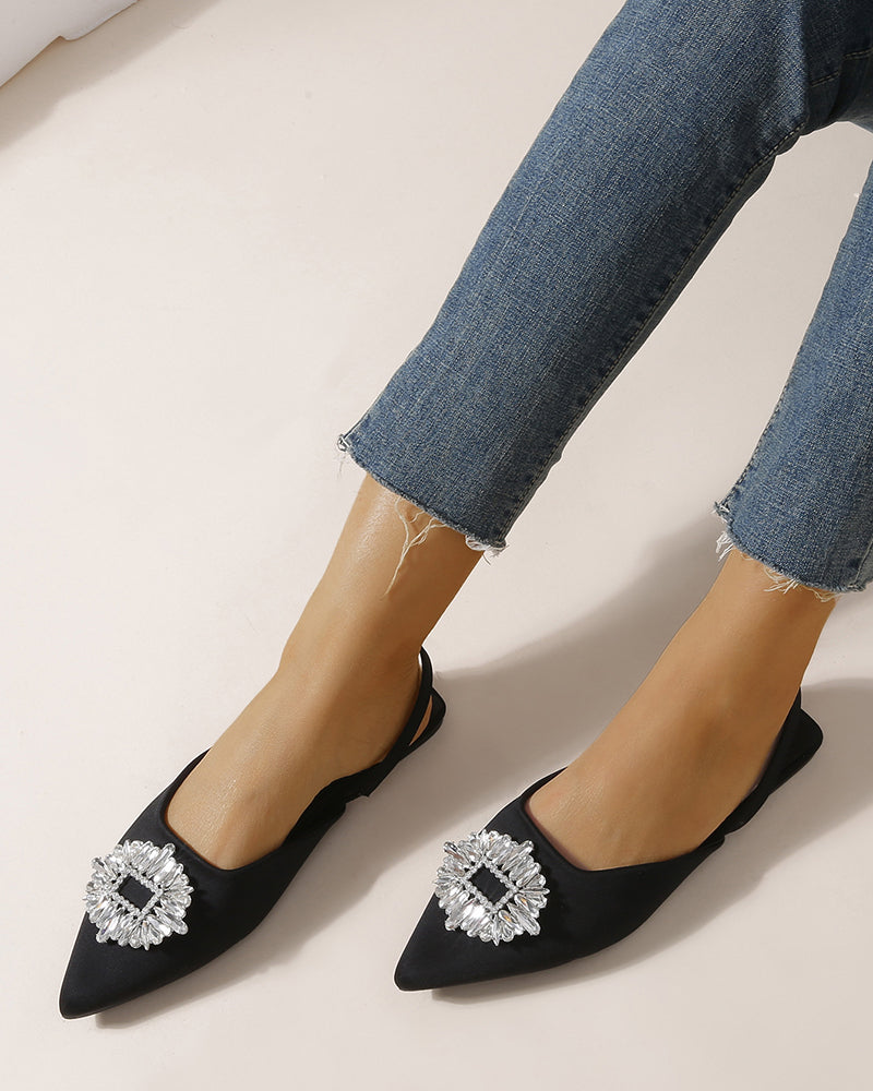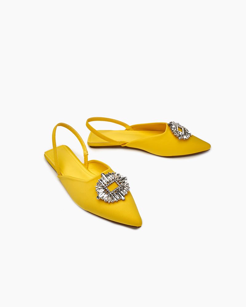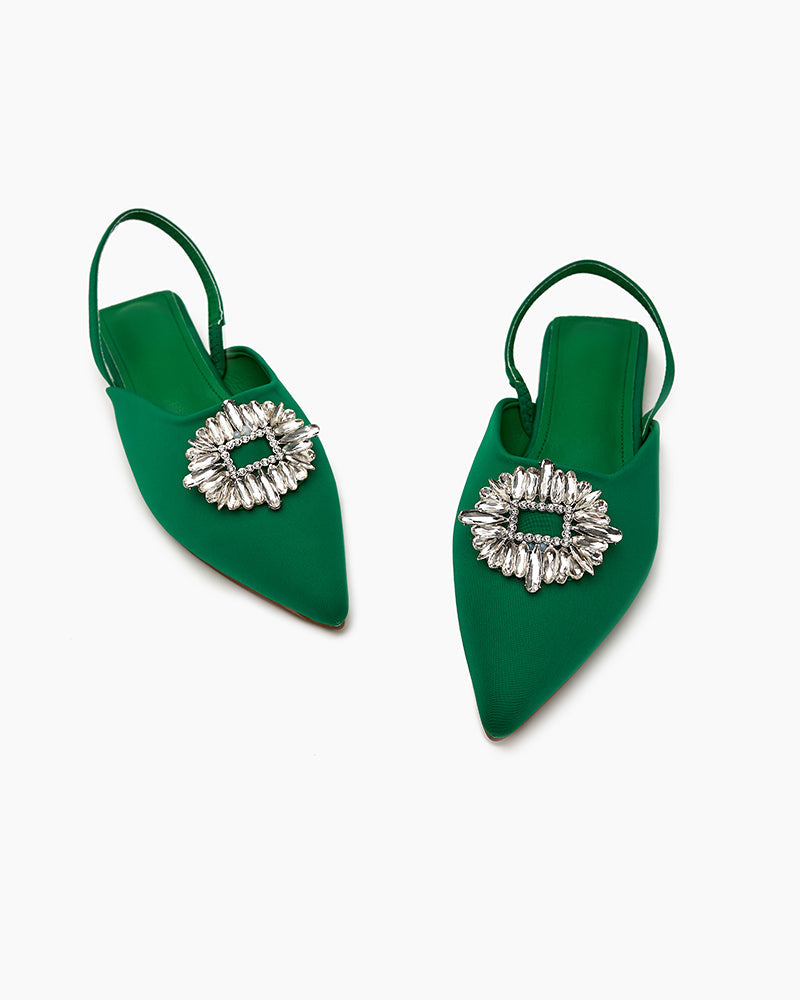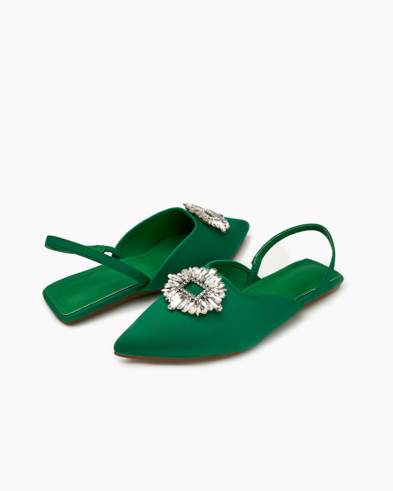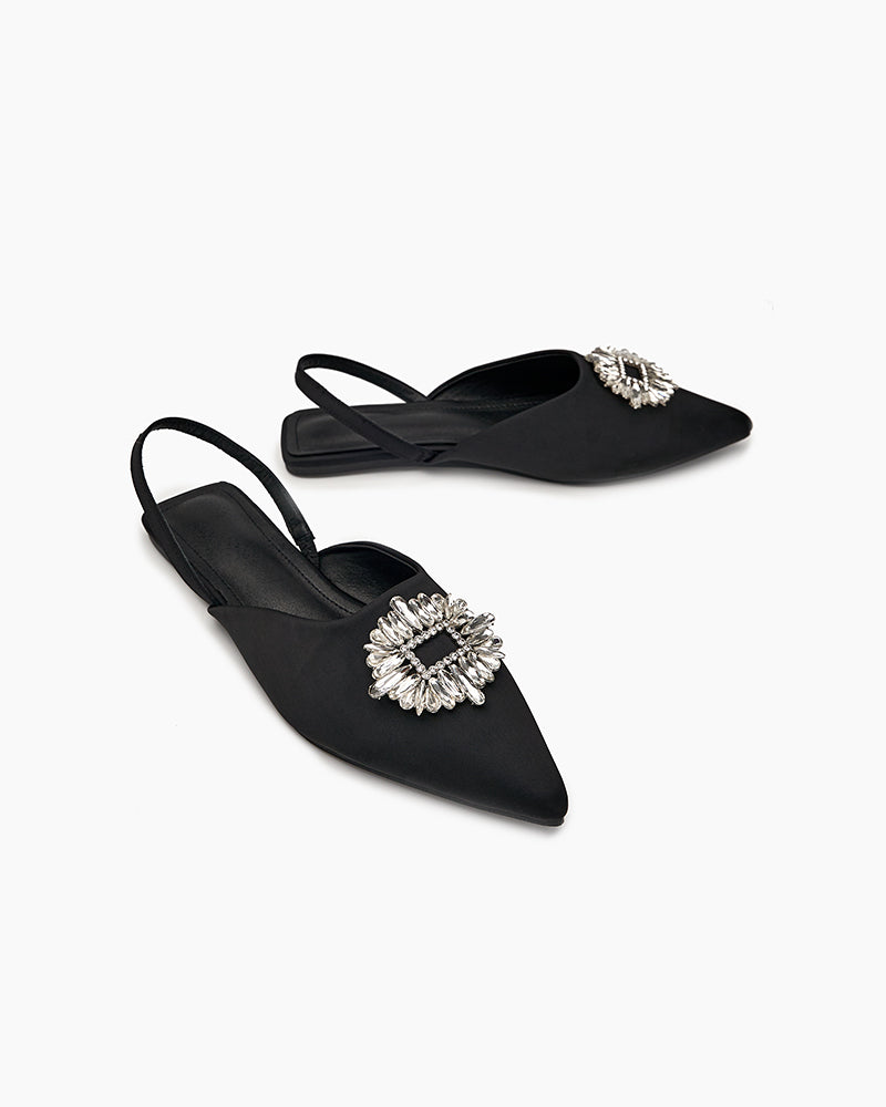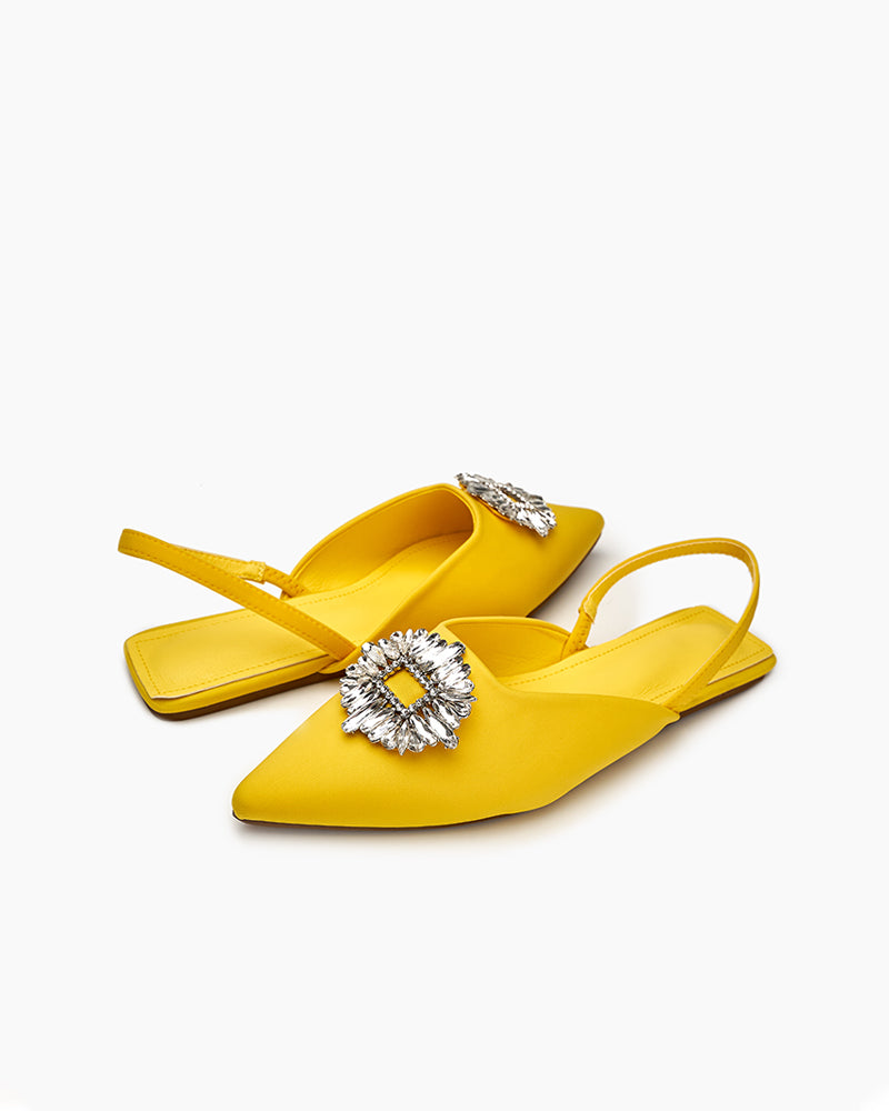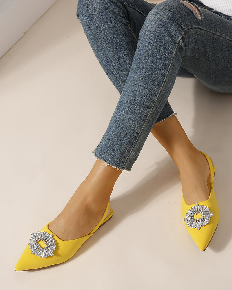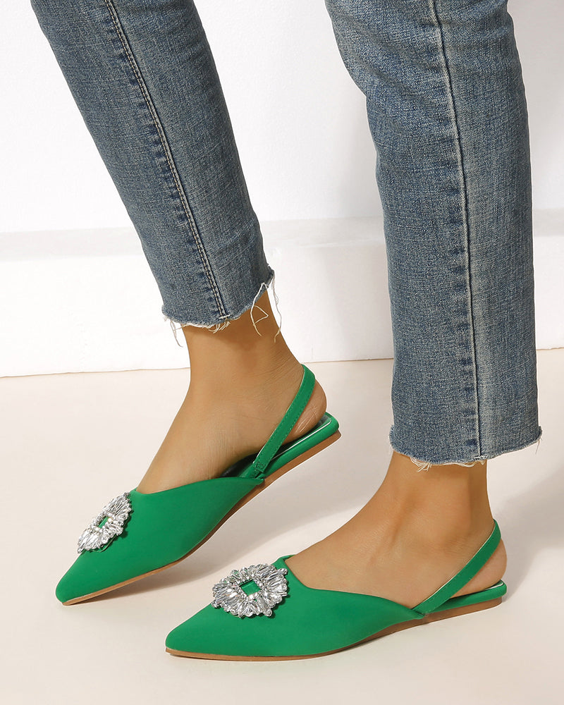 Rhinestone Temperament Pointed Toe Flat Mule Sandals