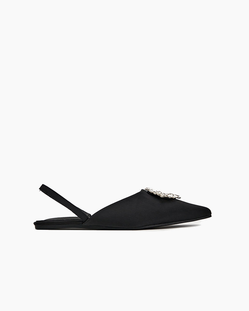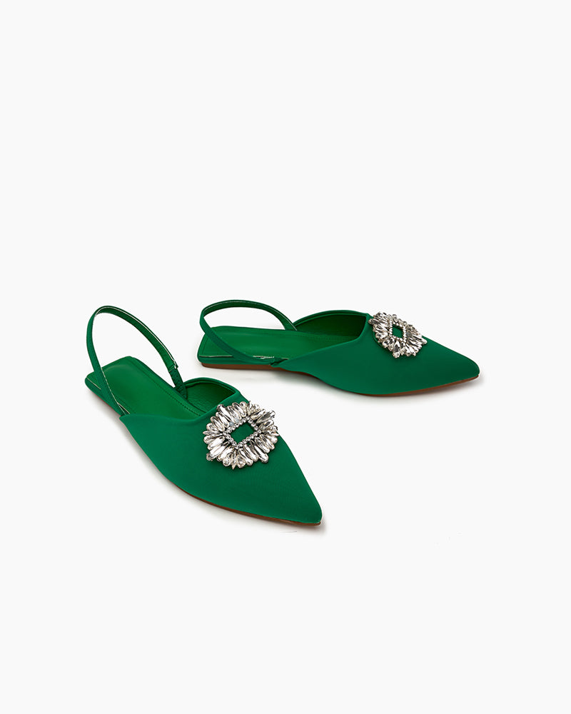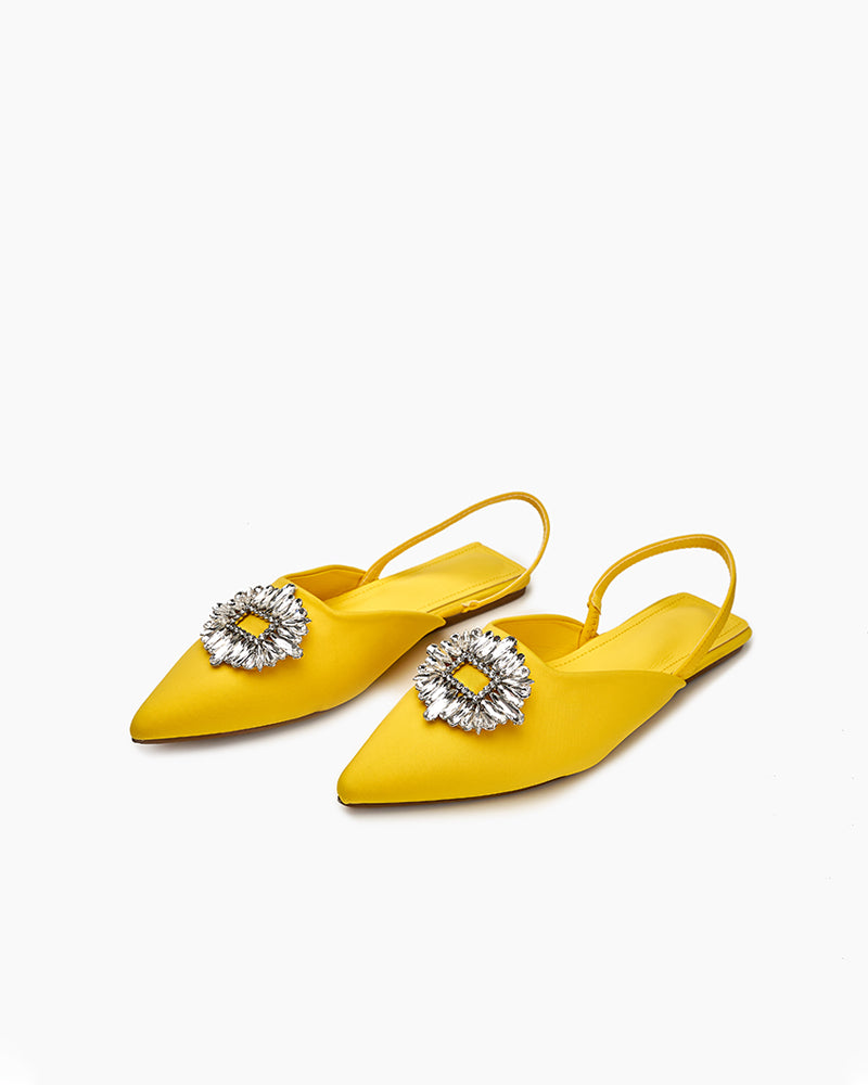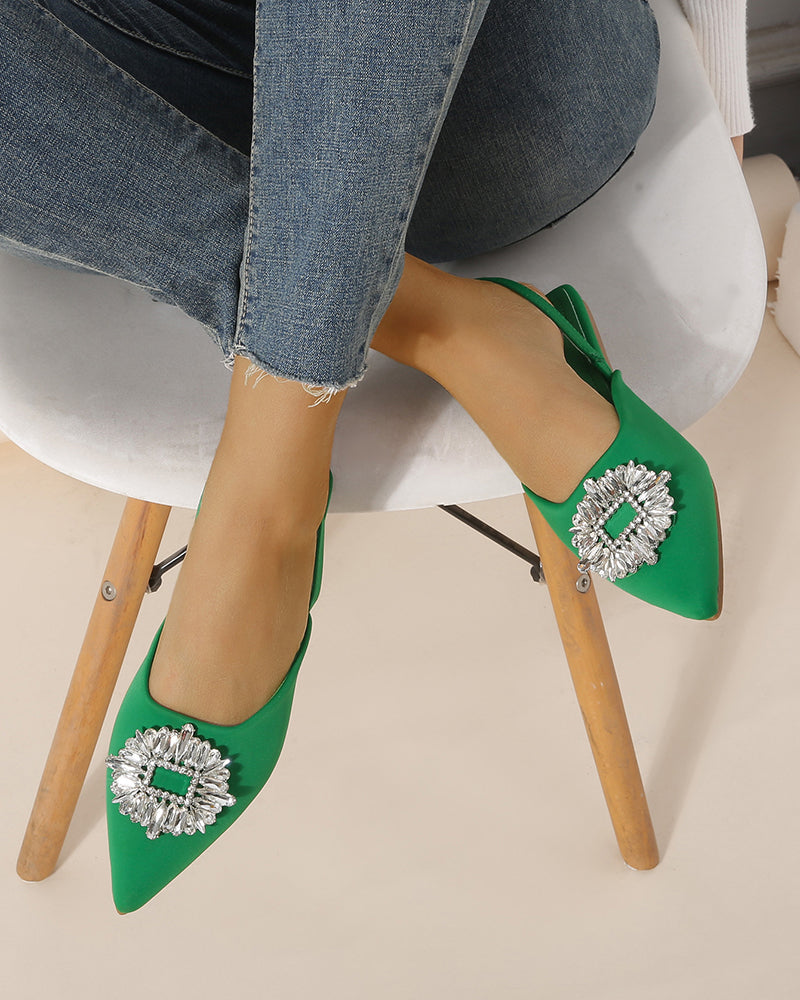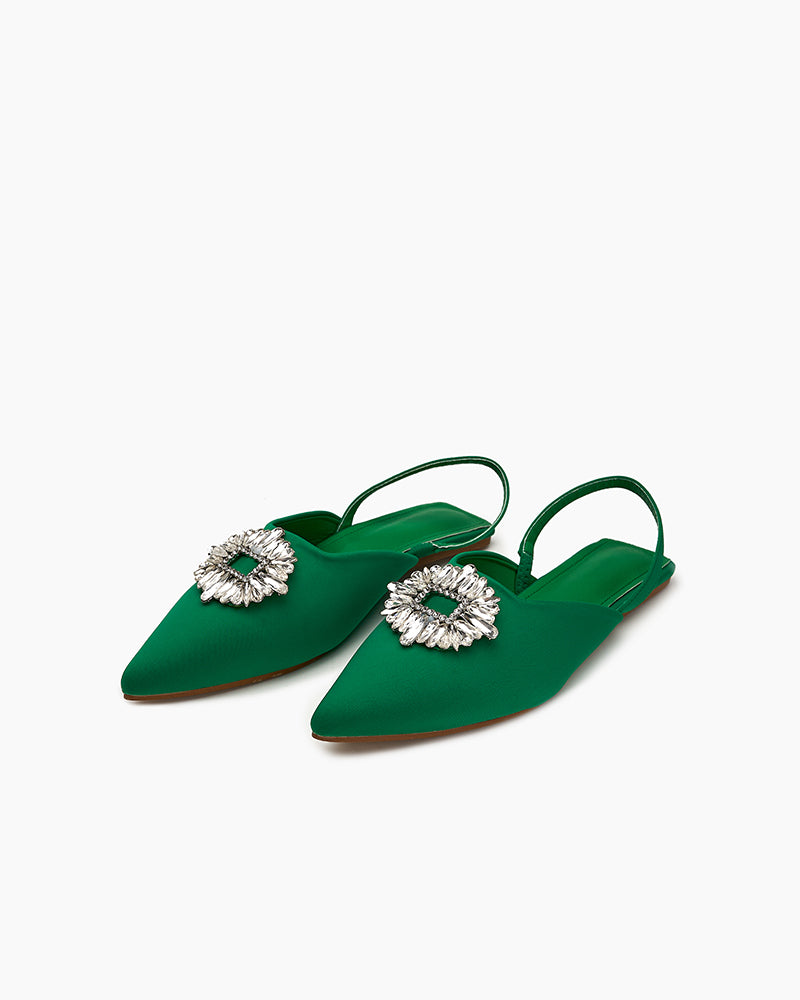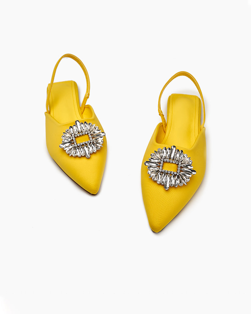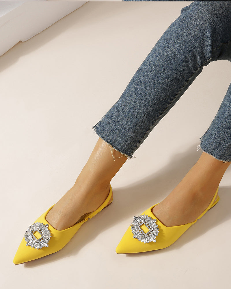 Rhinestone Temperament Pointed Toe Flat Mule Sandals