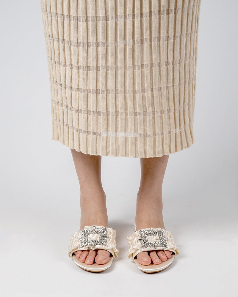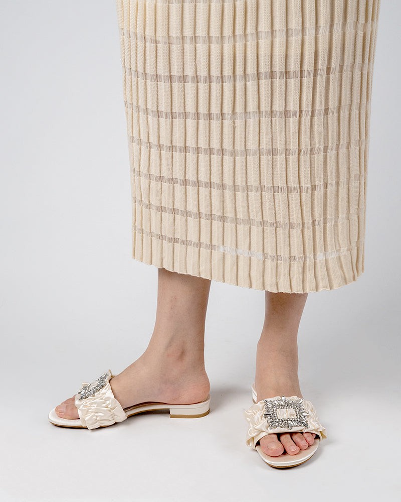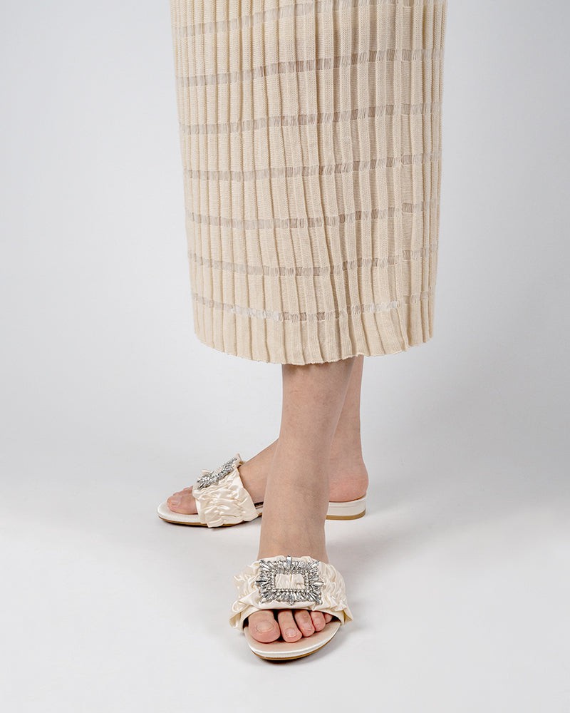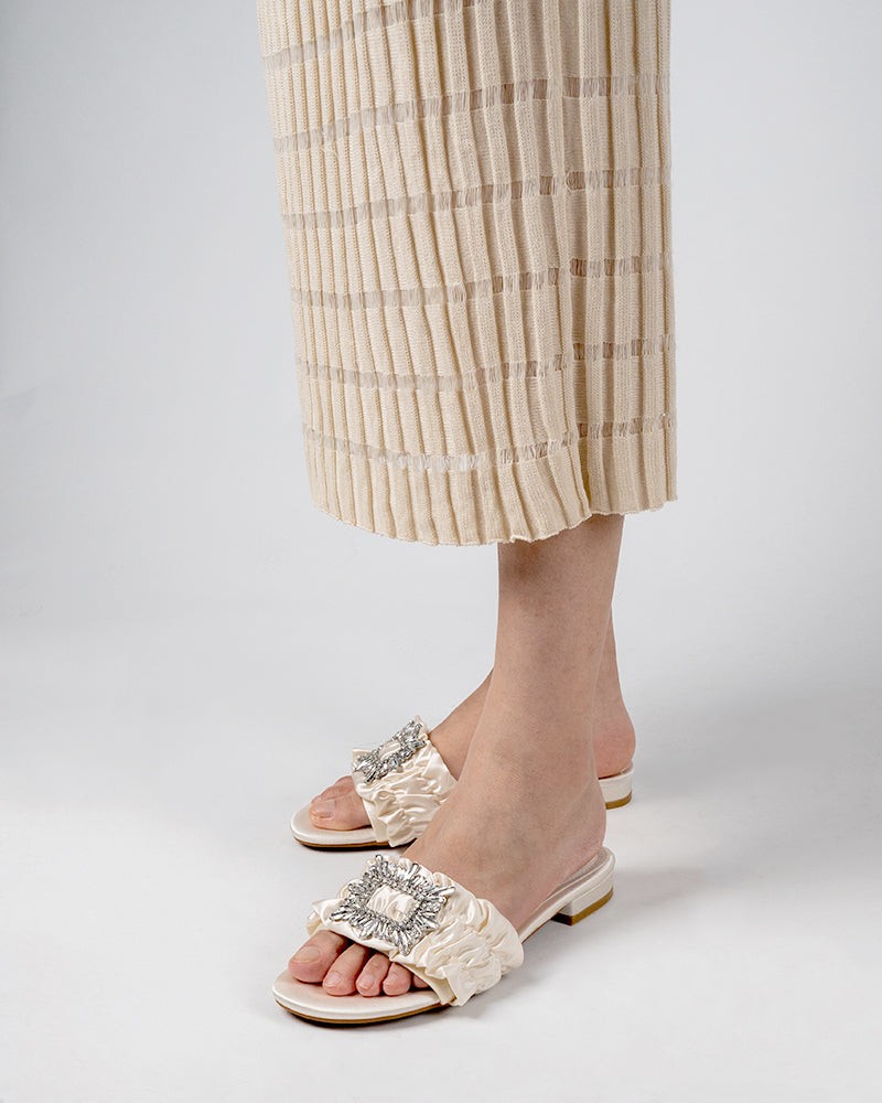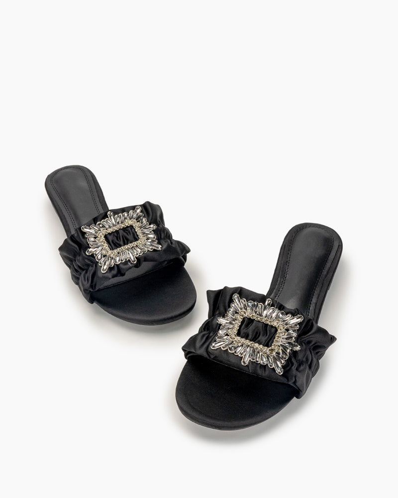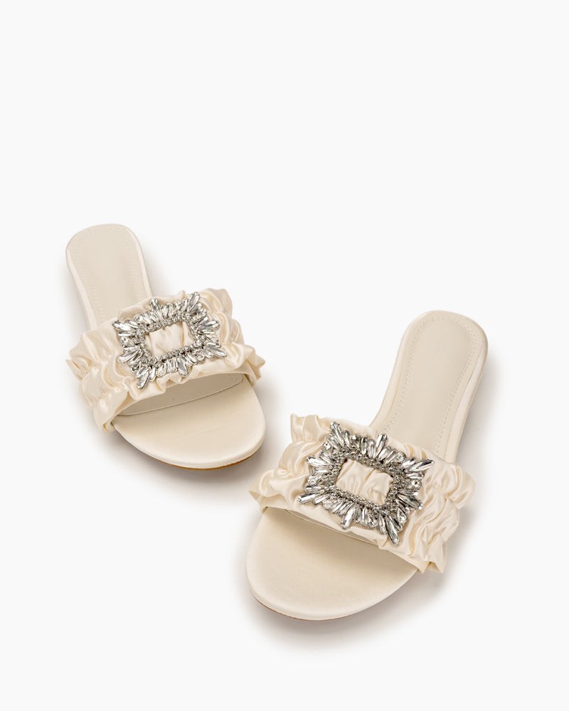 Rhinestones Square Buckle Bridal Dress Flat Sandals