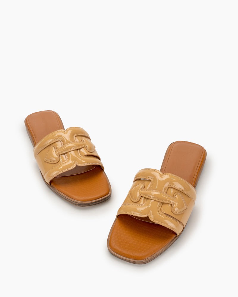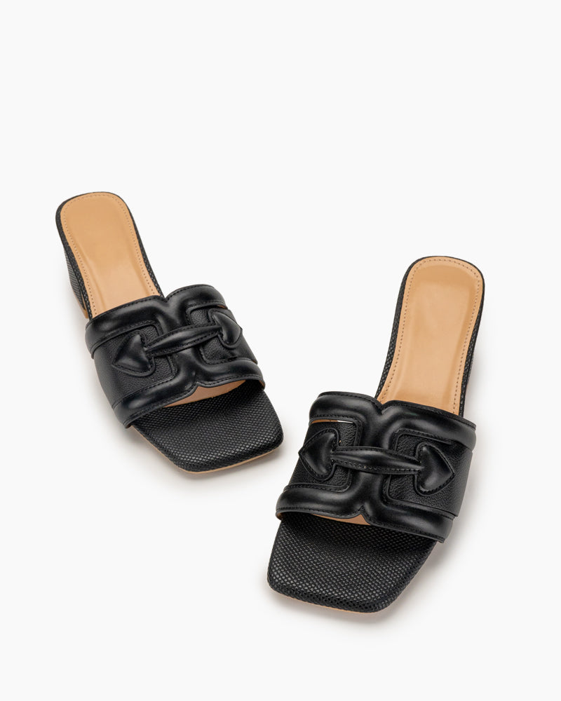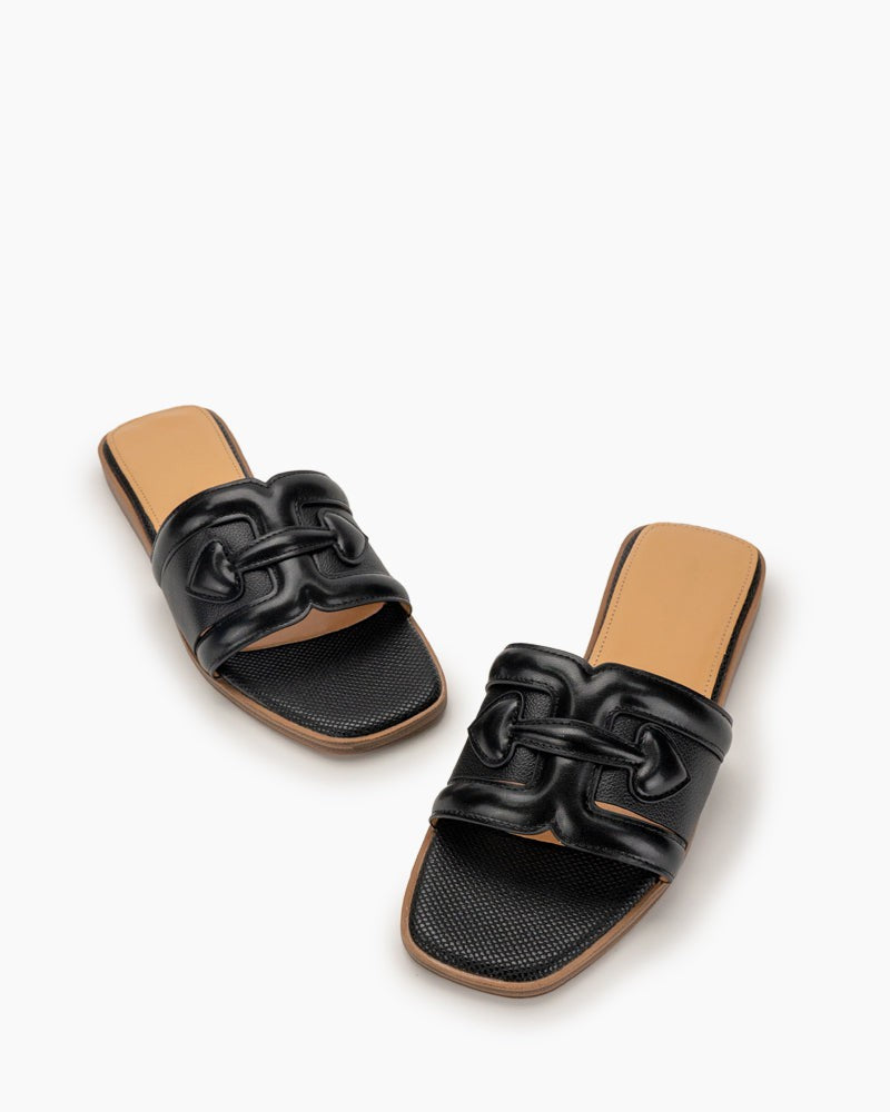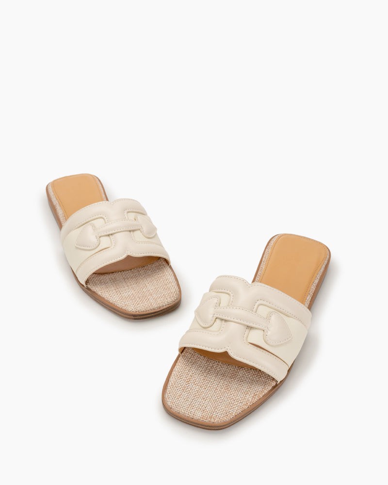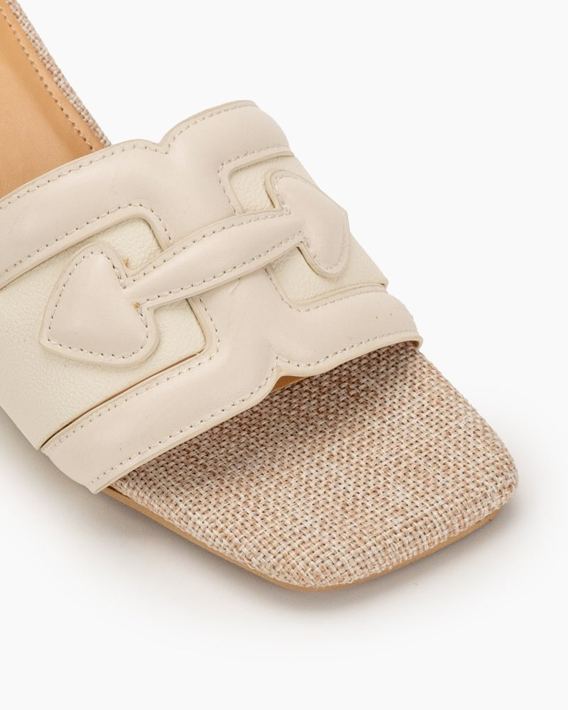 Straw Square Toe Resort Single-Strap Sandals