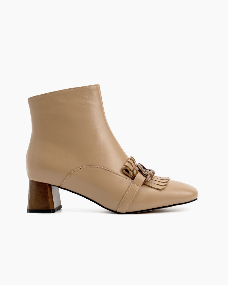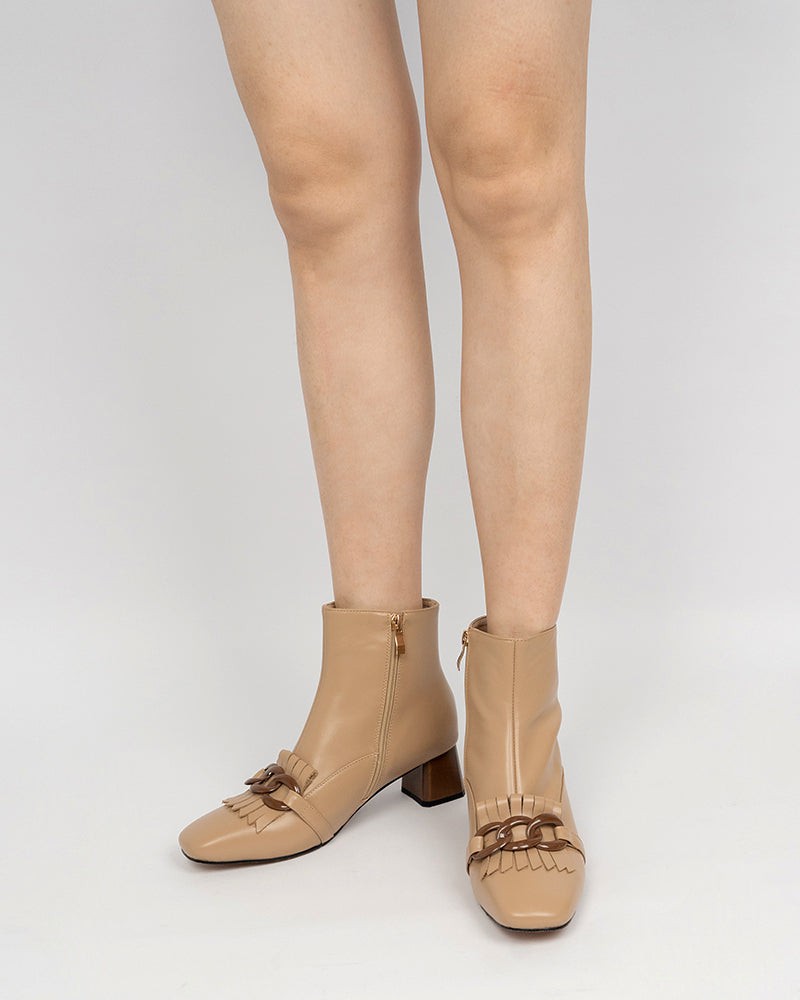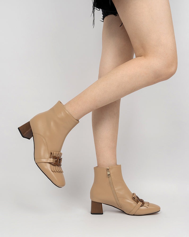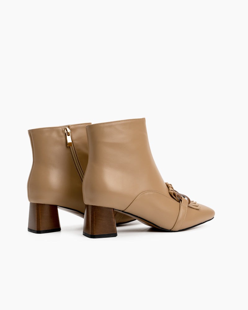 Metal Buckle Tassel Block Heel Ankle Boots
