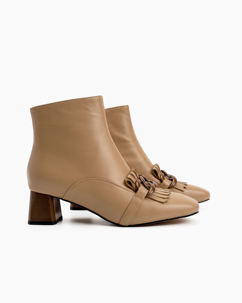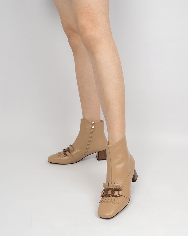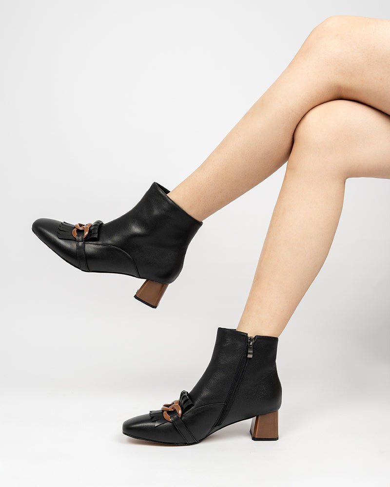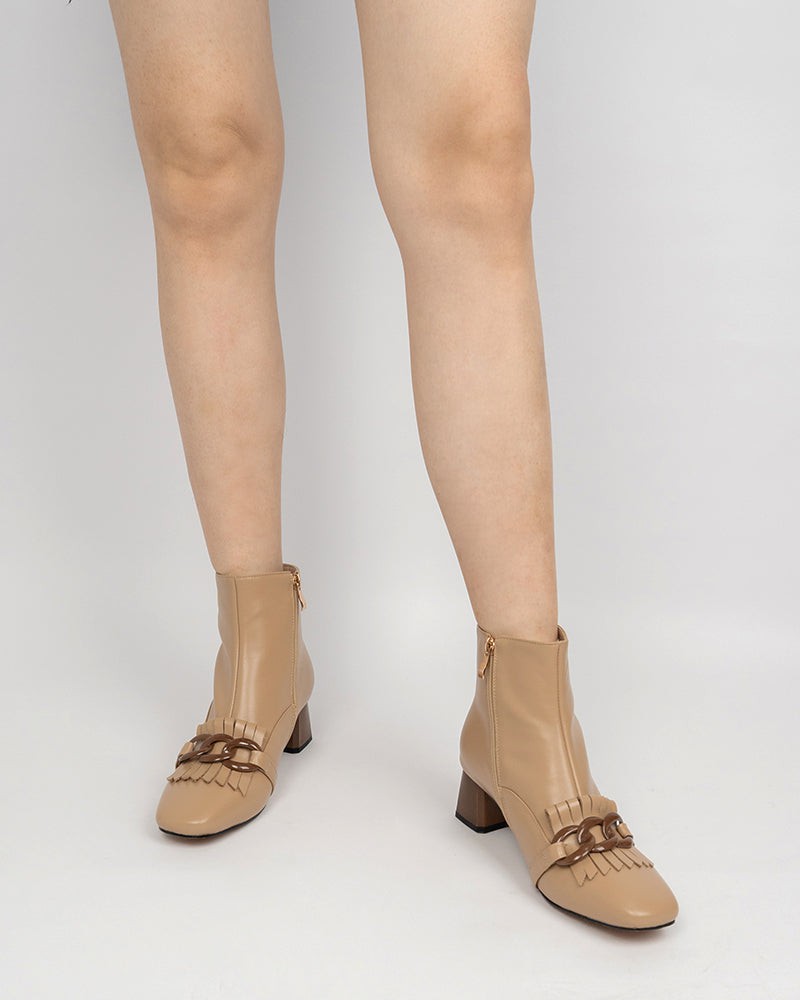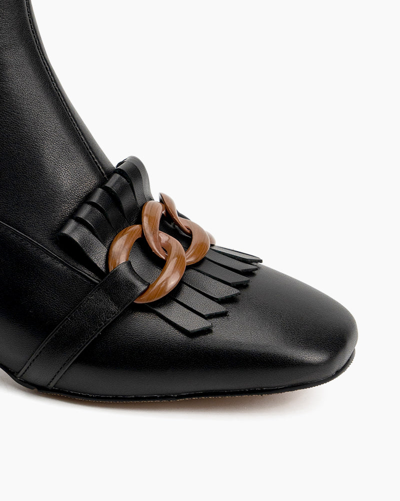 Metal Buckle Tassel Block Heel Ankle Boots