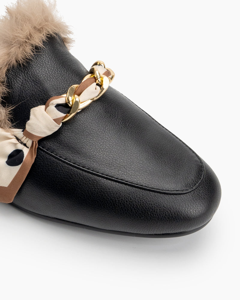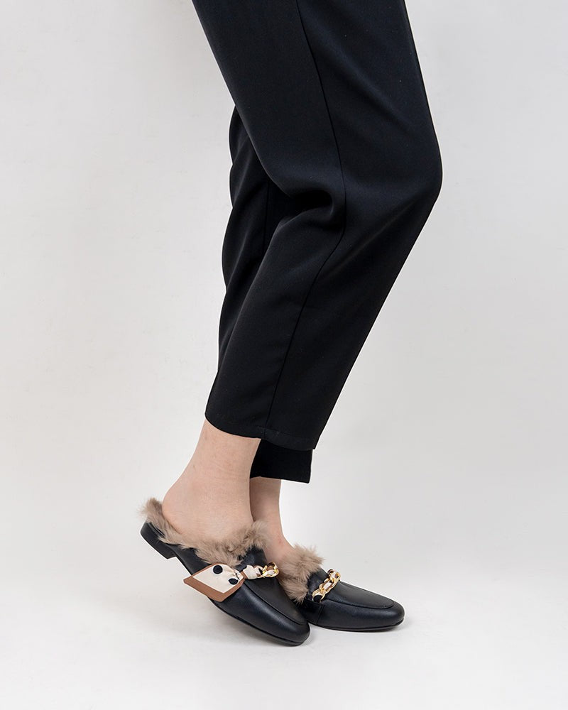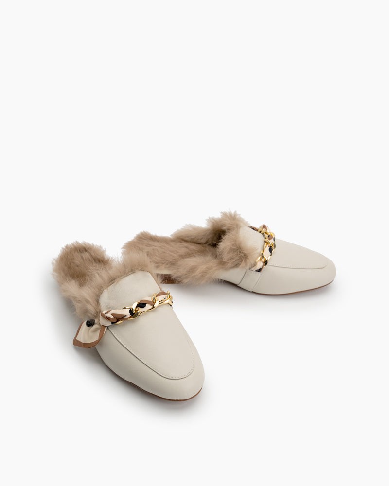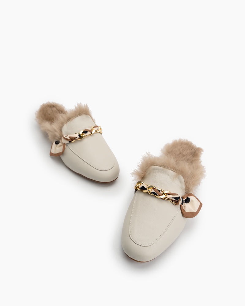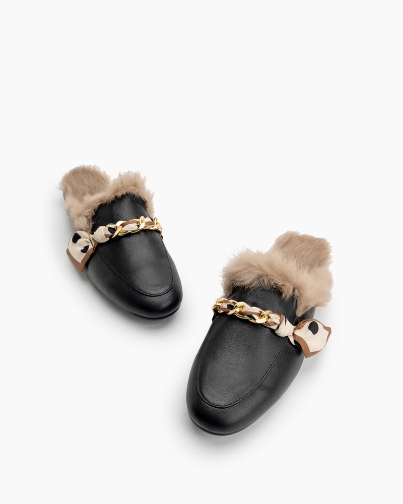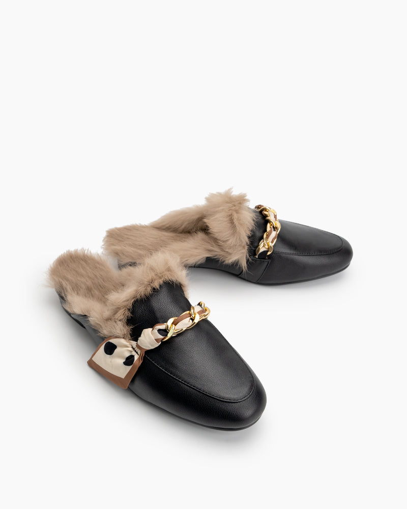 • Ribbon Decor Flat Fur Comfortable Slippers Mules