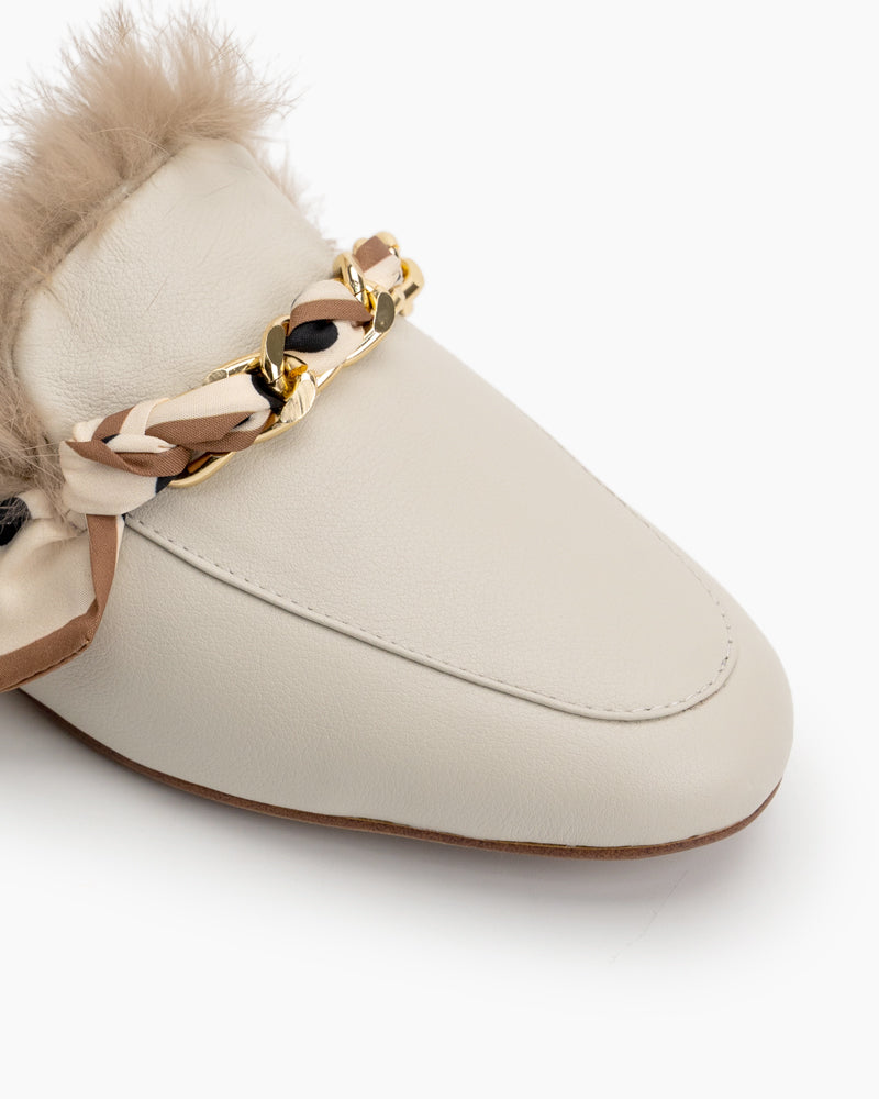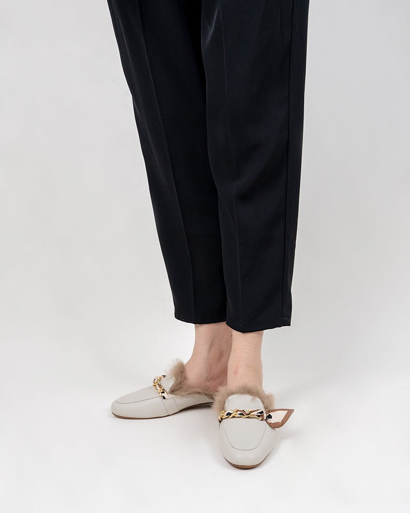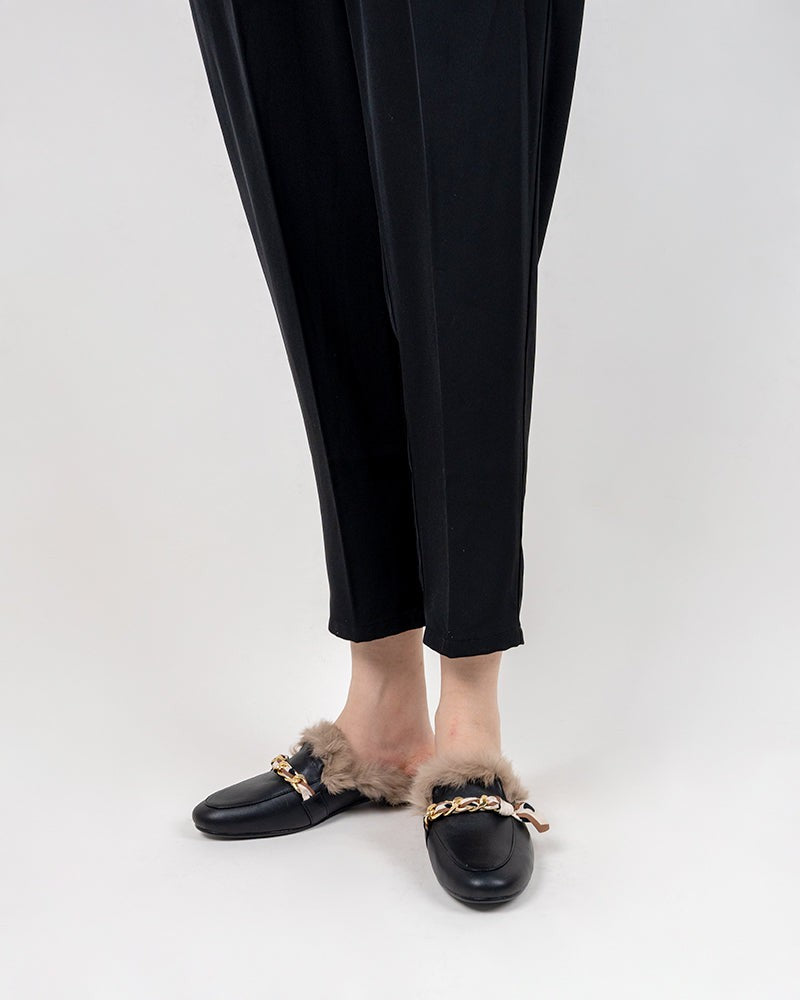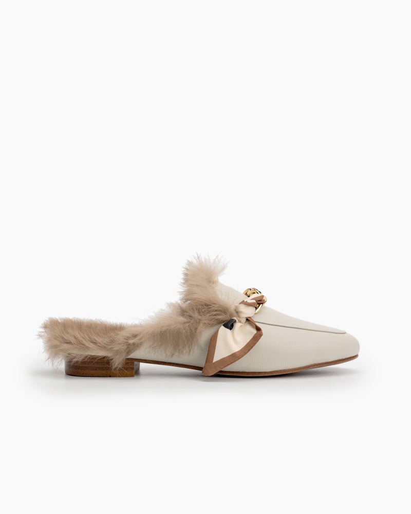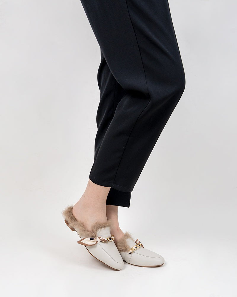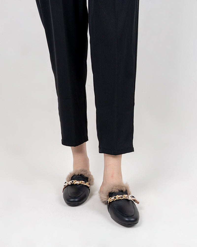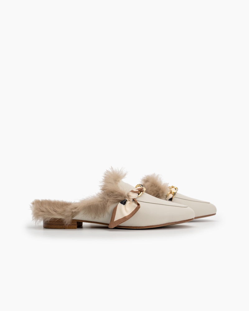 • Ribbon Decor Flat Fur Comfortable Slippers Mules