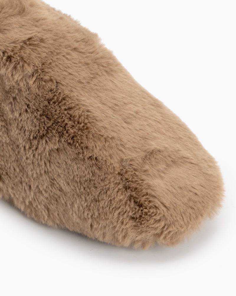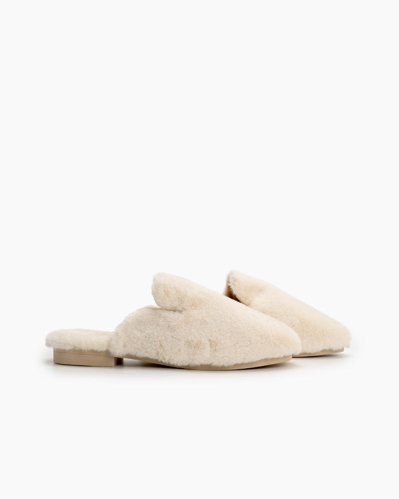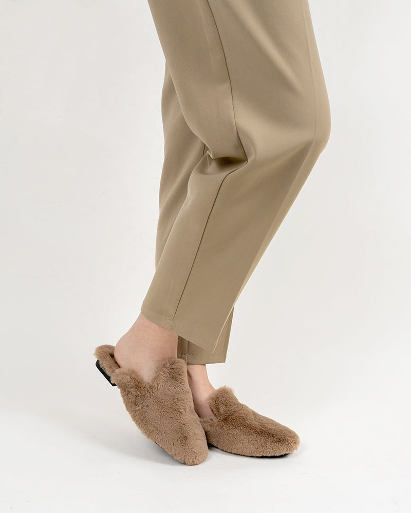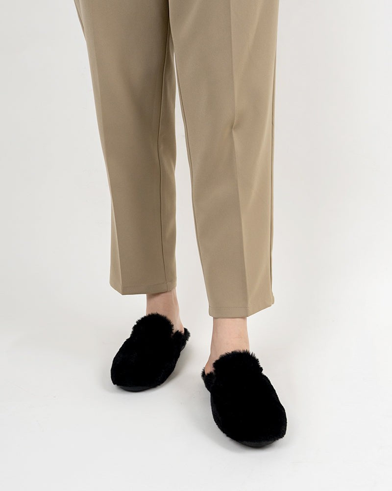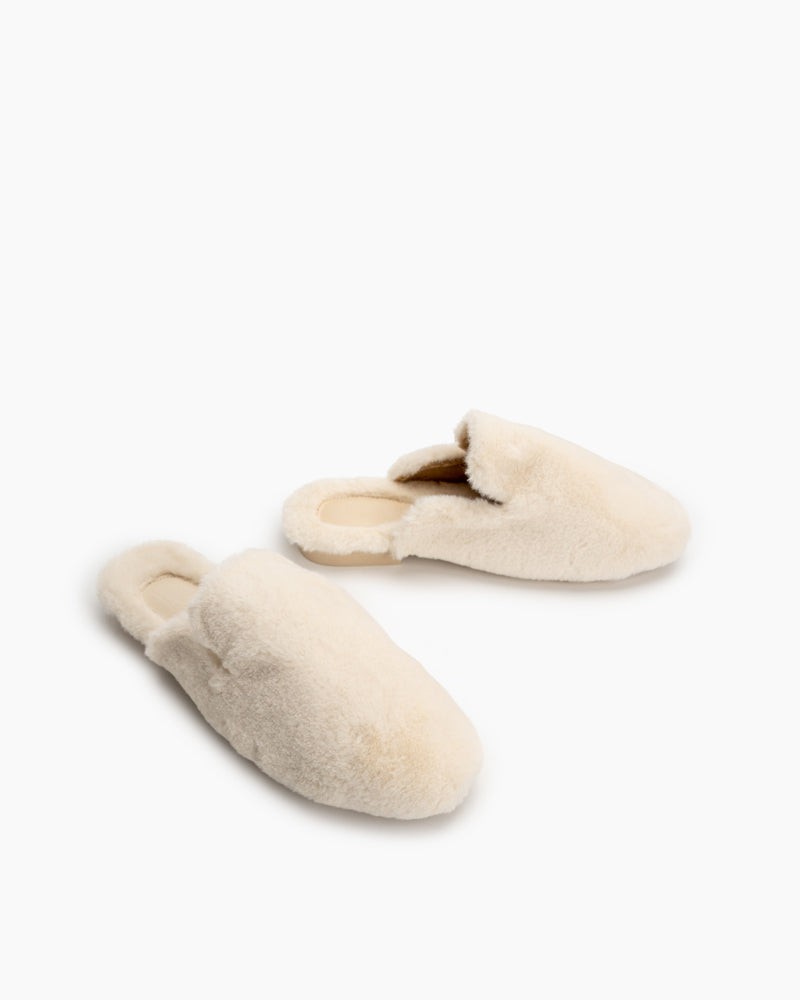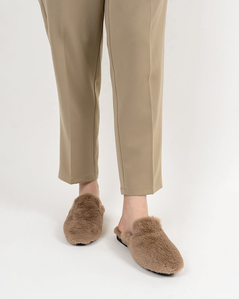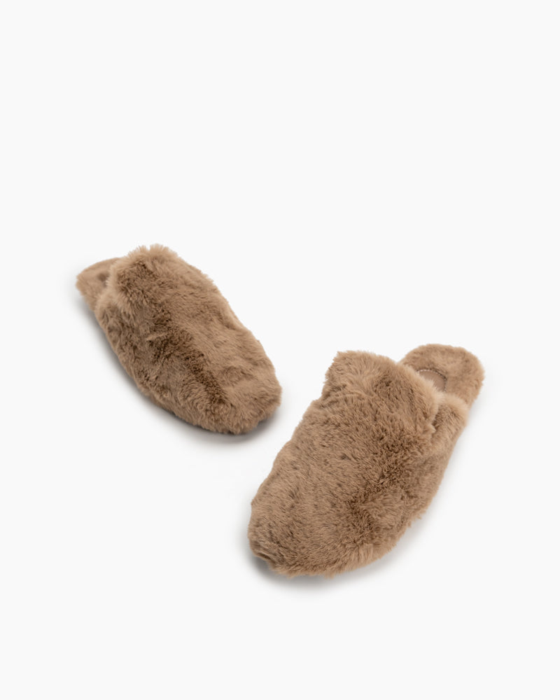 • Solid Color Round Toe Fur Backless Slip on Slides Mules