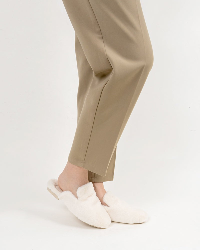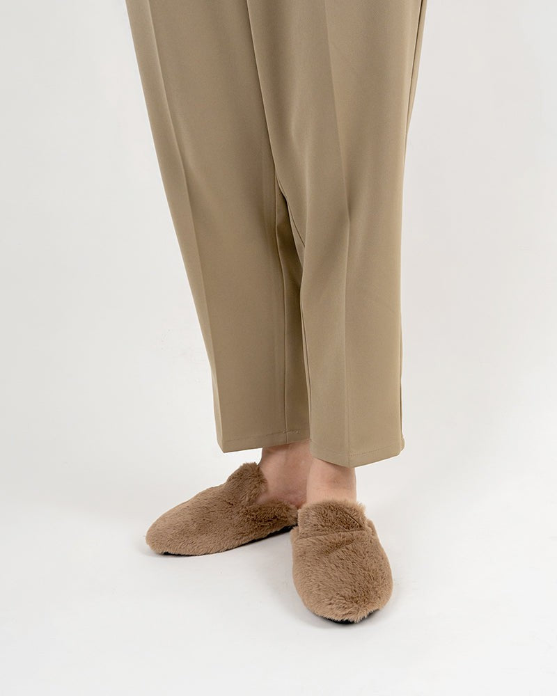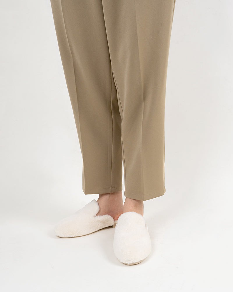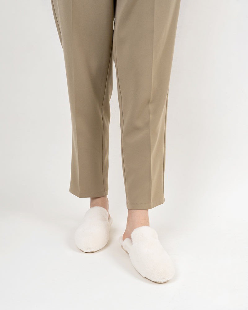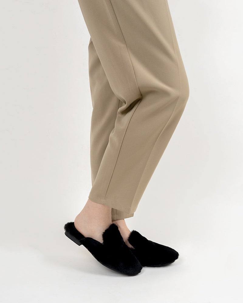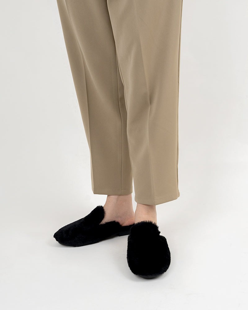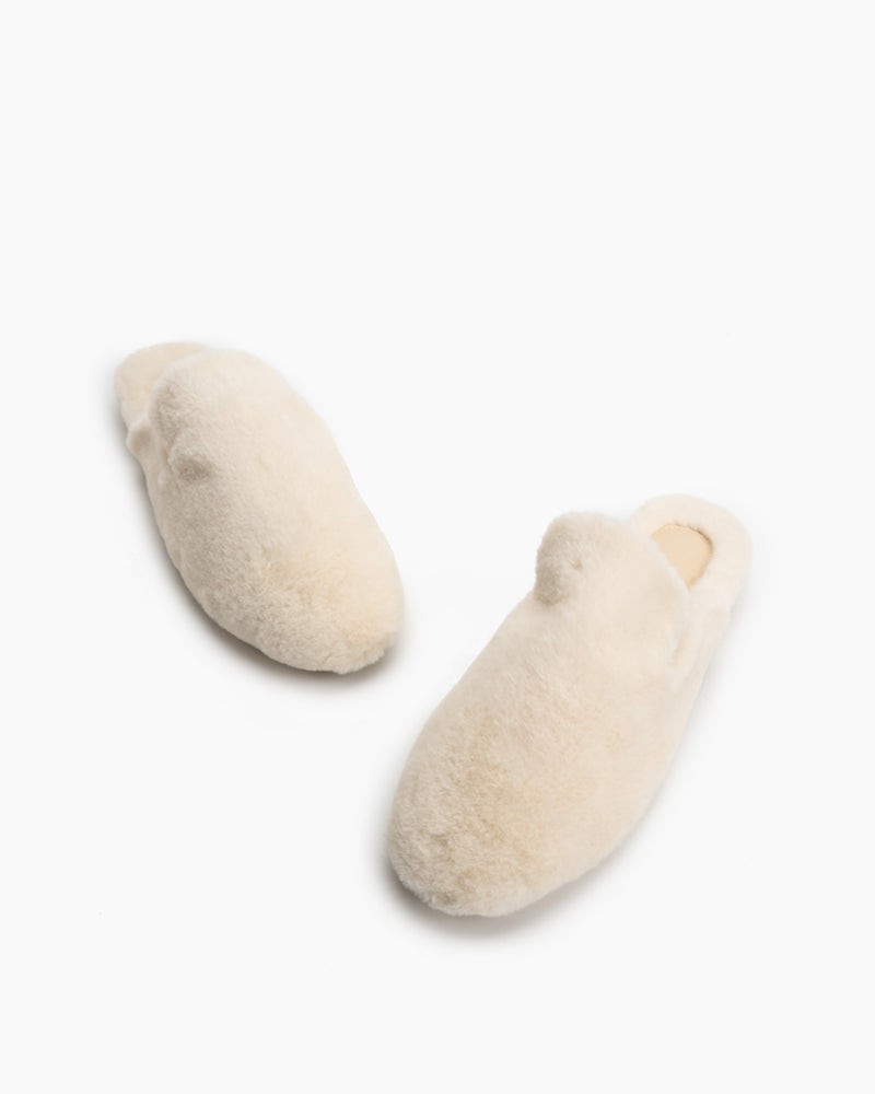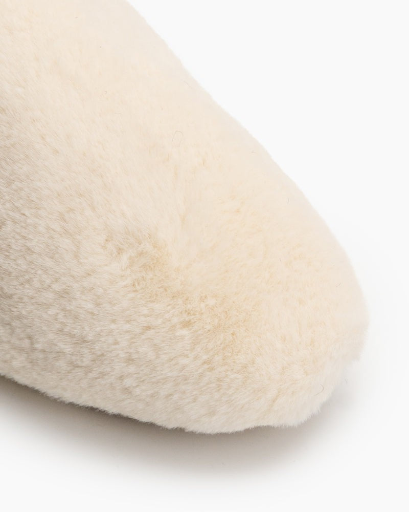 • Solid Color Round Toe Fur Backless Slip on Slides Mules